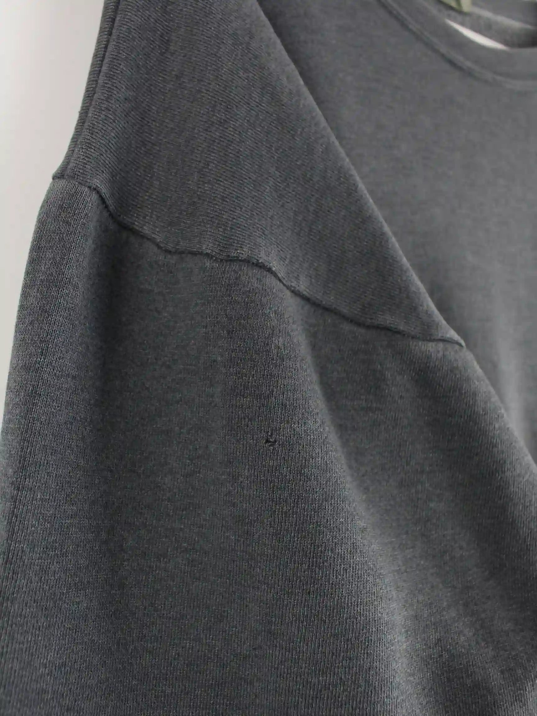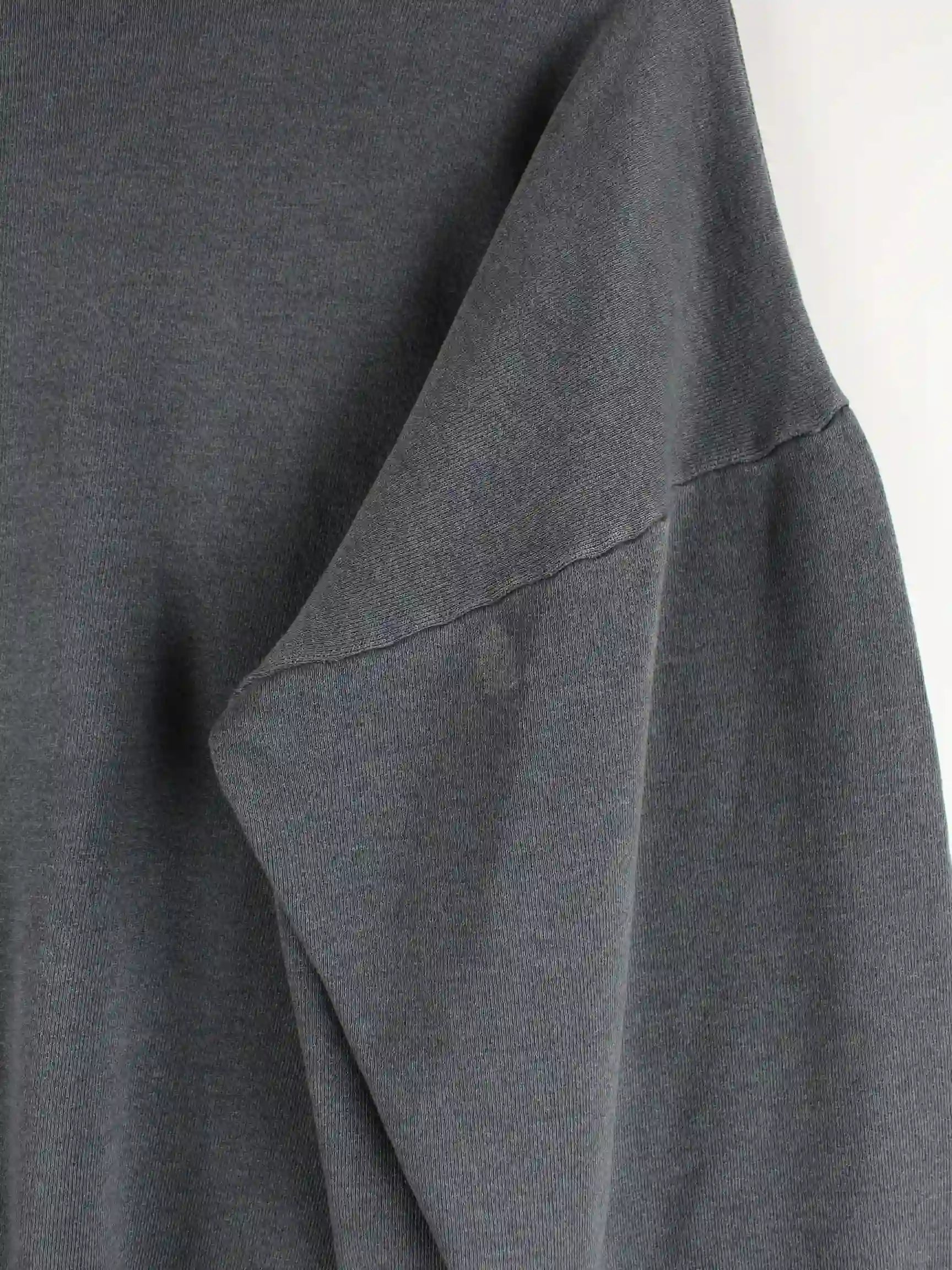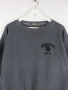 Vintage Sweater in Größe L. Er ist aus einer Baumwollmischung und in Grau bei uns zu bekommen.