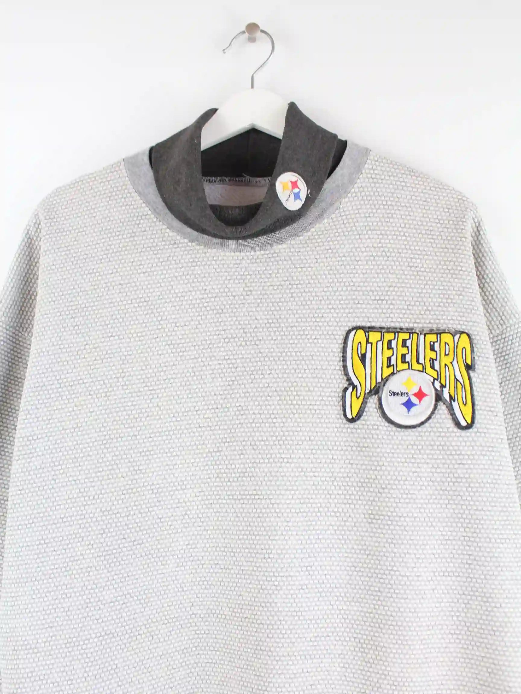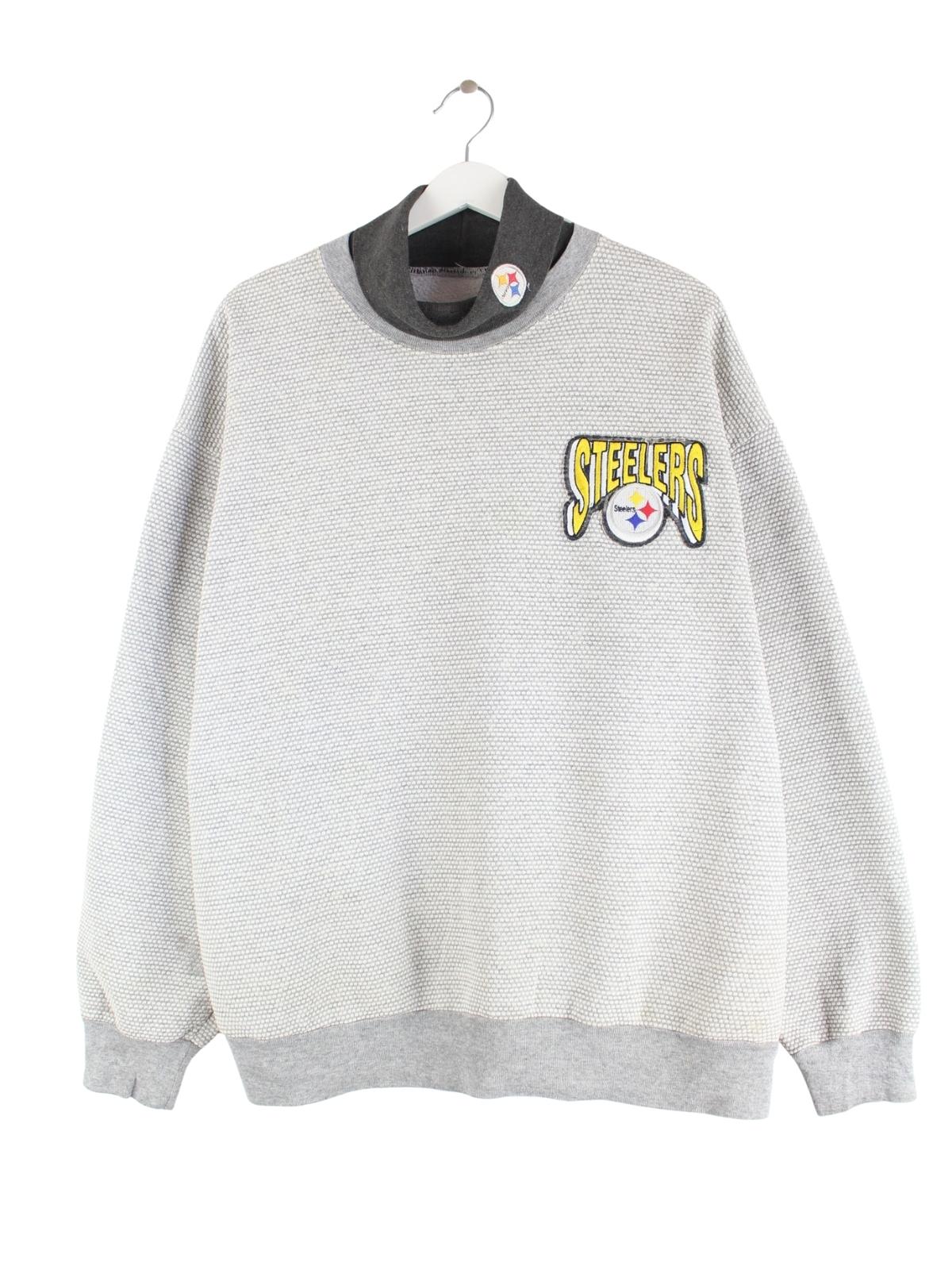 Vintage 90s Steelers Logo Turtleneck Sweater Grau XL