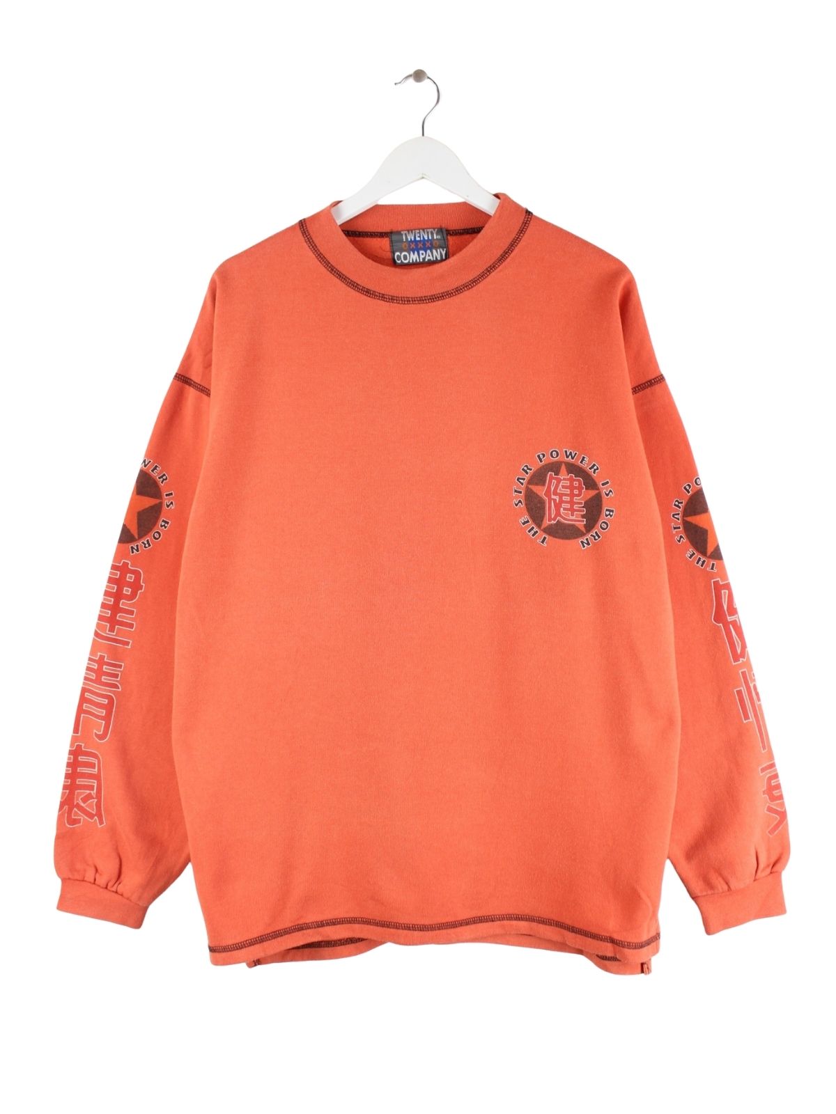 Vintage 90s Star Power Print Sweater Orange XL