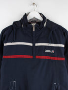 Blauer Windbreaker vom Brand Reebok aus den 90'ern in Größe XS. Er ist aus Synthetik gemacht und in sehr gutem Zustand zu haben.