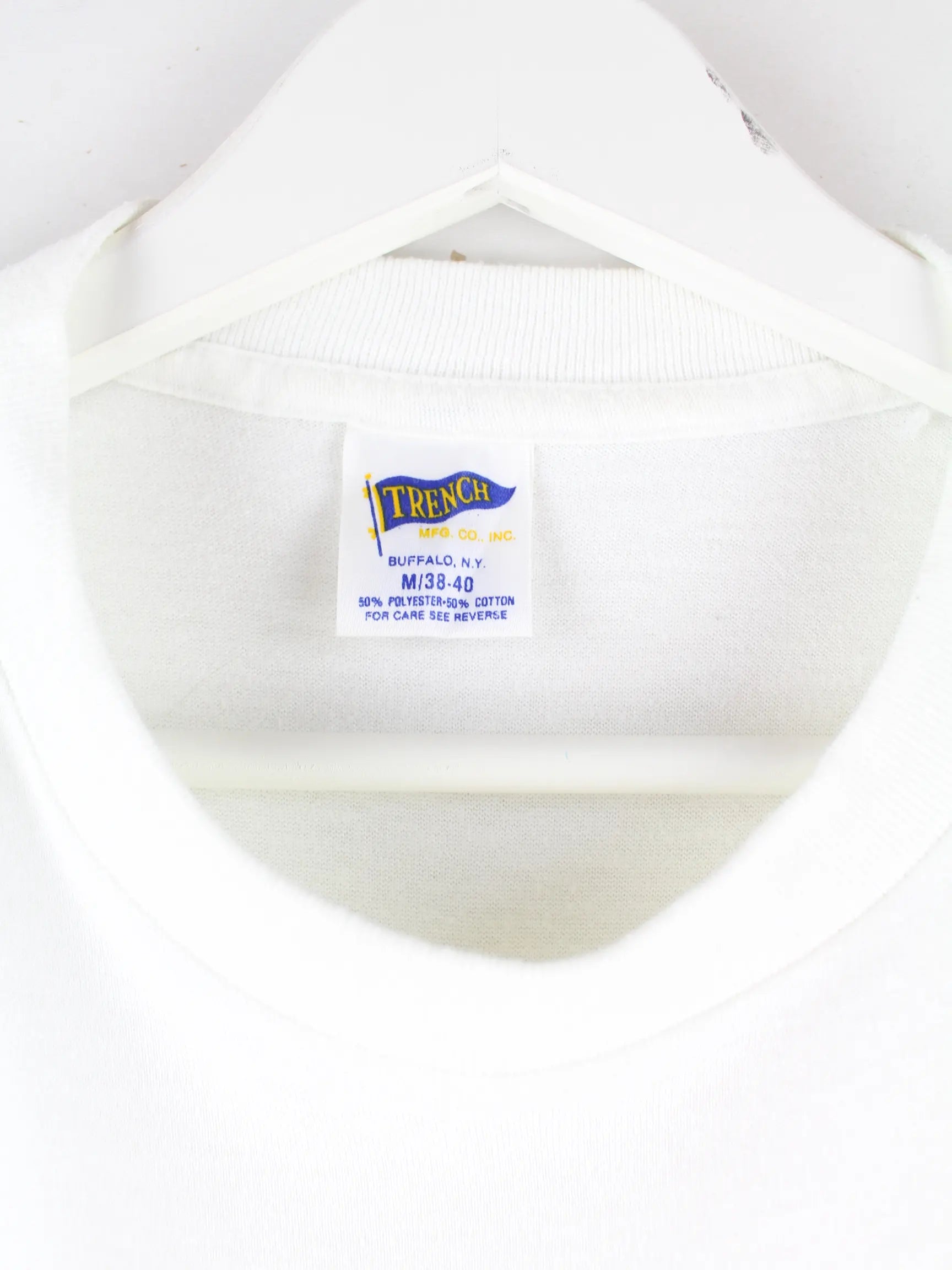 Vintage T-Shirt in Größe M. Es ist aus Baumwolle gefertigt und in Weiß bei uns vorrätig.