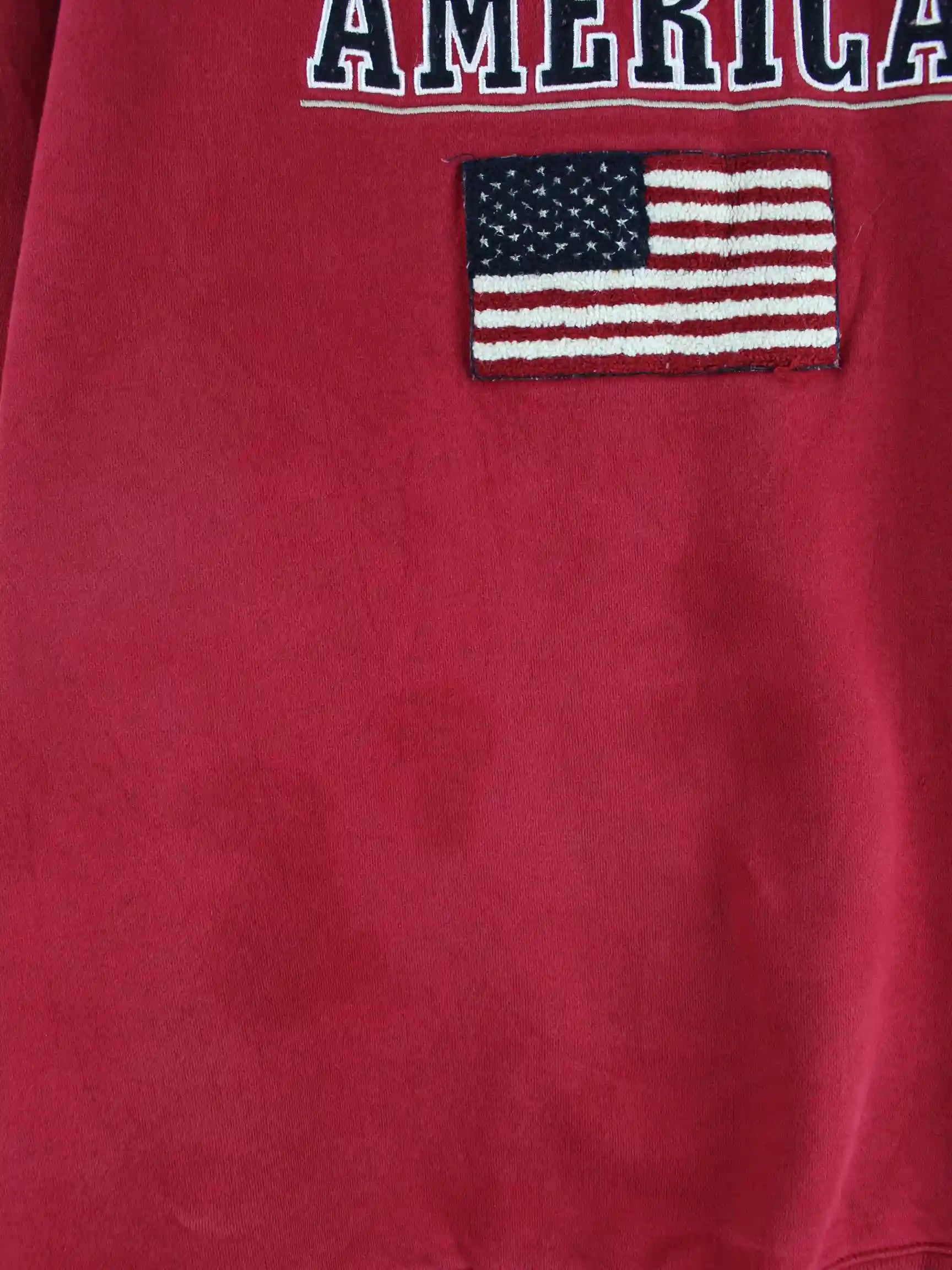 Sweater vom Label Discus Athletic in Größe M aus den 90'ern. Er ist aus einer Baumwollmischung gemacht und in Rot bei uns zu bekommen.