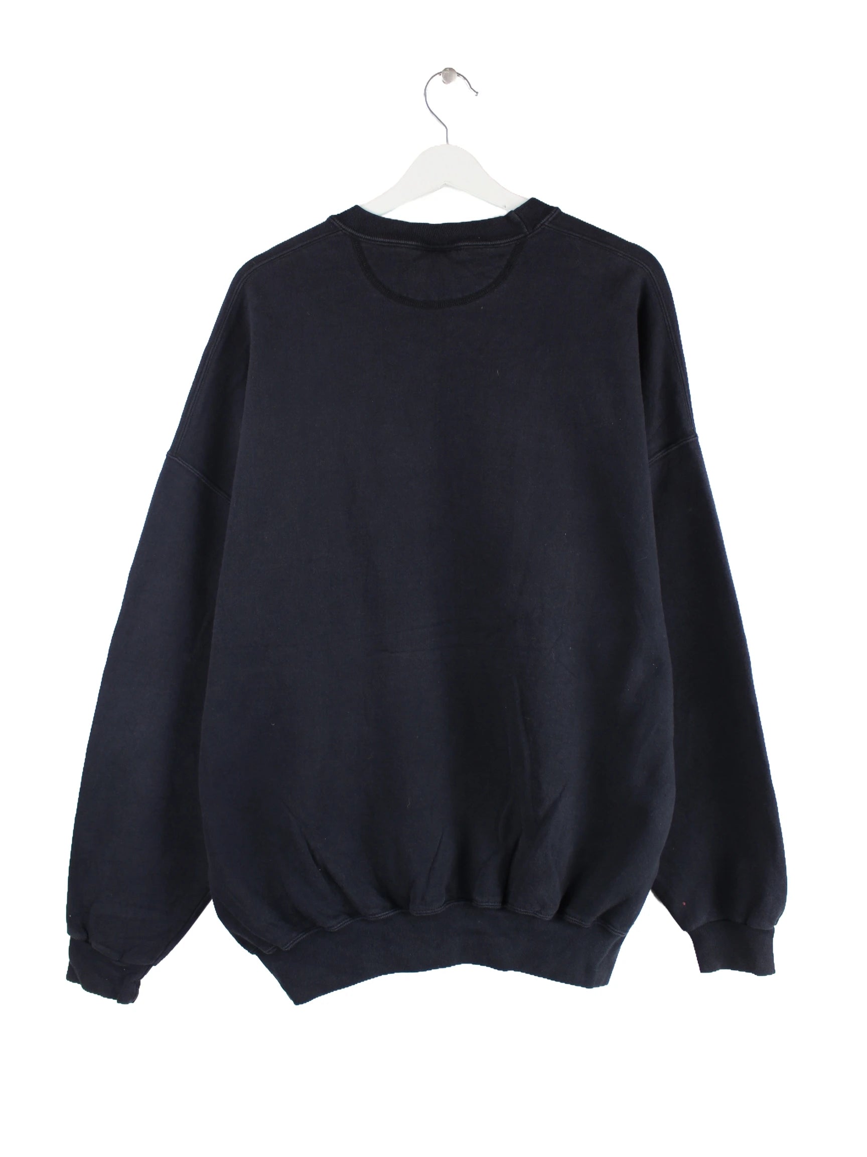 Schwarzer Vintage Sweater aus den 90'ern in Größe XXL. Er ist aus einer Baumwollmischung gefertigt und in gutem Zustand zu haben.