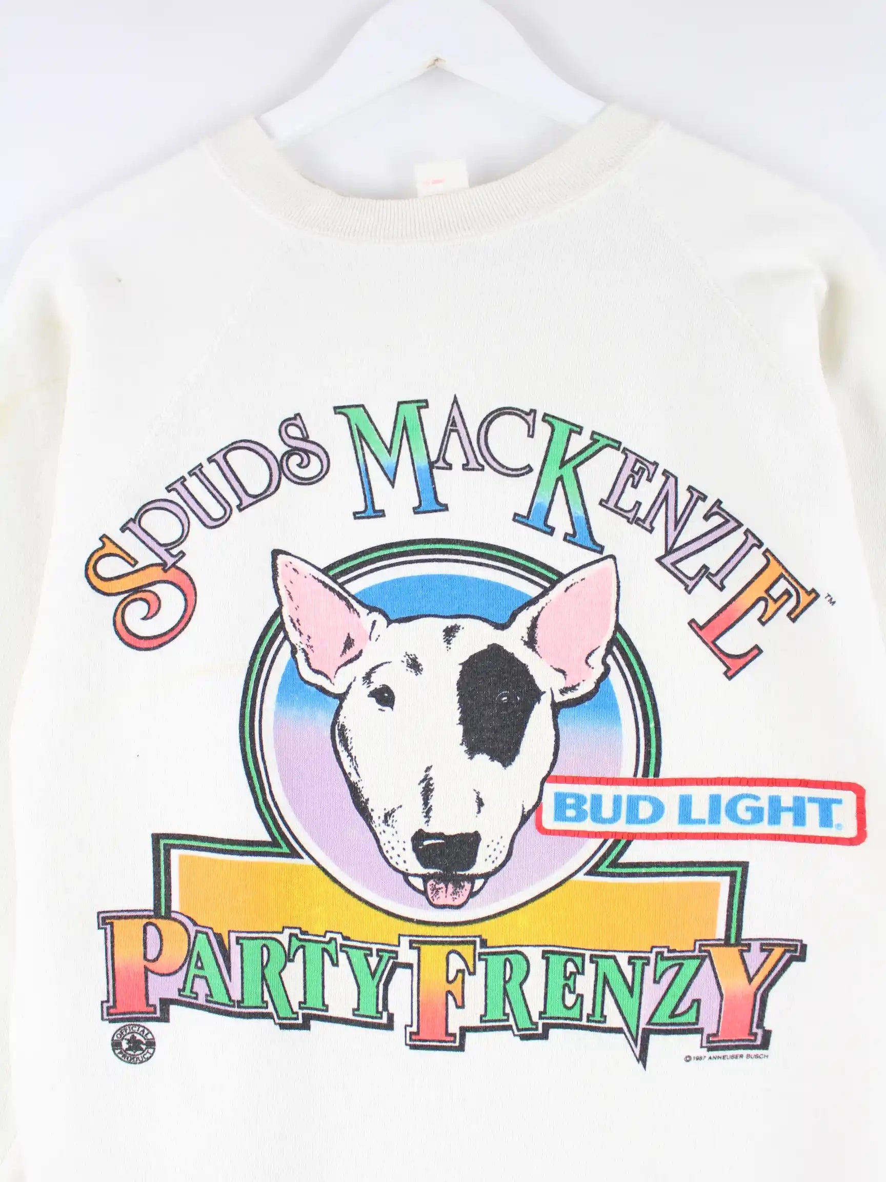 Tultex 80s Vintage Bud Light Beer Mac Kenzie Sweater Weiß M