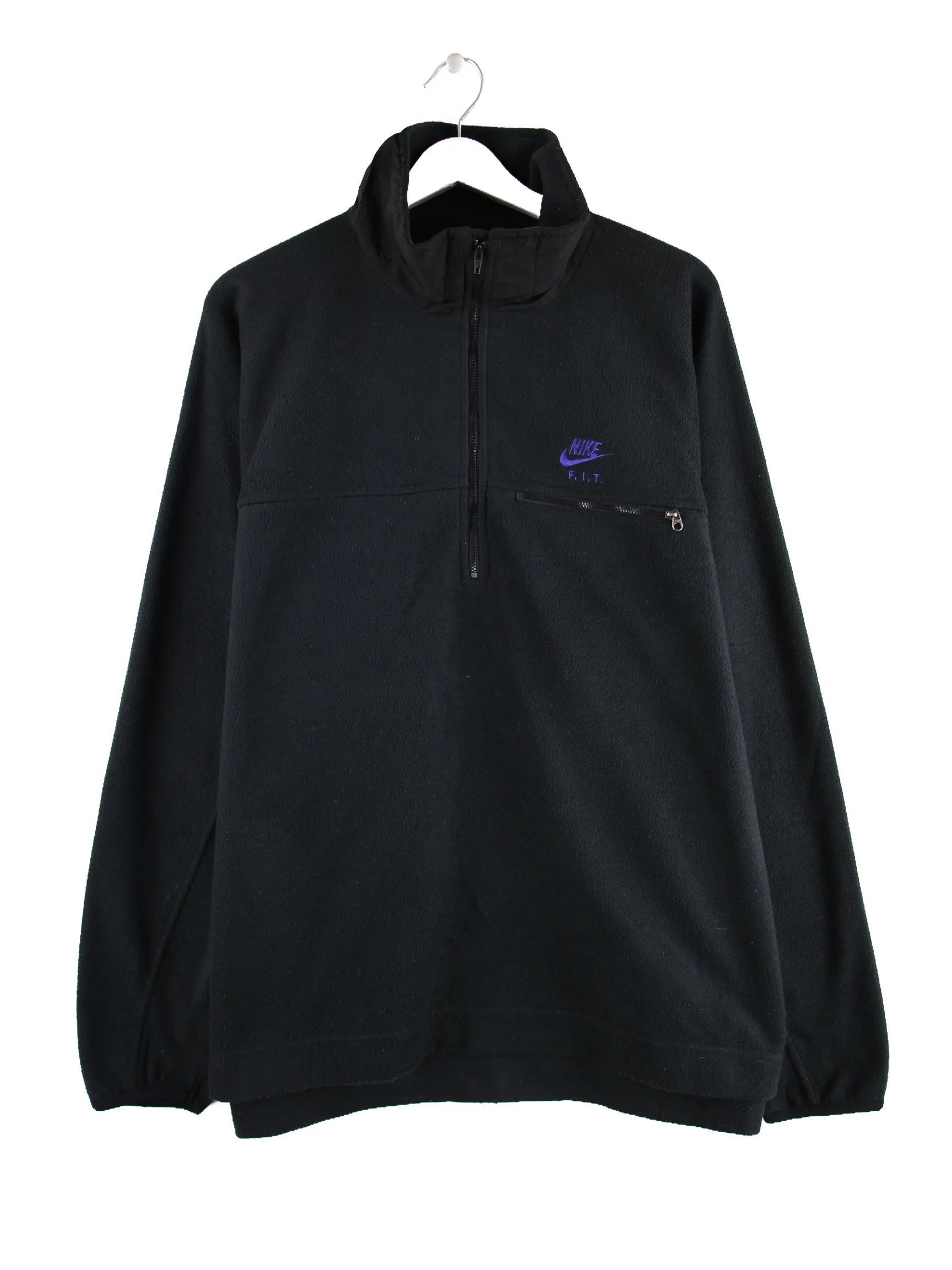 Leichte Jacke der Marke Nike mit halbem Reißverschluß in Größe XL aus den 90'ern. Sie ist aus gemütlichem Fleece produziert und in Schwarz im Angebot.