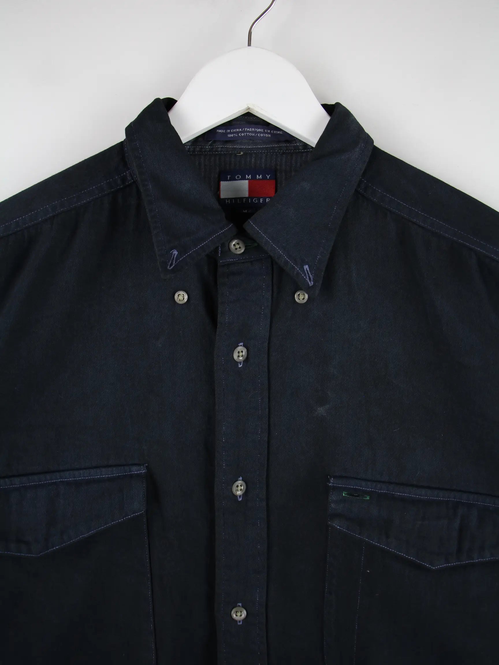 Tommy Hilfiger 90s Vintage Dyed Jeans Hemd Schwarz M