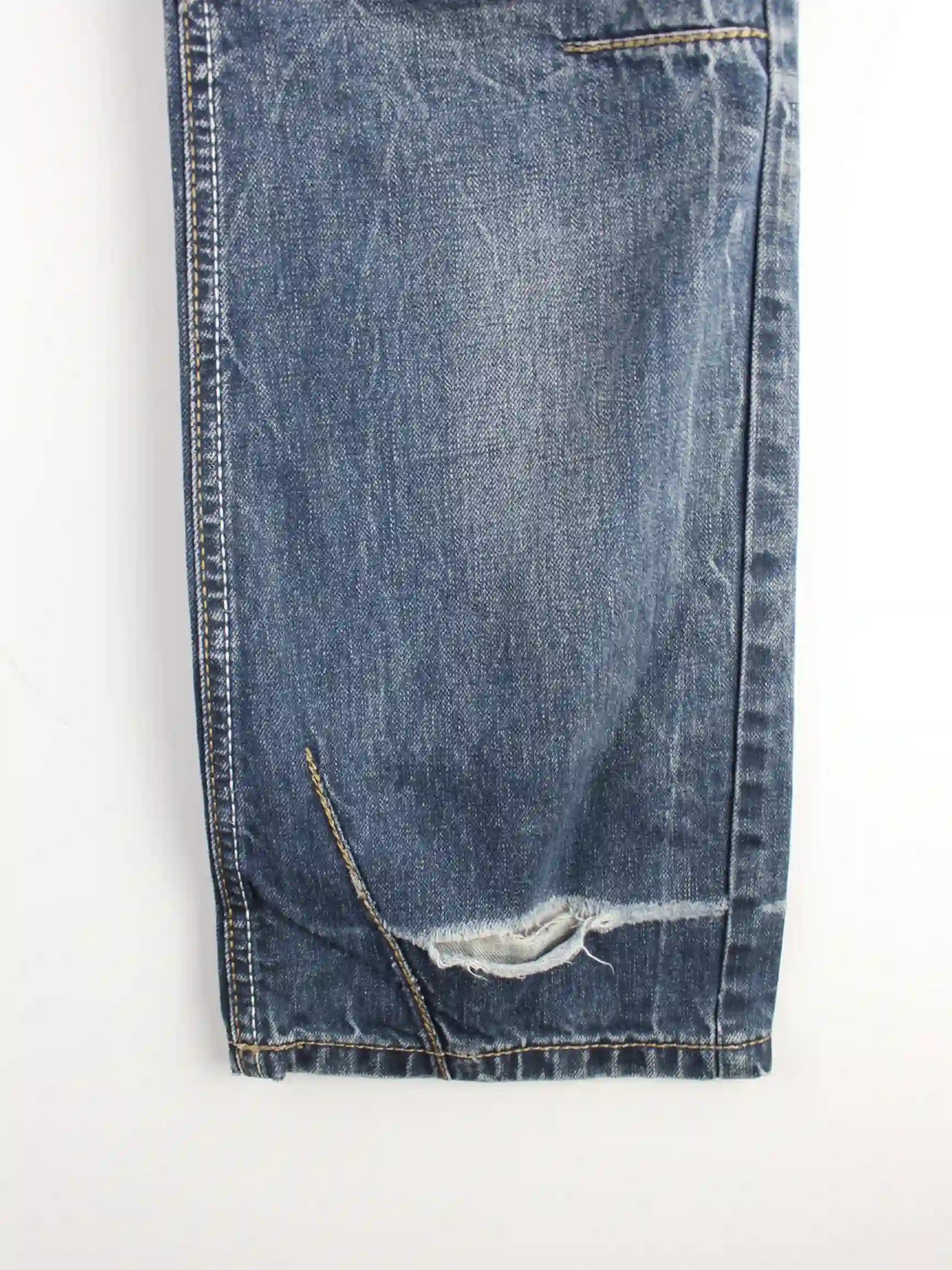 Vintage Blue Jeans in W34 x L32 aus Anfang der 2000'er. Den Zustand würden wir als 'In Ordnung' bezeichnen (vergl. Bilder).