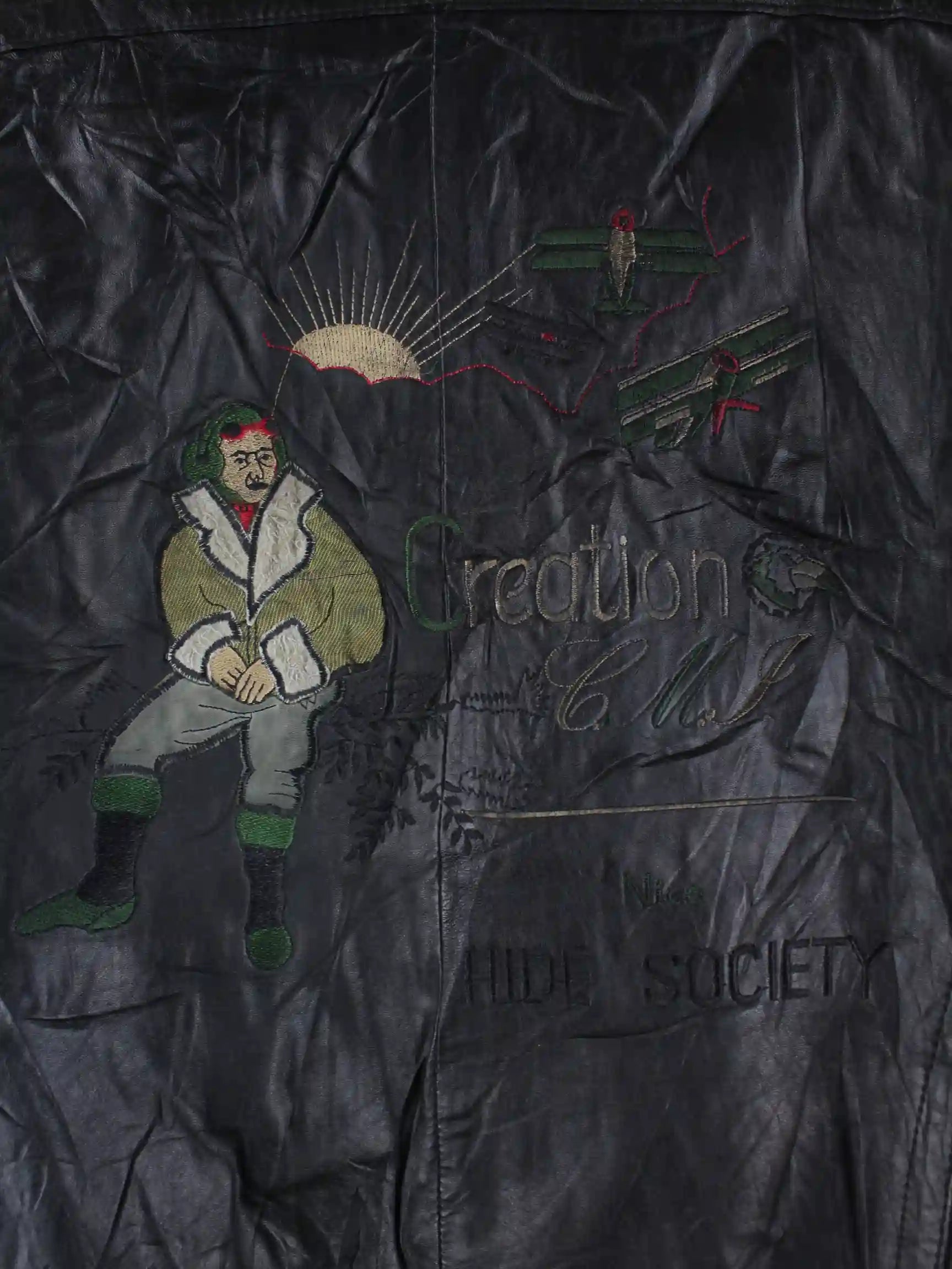 Vintage 80s Air Mall Embroidered Bomber Leder Jacke Schwarz XXL