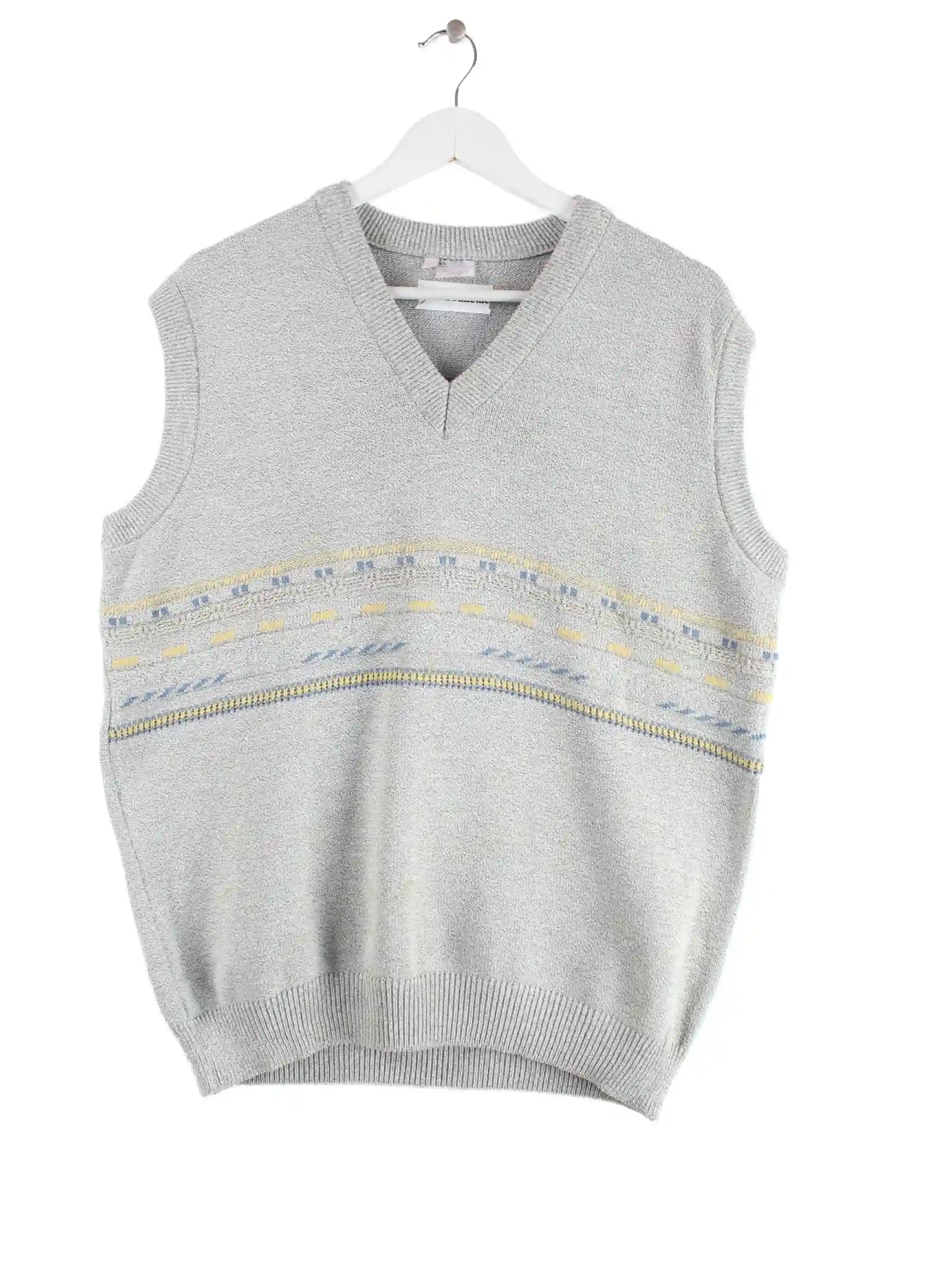 Vintage Pullunder in Größe L aus den 90'ern. Er ist aus einer Baumwollmischung gefertigt und in Grau in Stock.