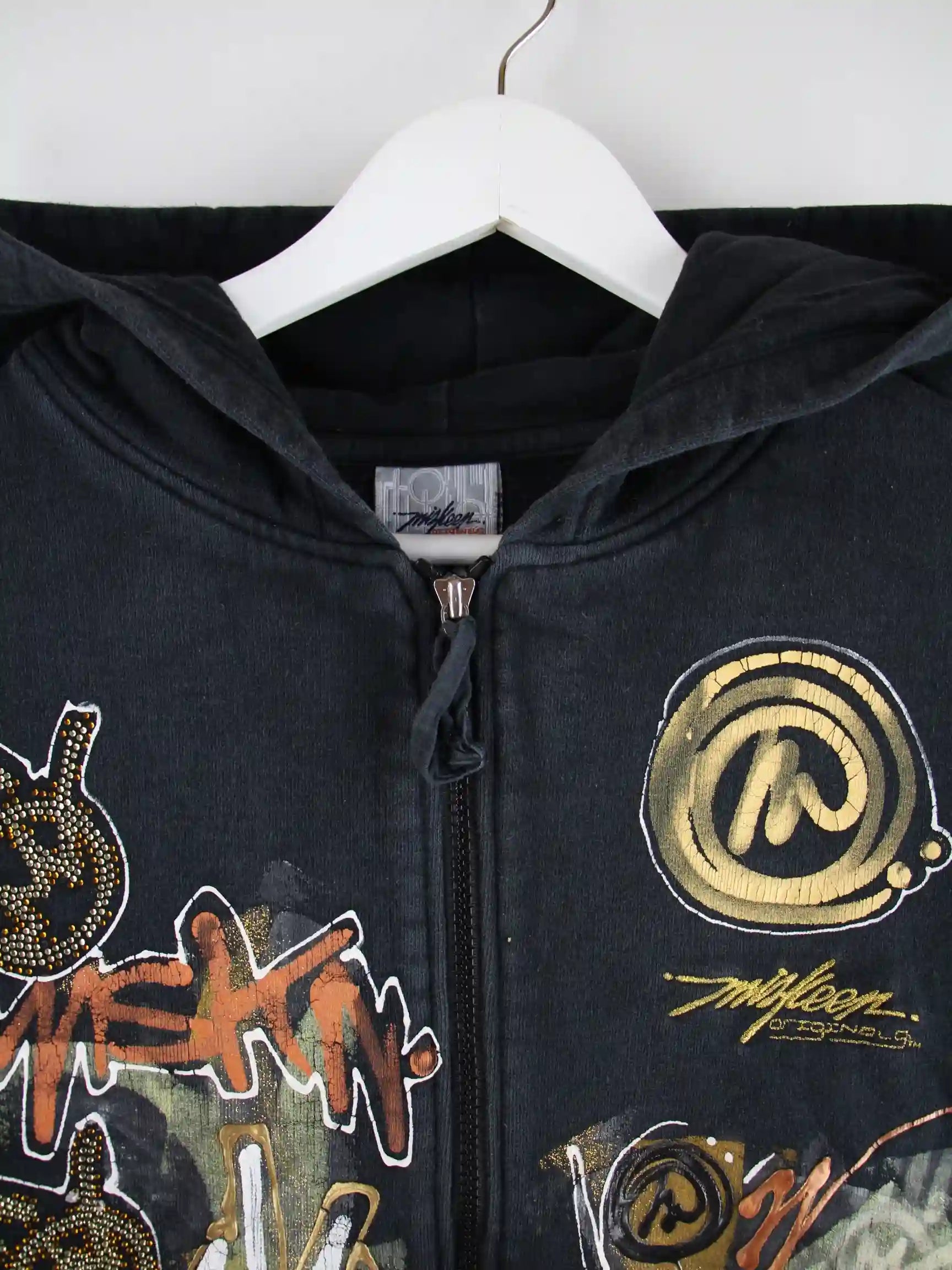 Vintage y2k Painted Zip Hoodie Schwarz XL