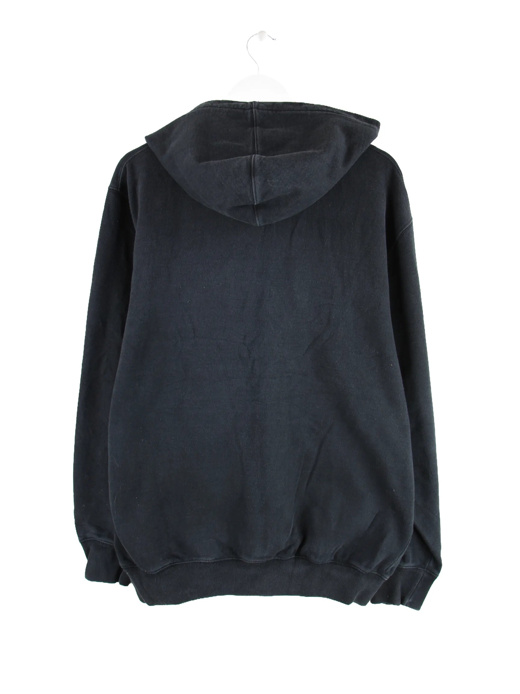 Schwarzer Vintage Hoodie mit Zip aus Anfang der 2000'er in Größe XL. Er ist aus einer Baumwollmischung und in gutem Zustand lieferbar.
