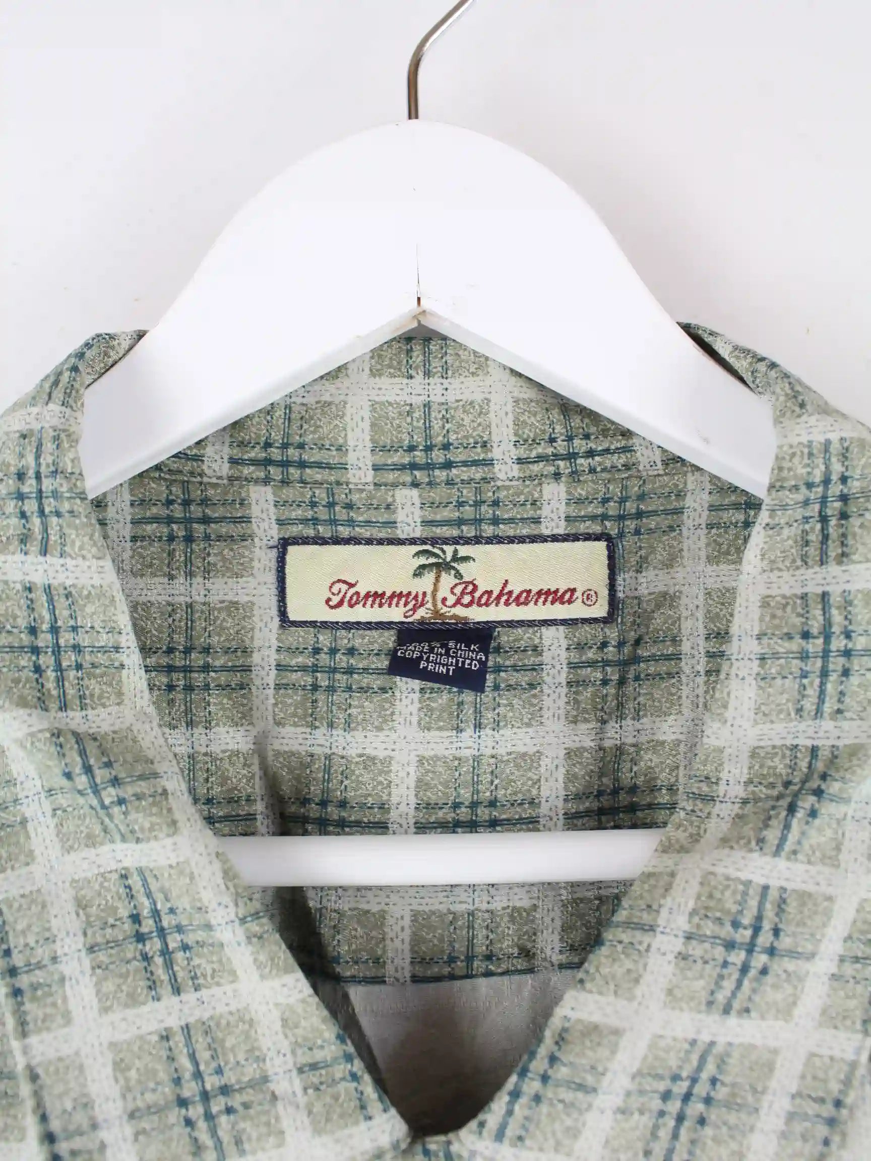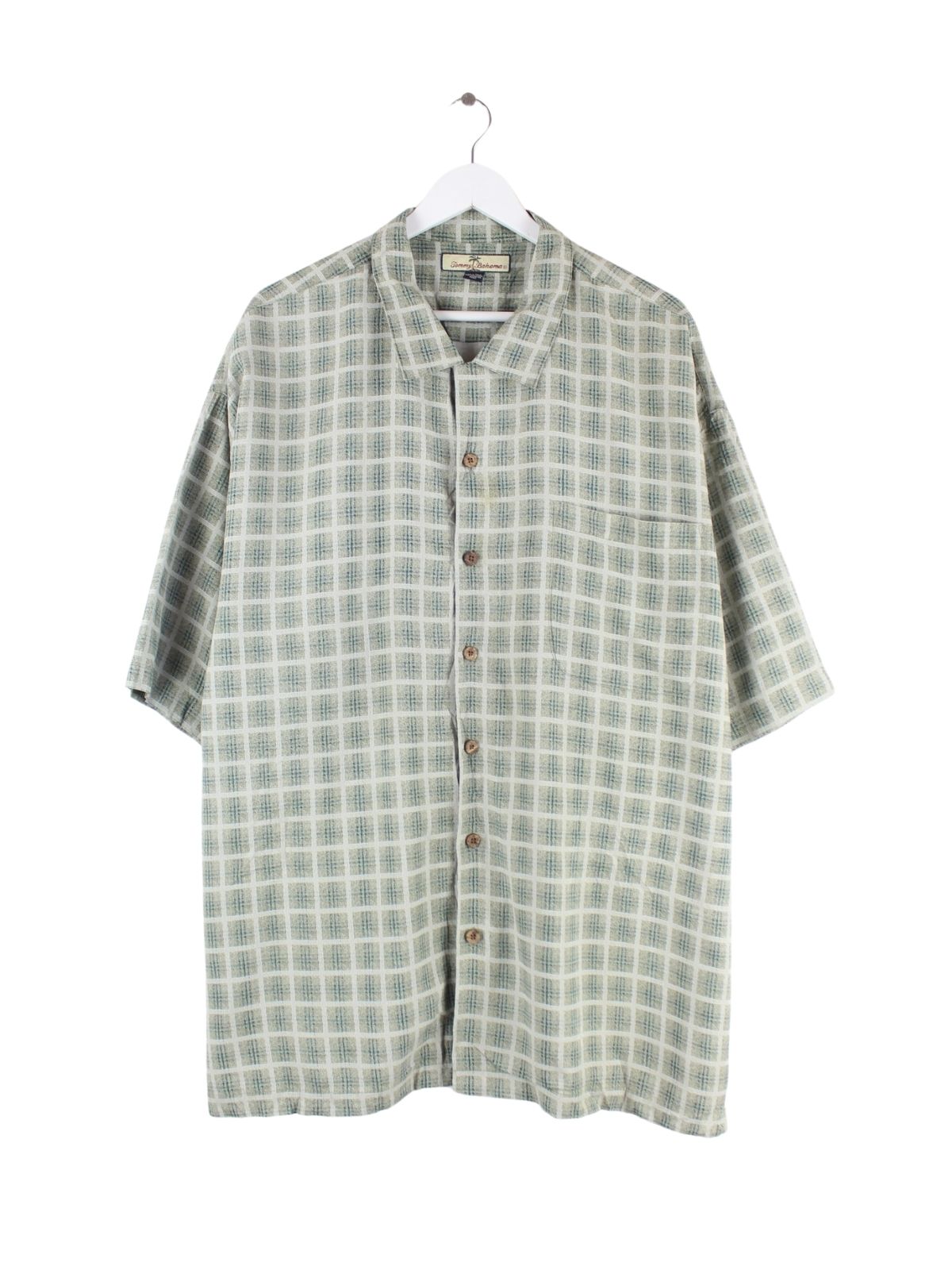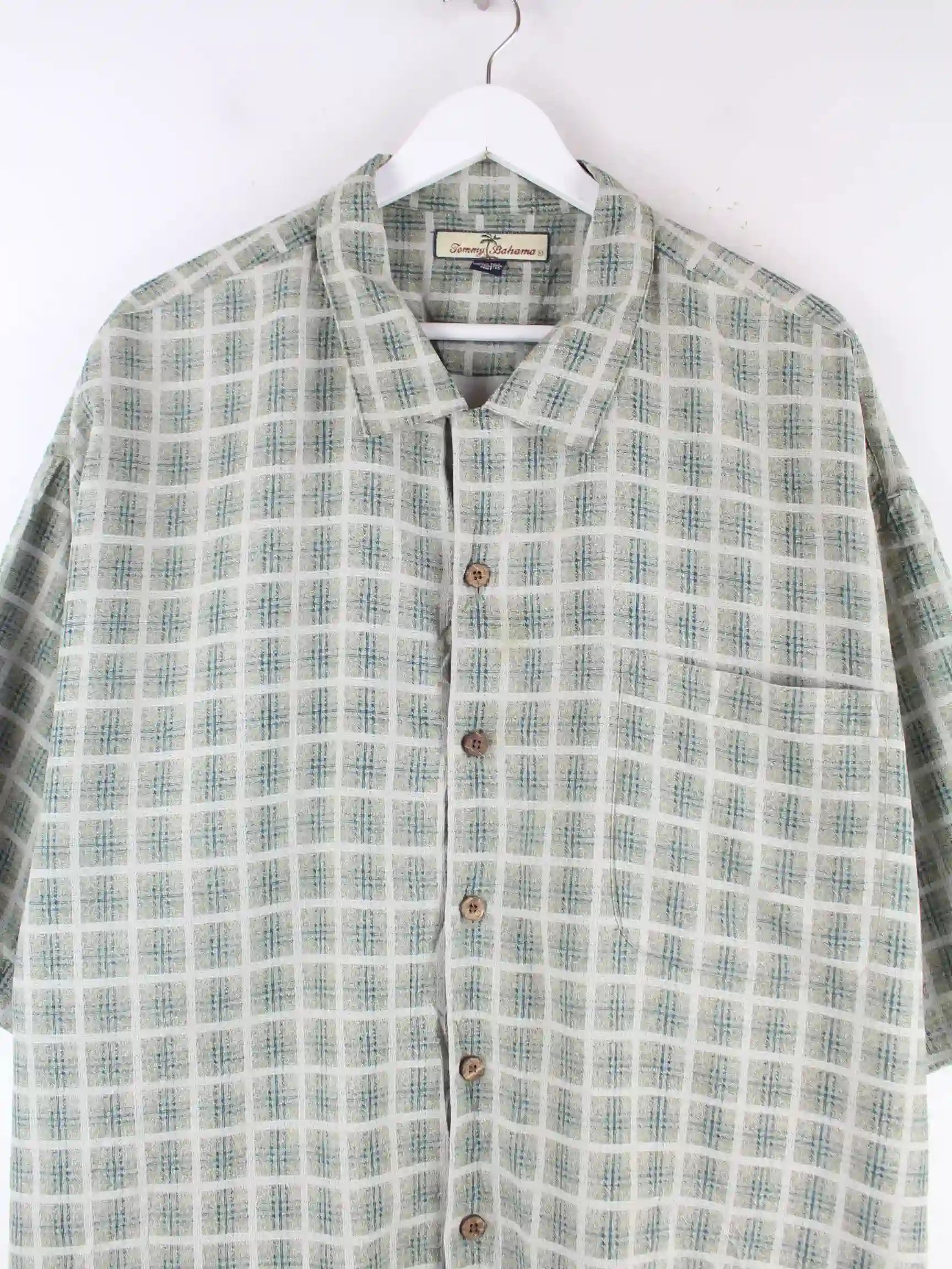 Freizeit Hemd vom Label Tommy Bahama in Größe XXL. Es ist aus Seide gemacht und in Grün im Bestand.