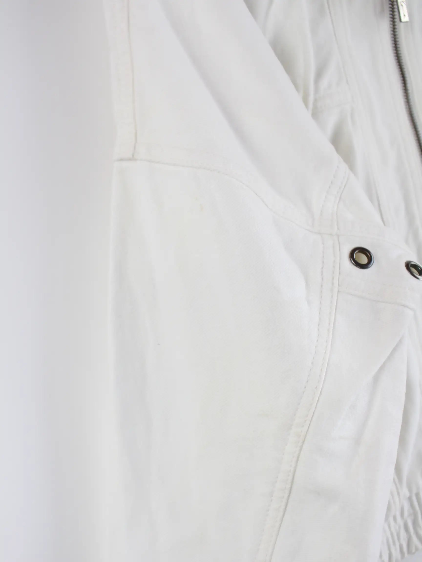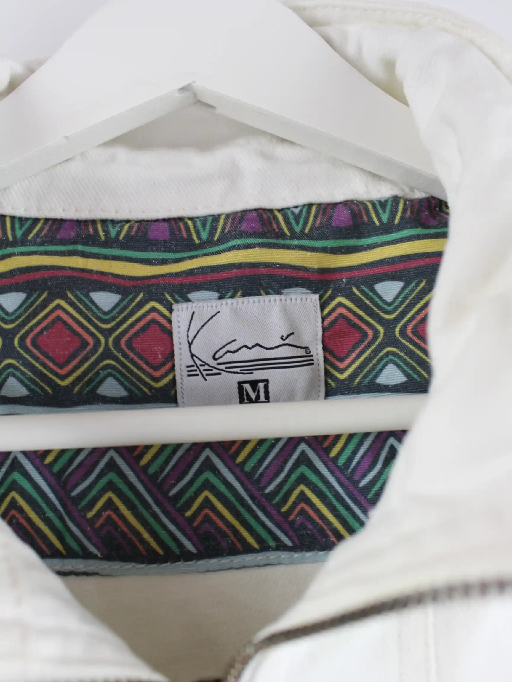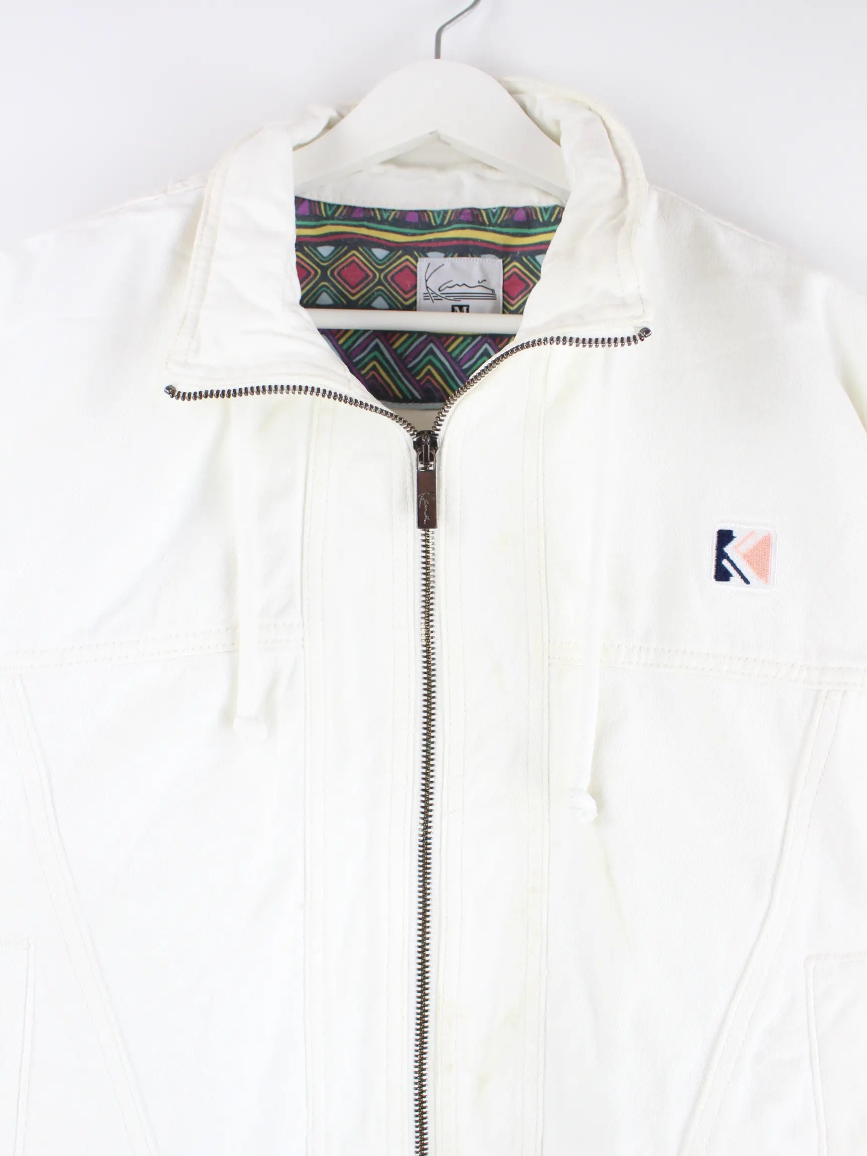 Weiße Leichte Jacke der Marke Karl Kani aus Anfang der 2000'er in Größe M. Sie ist aus Baumwolle . Den Zustand würden wir als 'In Ordnung' bezeichnen (vergl. Bilder).