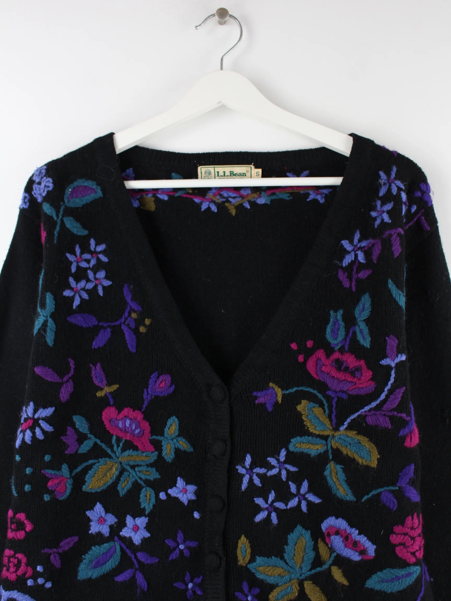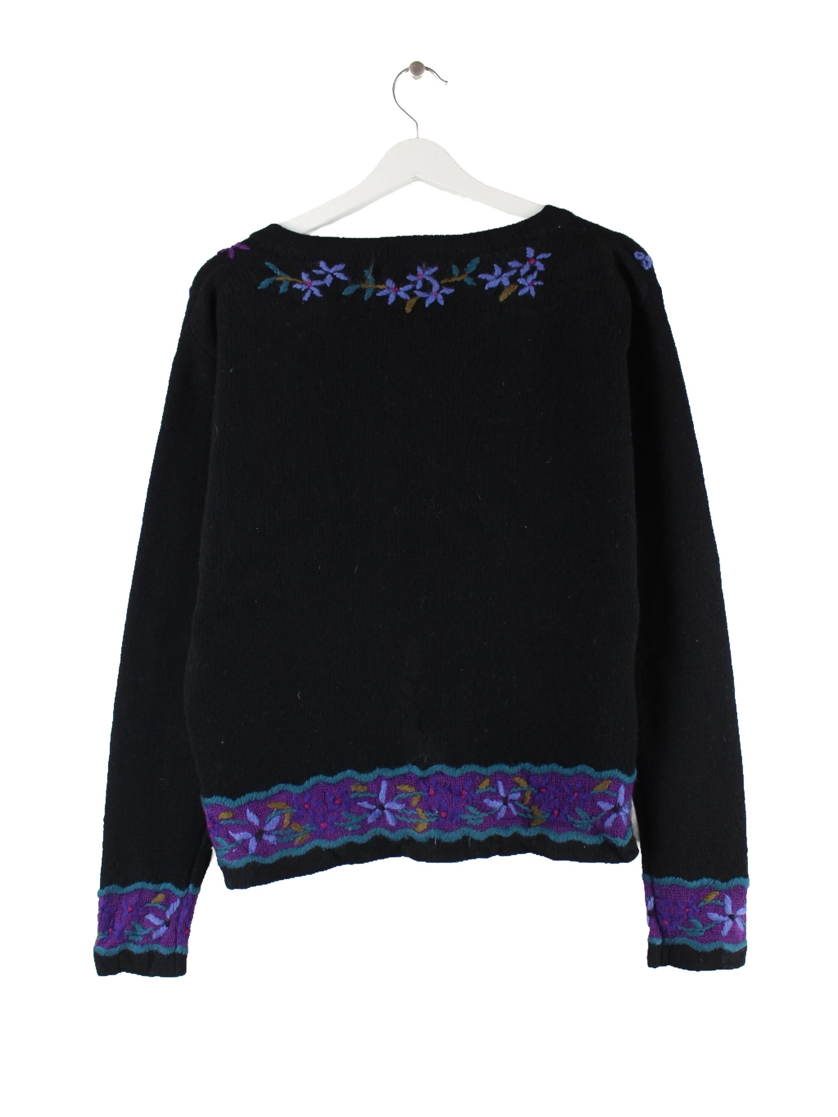 L.L. Bean Damen 00s Flower Woll Cardigan Strickjacke Schwarz S