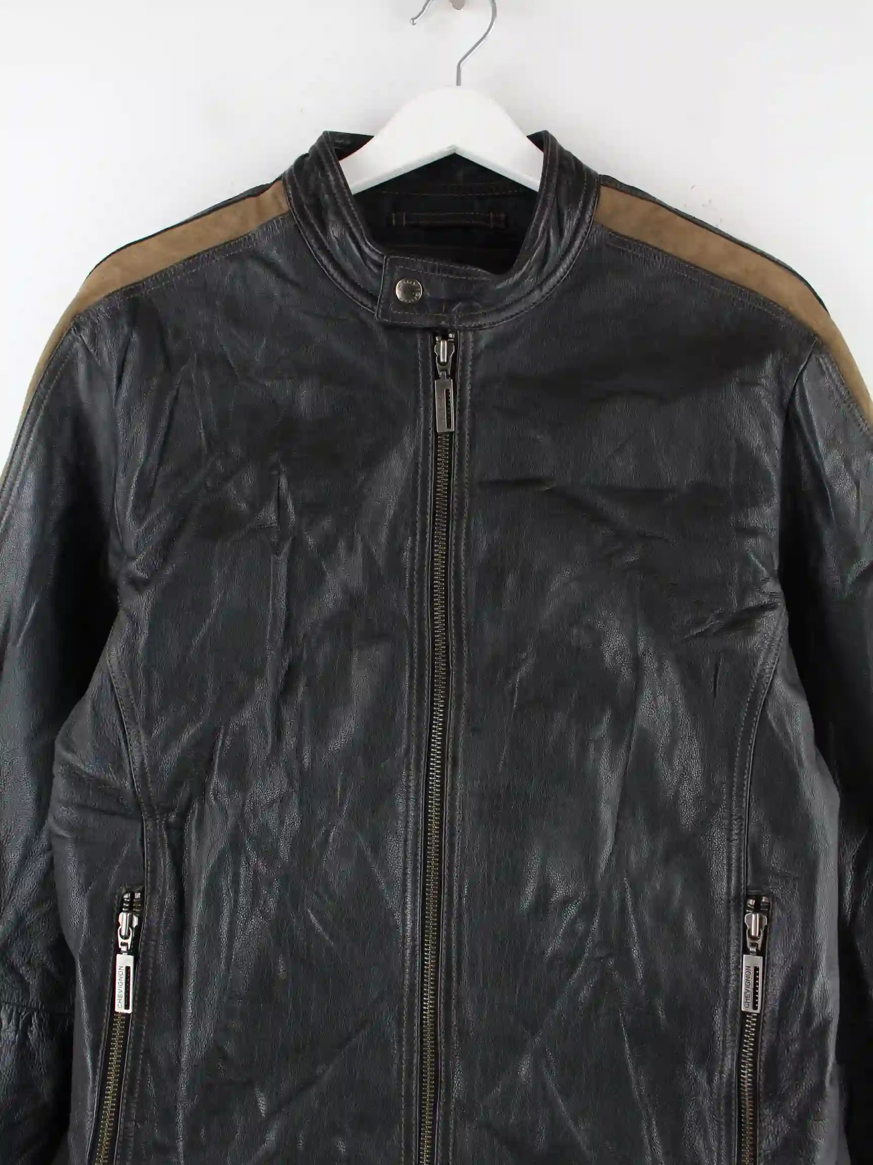 Chevignon 00s Leder Biker Jacke Schwarz M