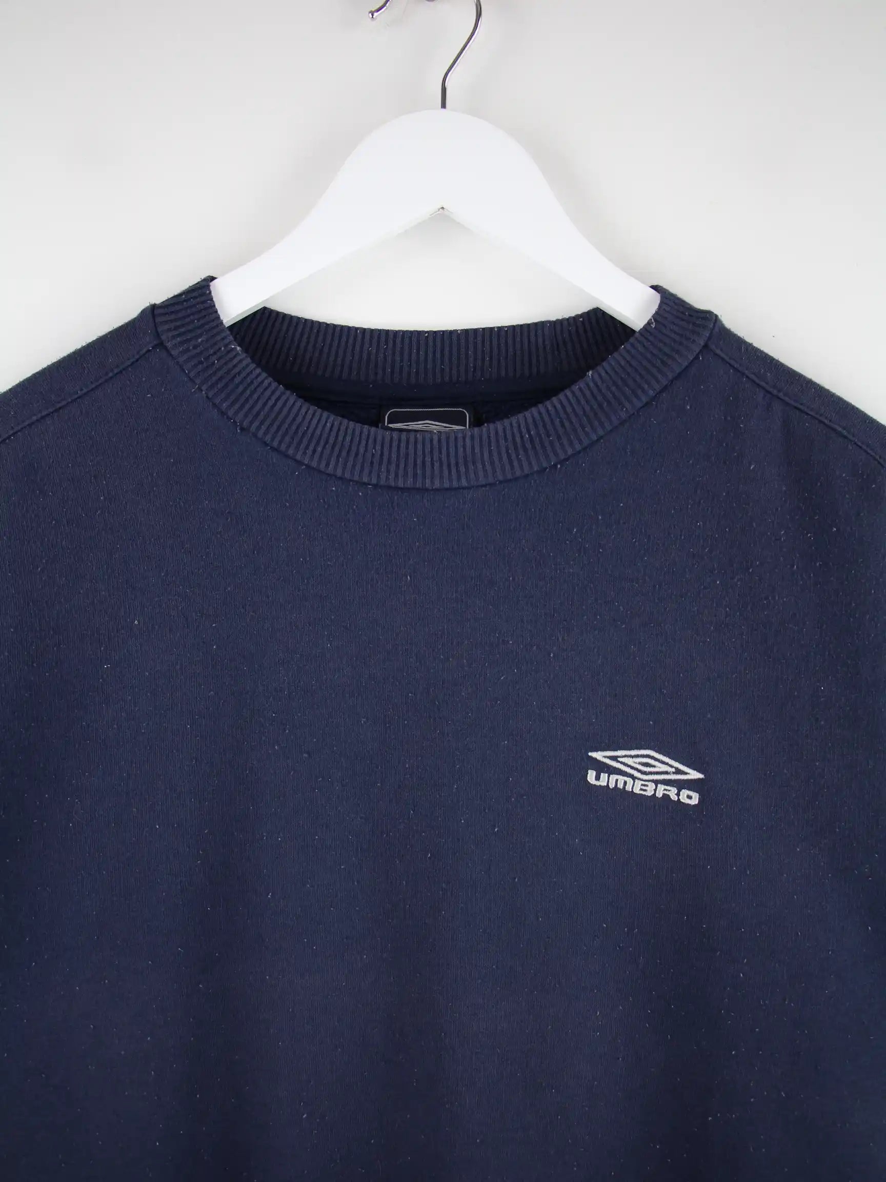 Blauer Sweater vom Label Umbro in Größe M. Er ist aus einer Baumwollmischung hergestellt und in gutem Zustand vorrätig.