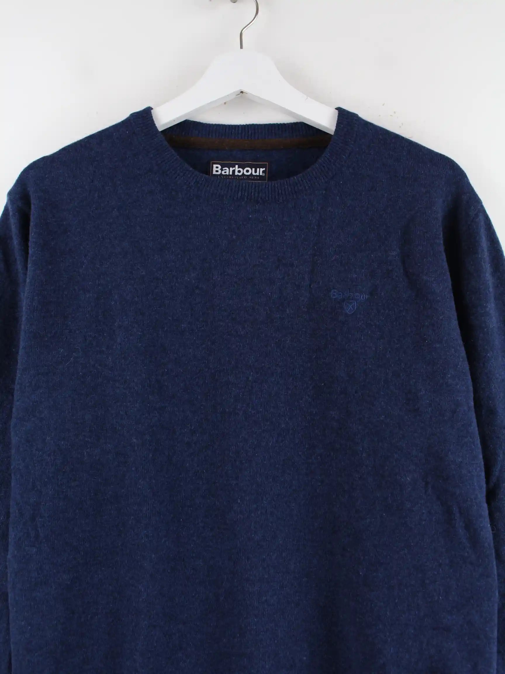Blauer Pullover des Labels Barbour in Größe L. Er ist aus Wolle und in sehr gutem Zustand vorrätig.