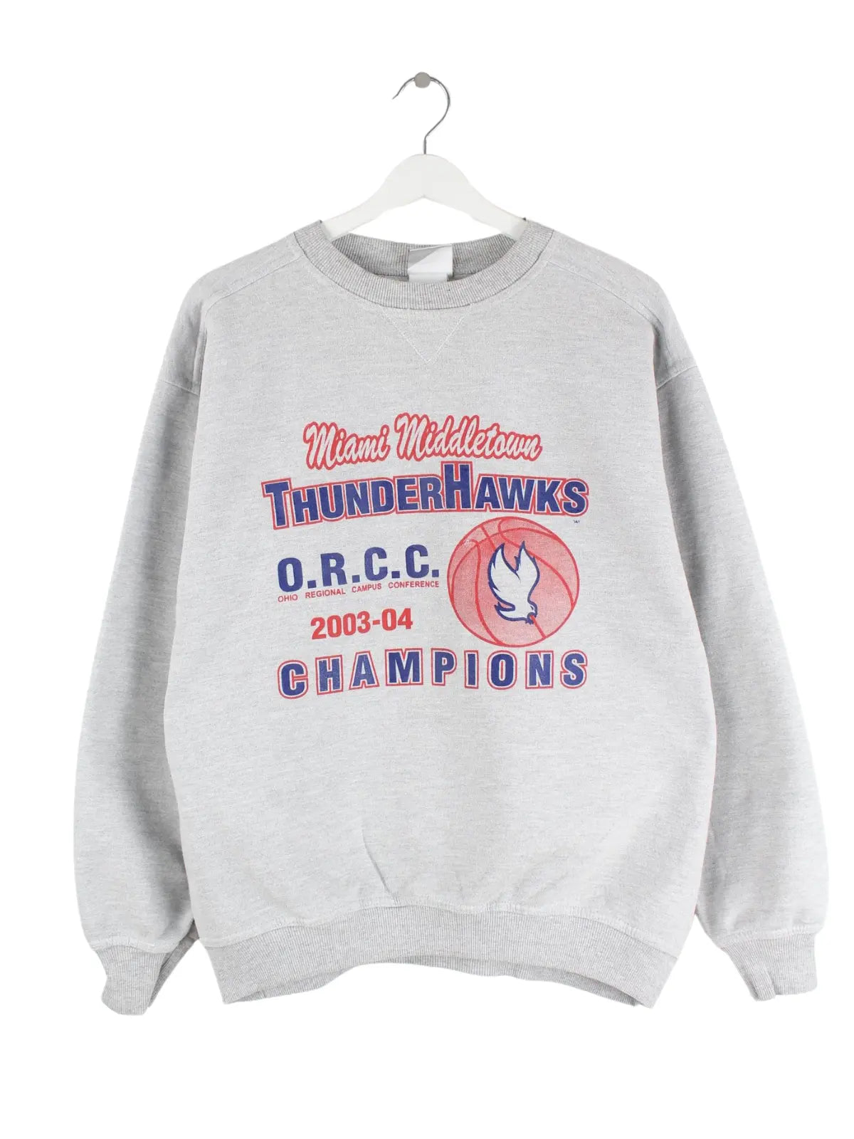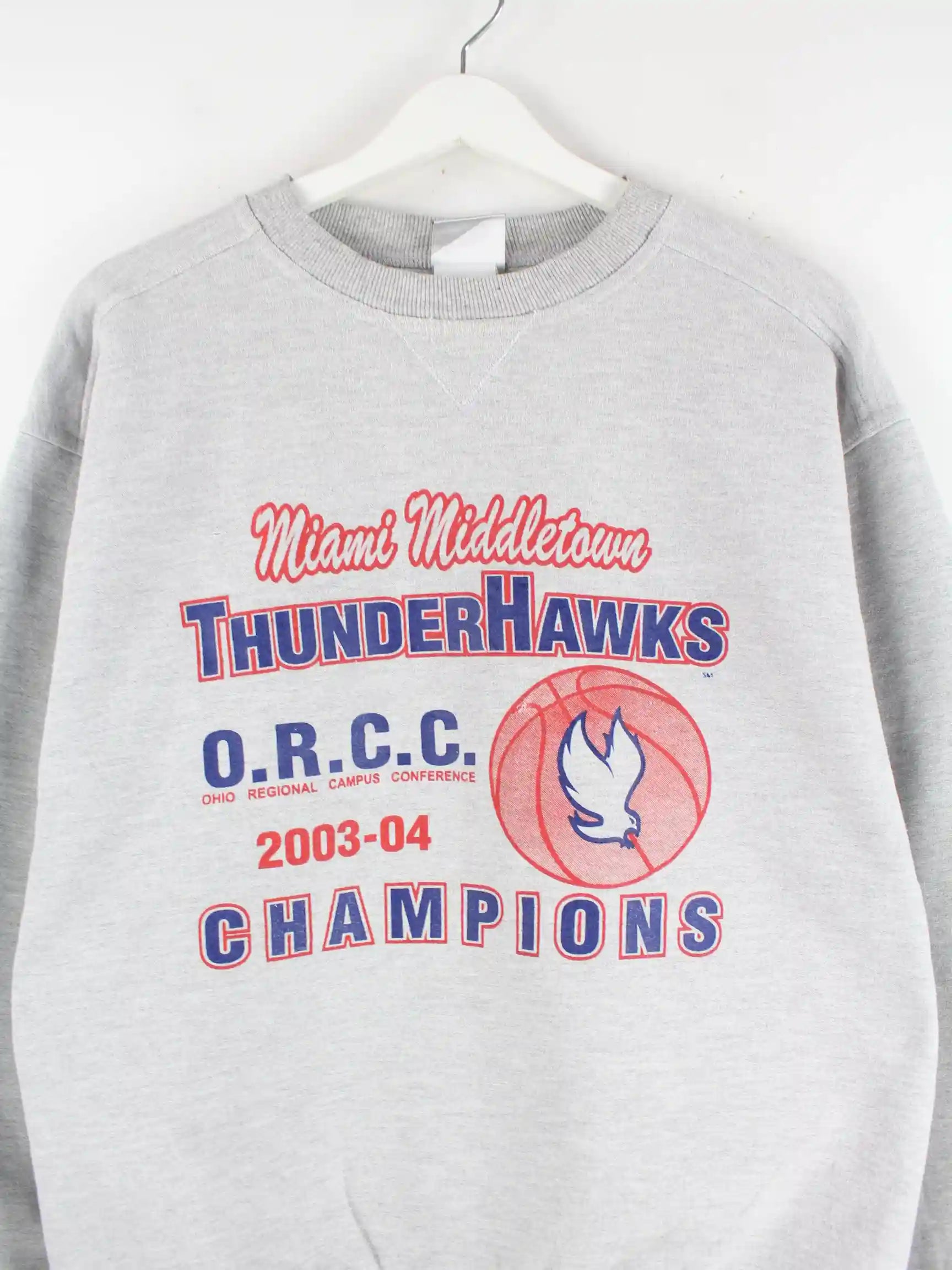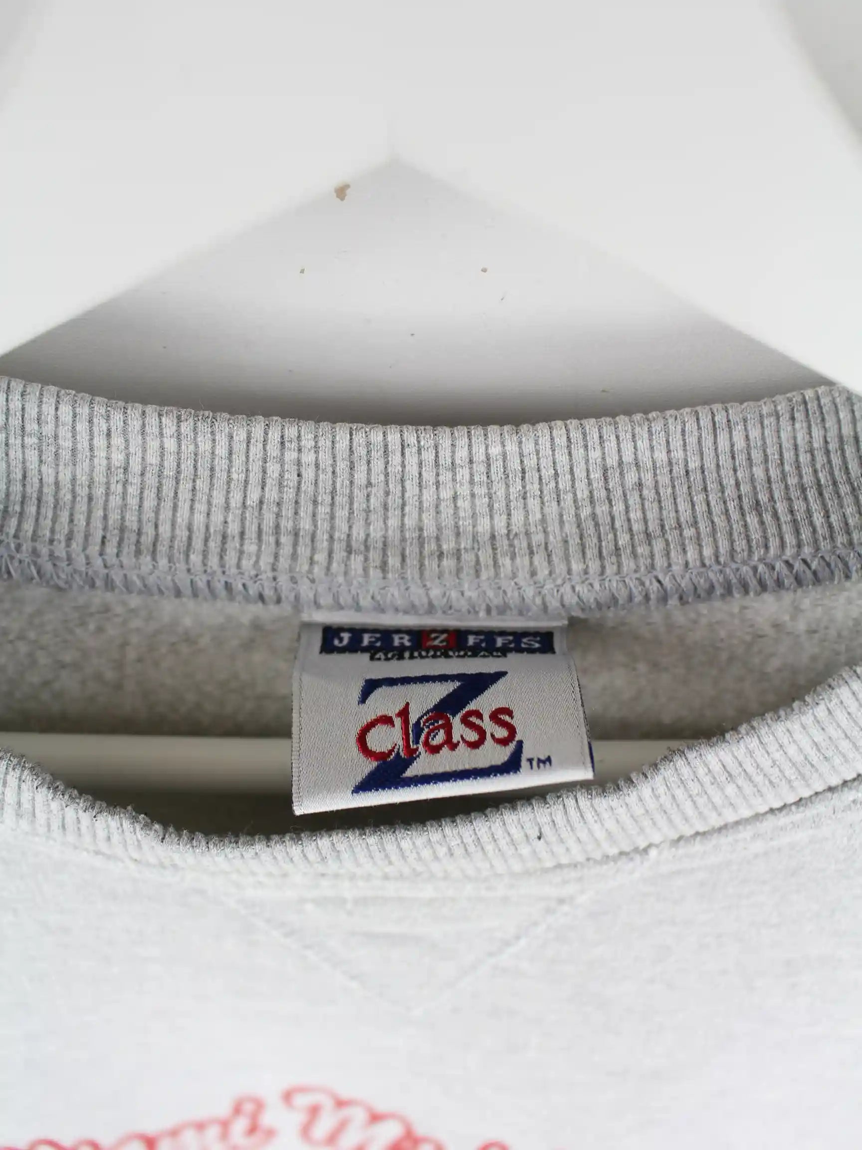 Sweater von Jerzees in Größe S. Er ist aus einer Baumwollmischung gefertigt und in Grau auf Lager. Mit seltenem Haws Print.