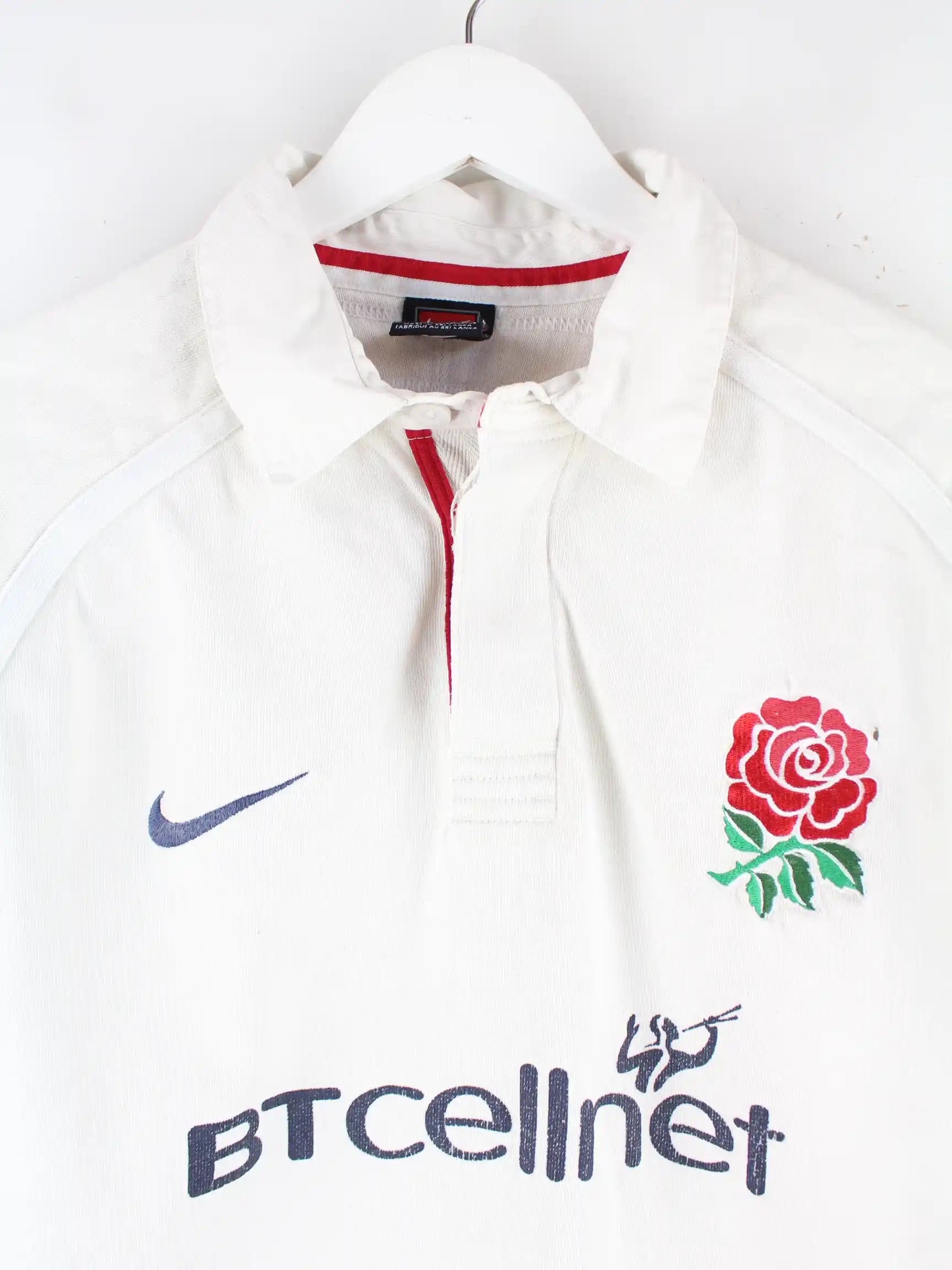 Nike 00s Rose Bowl Rugby Langarm Polo Weiß L