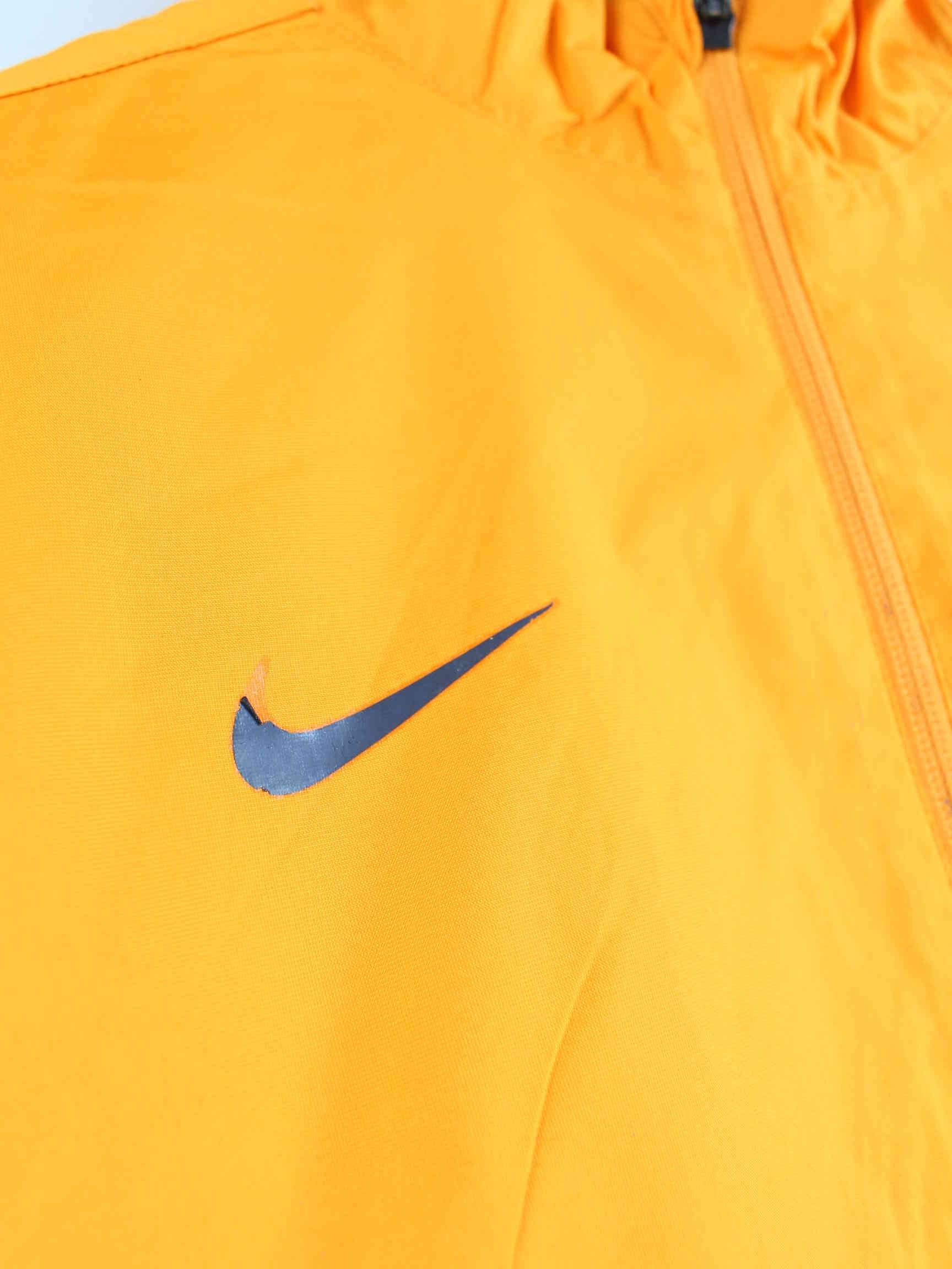 Trainingsjacke aus dem Hause Nike in Größe S. Sie ist aus Synthetik gefertigt und in Orange on Stock.