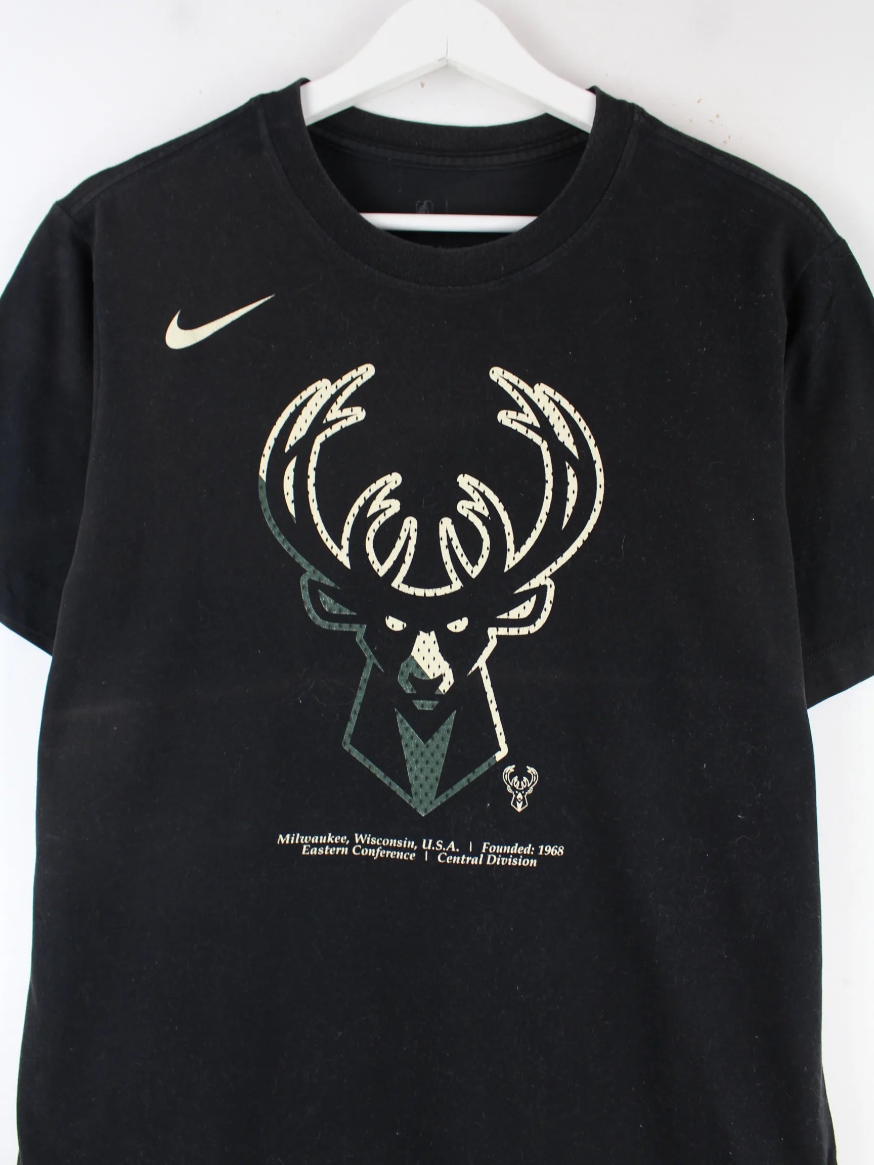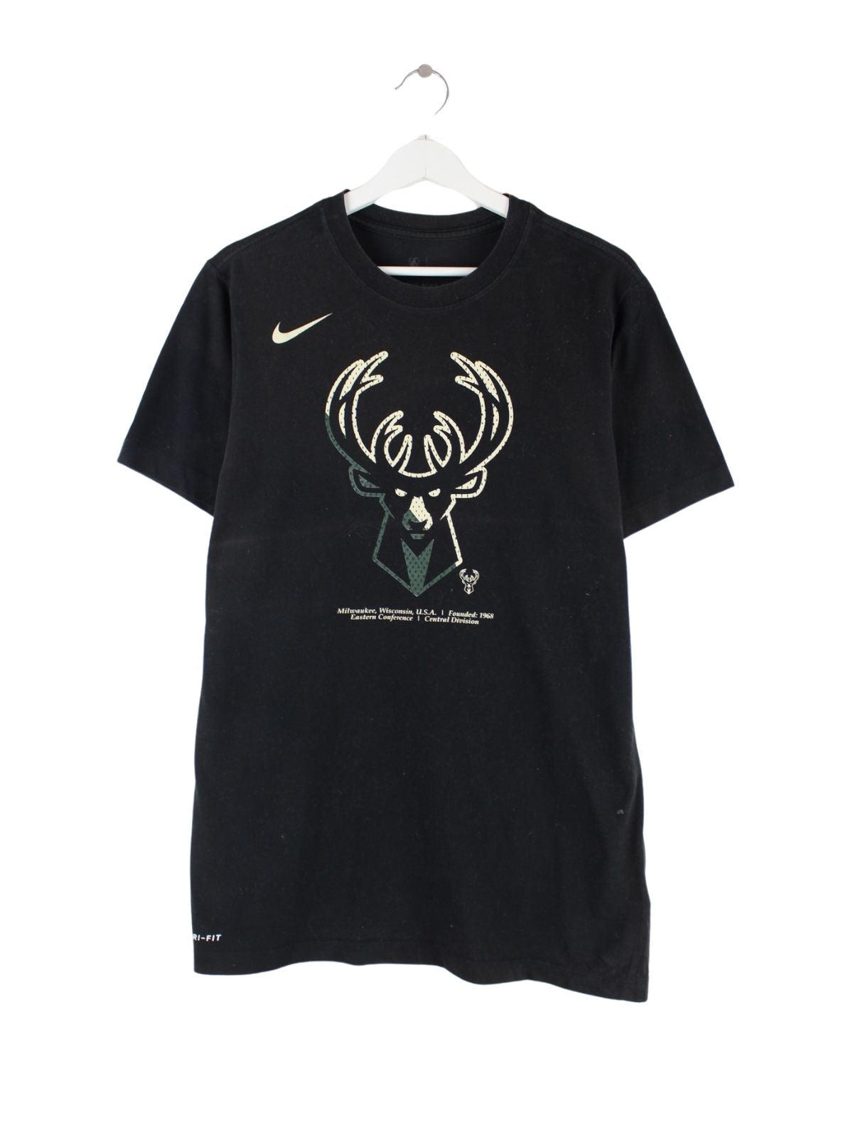 T-Shirt vom Label Nike in Größe M. Es ist aus Baumwolle produziert und in Schwarz in Stock. Mit schönem Print.