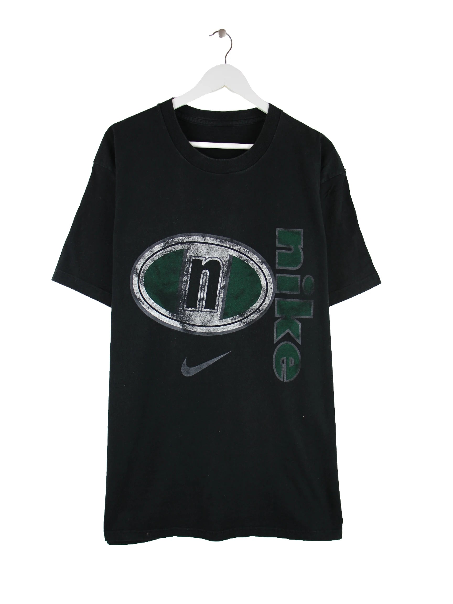 T-Shirt vom Brand Nike in Größe XL. Es ist aus Baumwolle gefertigt und in Schwarz bei uns vorrätig. Mit chiquem 00s Print.