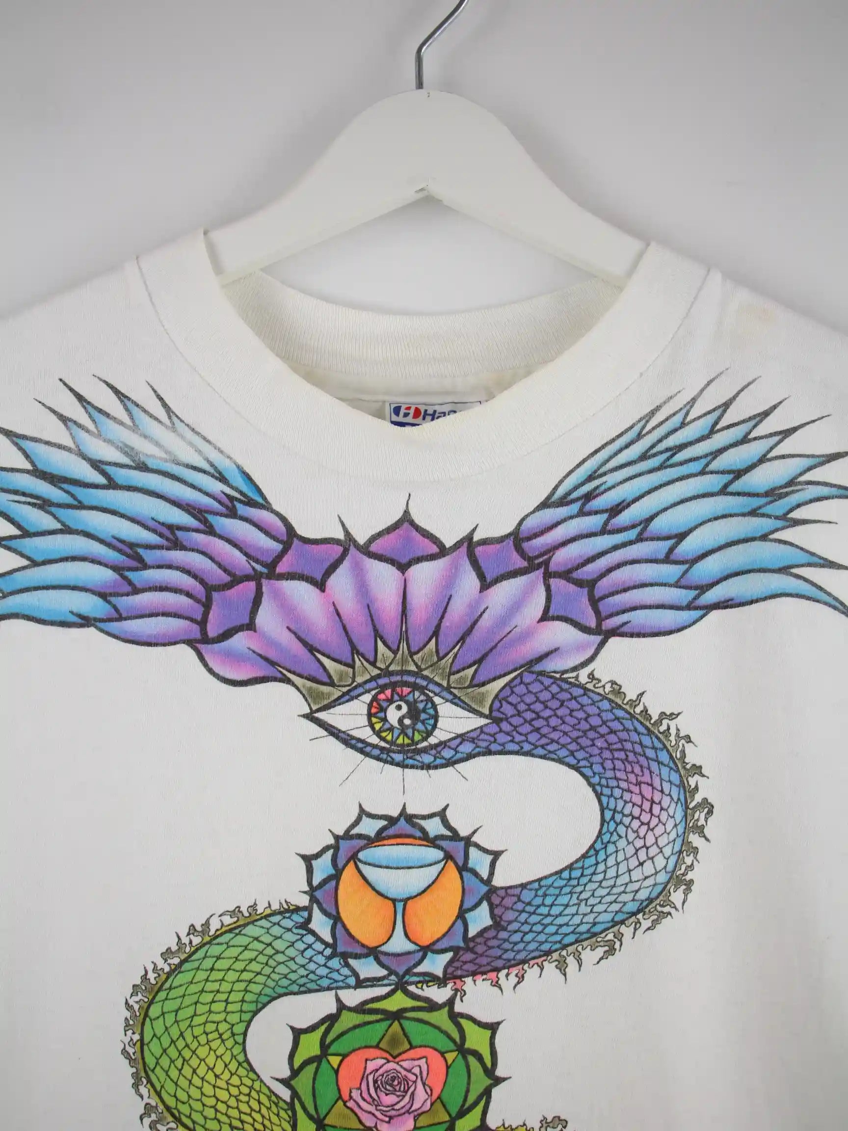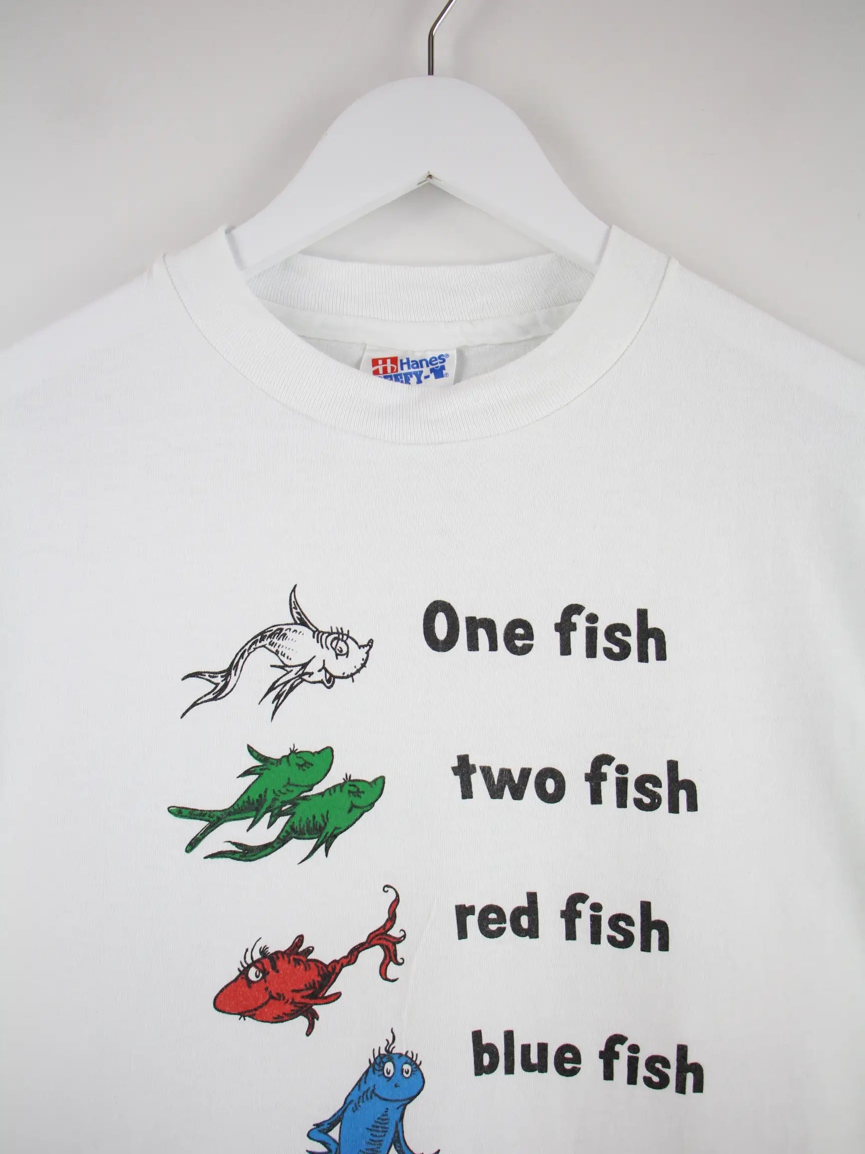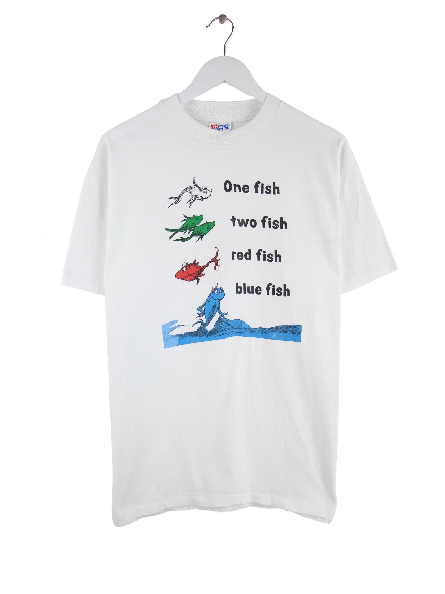 Hanes 90s Vintage Fish Print Single Stitch T-Shirt Weiß L