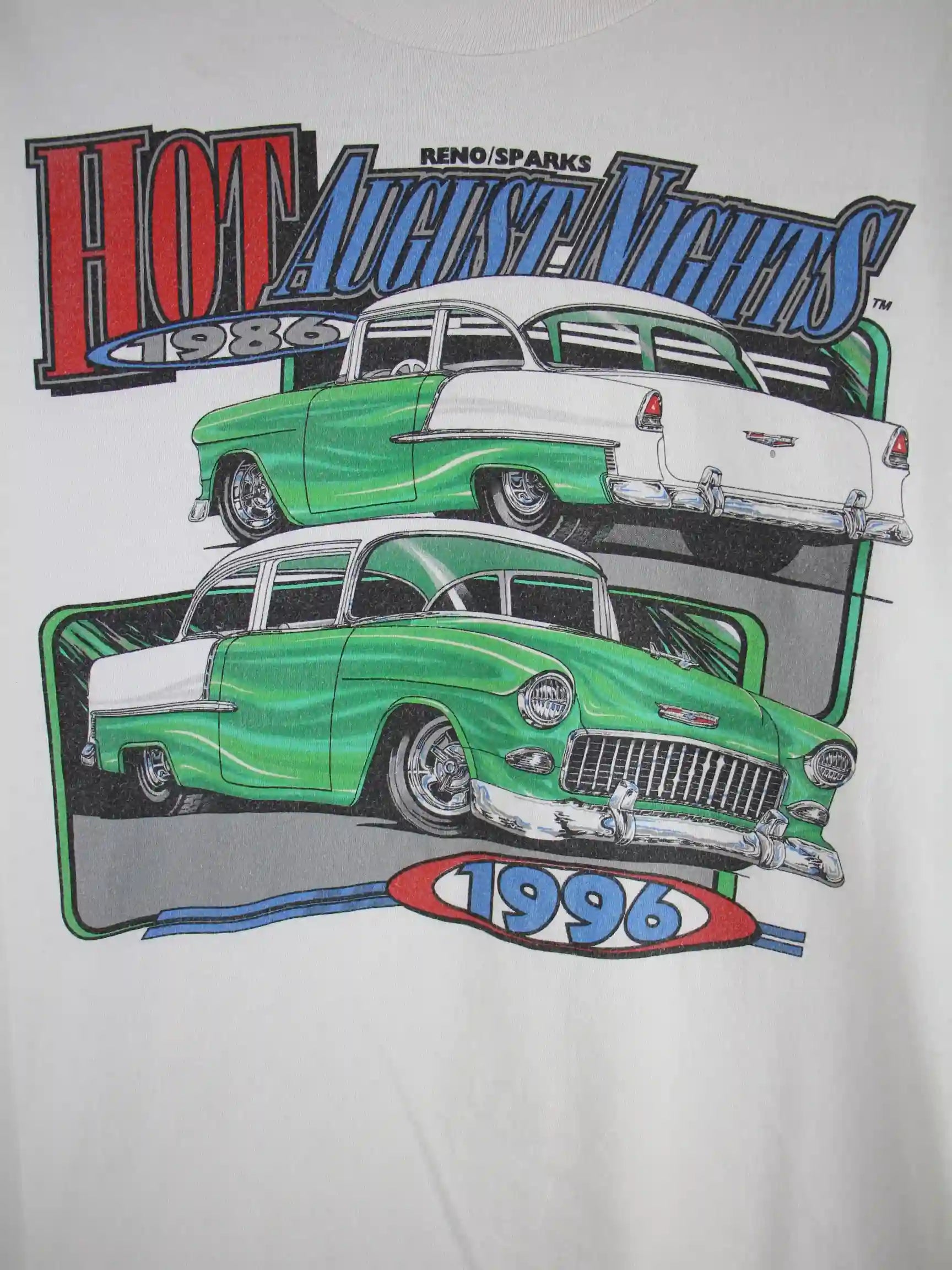 Hanes 1996 Vintage Oldtimer Racing Print Single Stitch T-Shirt Weiß L