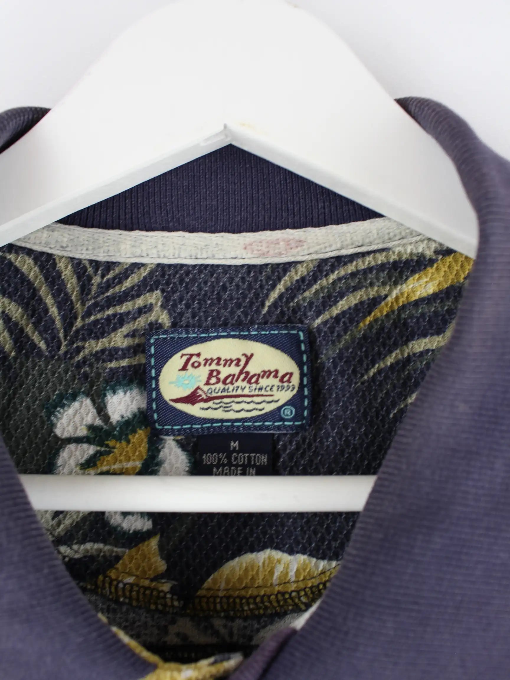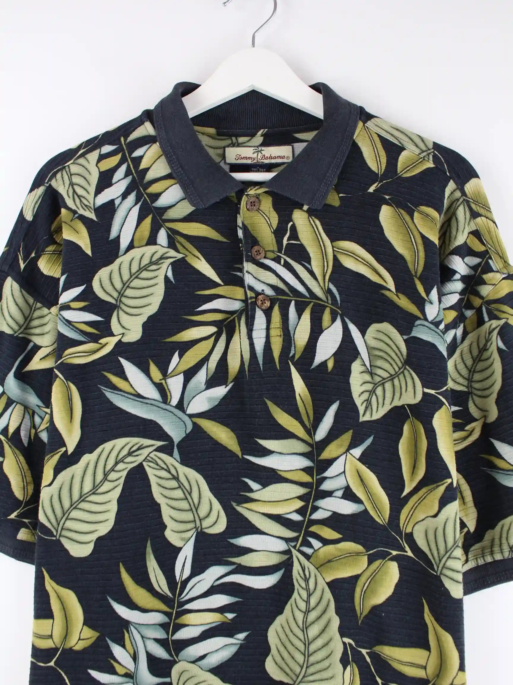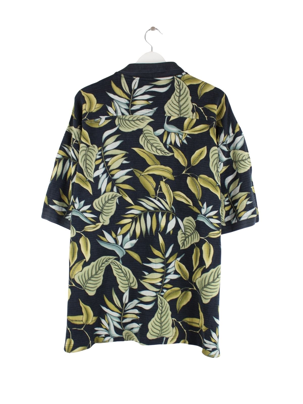 Tommy Bahama 90s Vintage Flower Pattern Polo Blau L