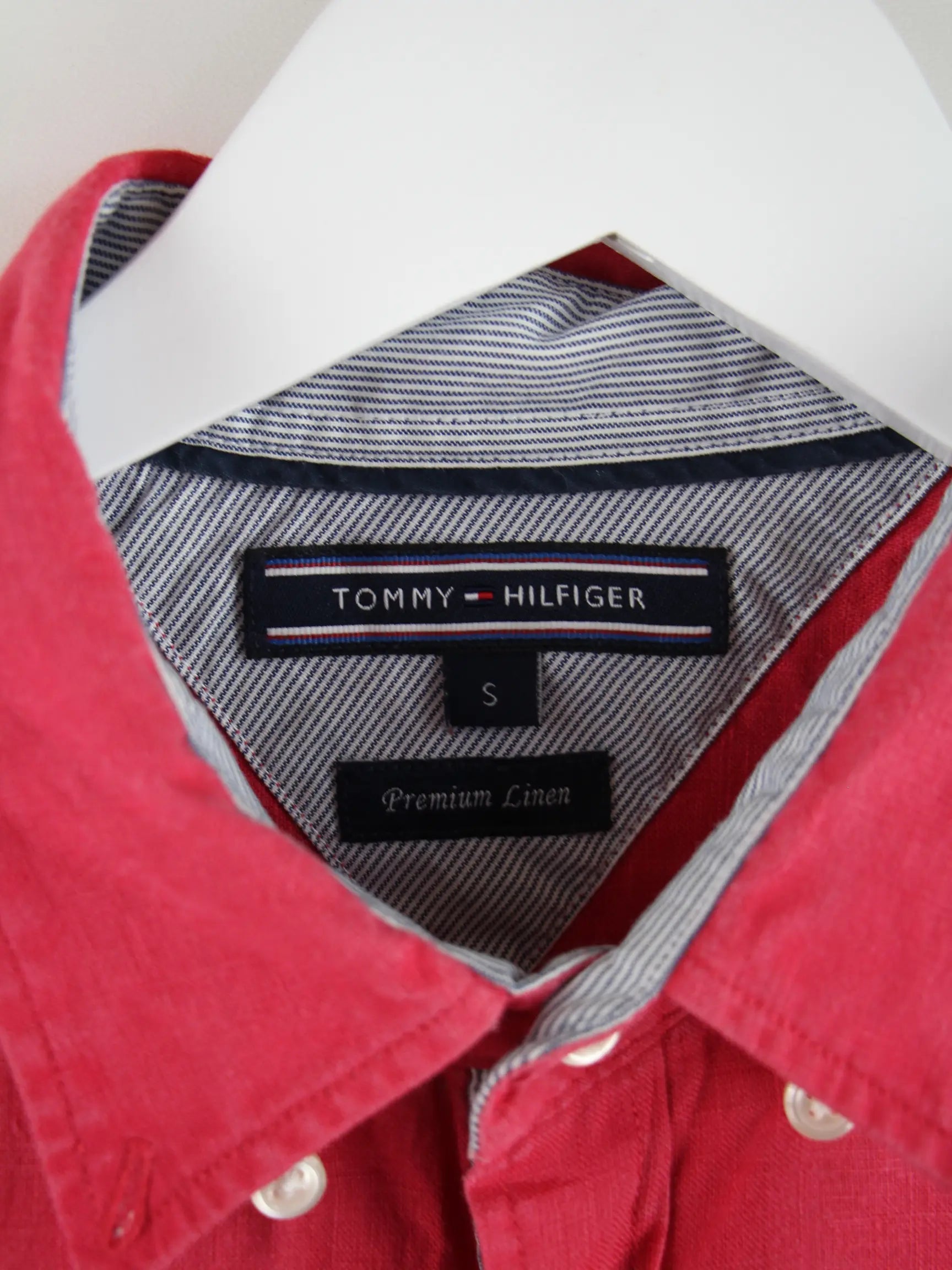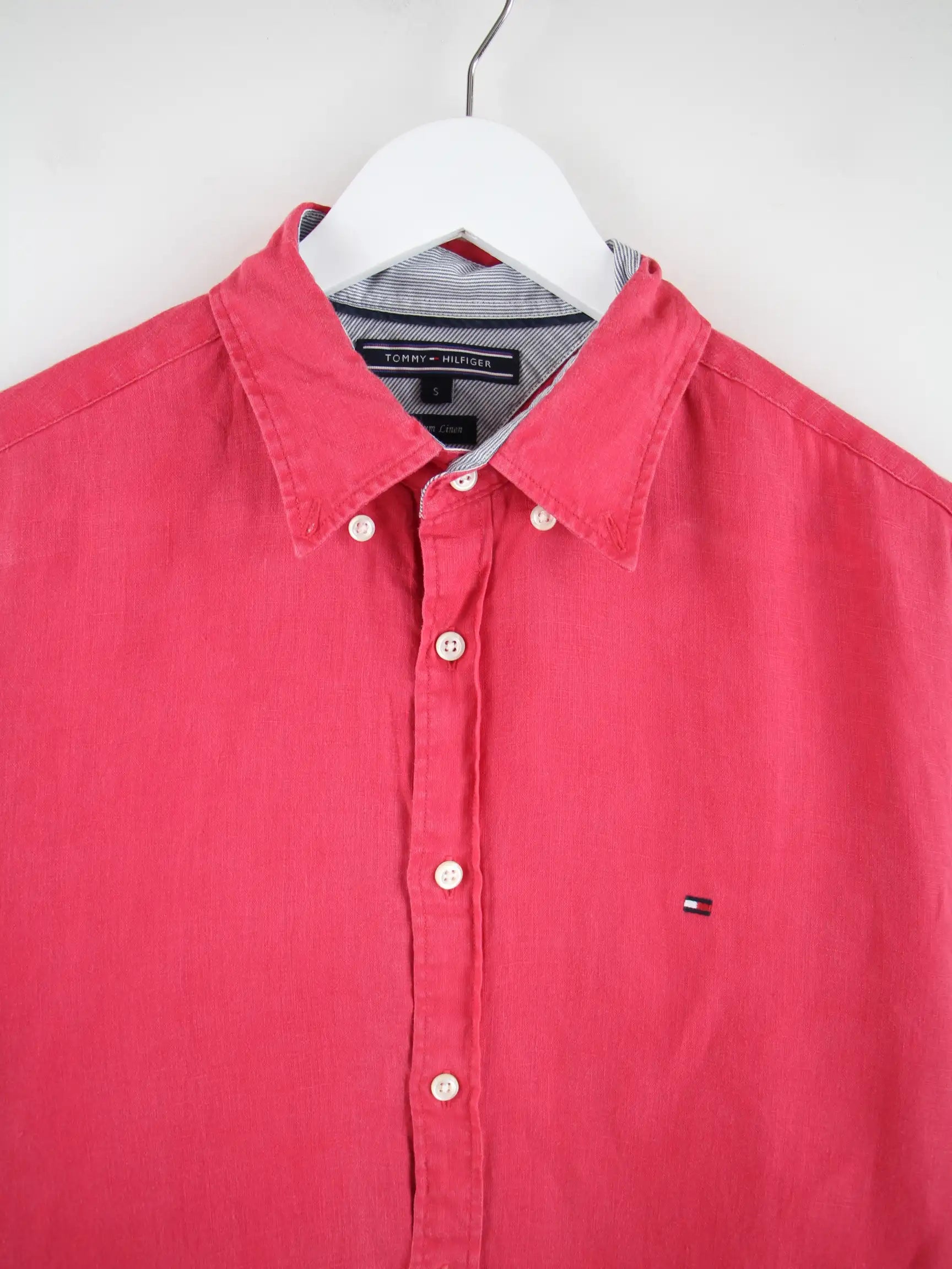 Rotes Hemd der Brand Tommy Hilfiger in Größe S. Es ist aus Leinen produziert und in sehr gutem Zustand in Stock.