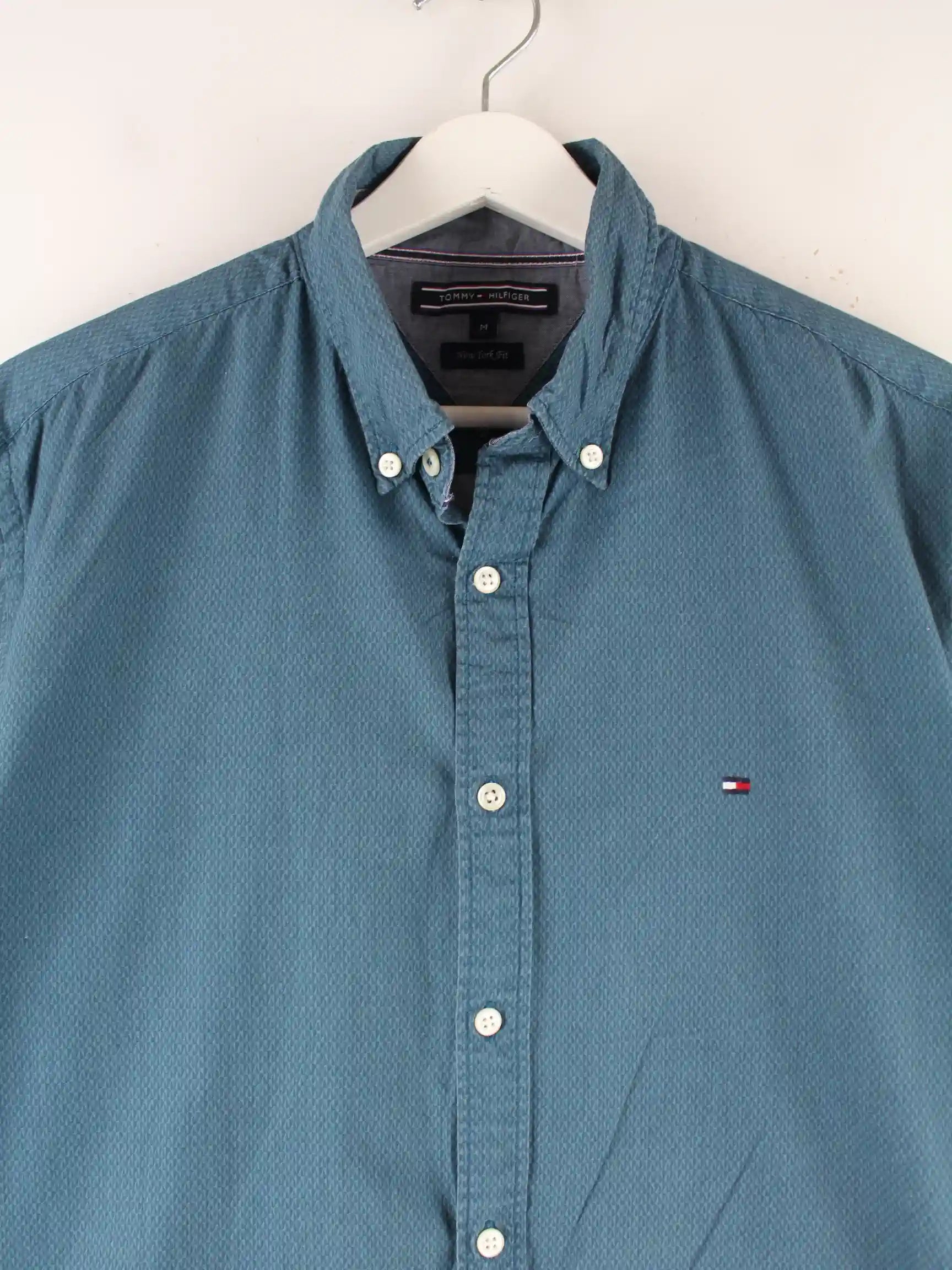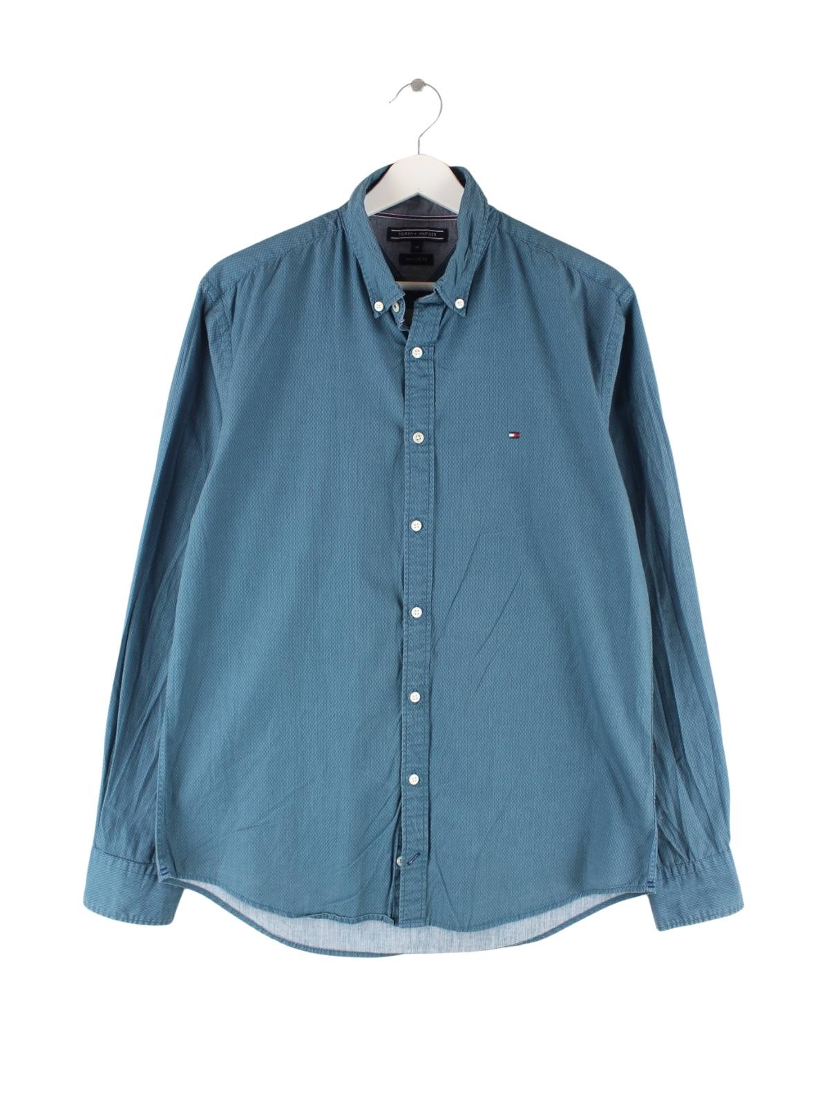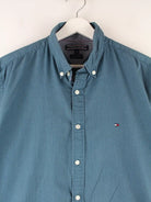 Grünes Freizeit Hemd vom Label Tommy Hilfiger in Größe M. Es ist aus Baumwolle angefertigt und in gutem Zustand auf Lager.