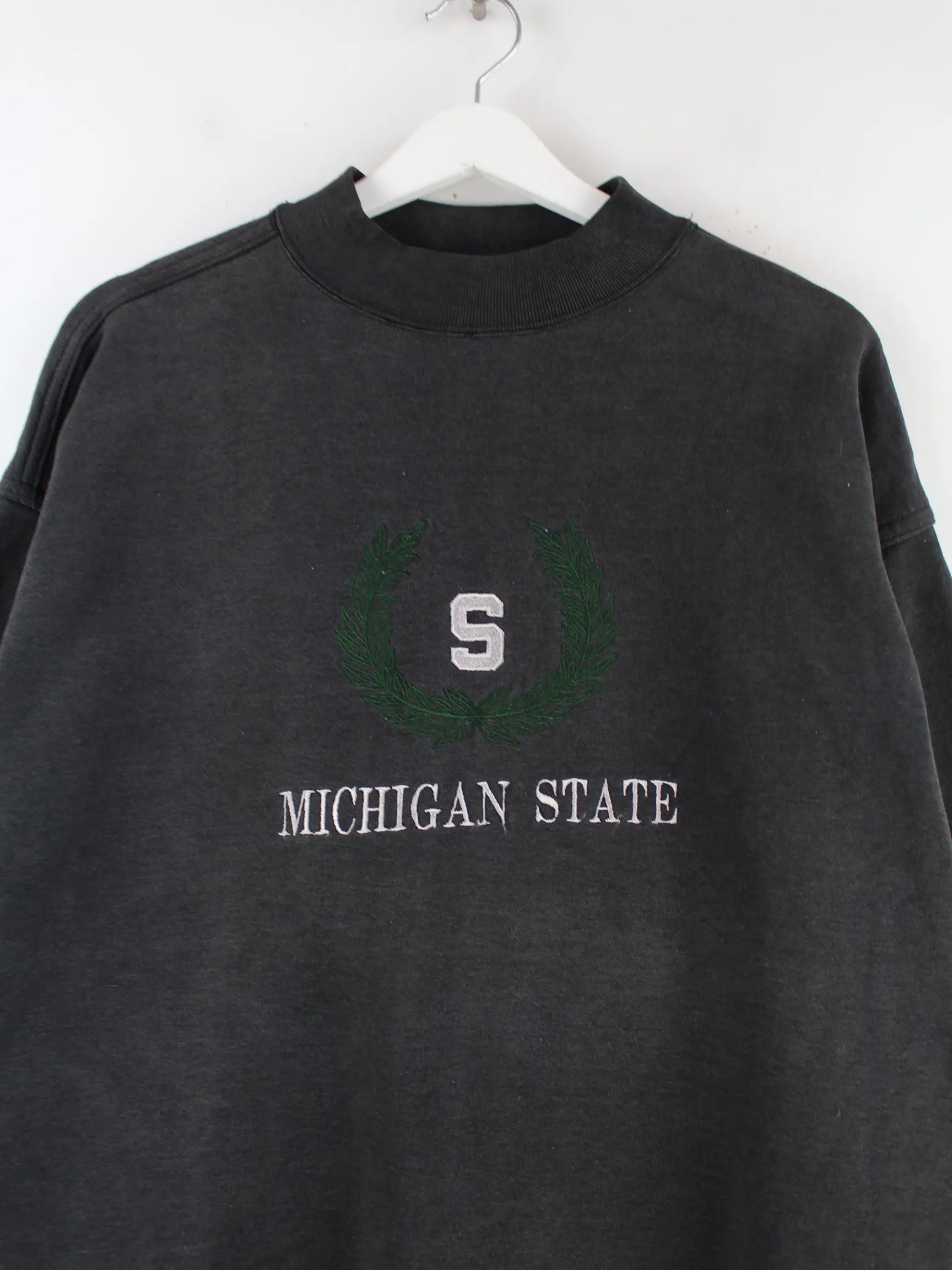 Vintage 00s Michigan State Embroidered Turtleneck Sweater Schwarz XL