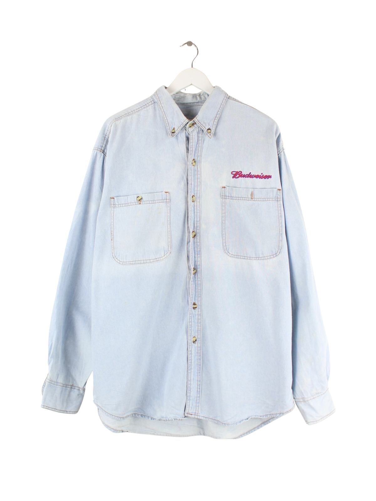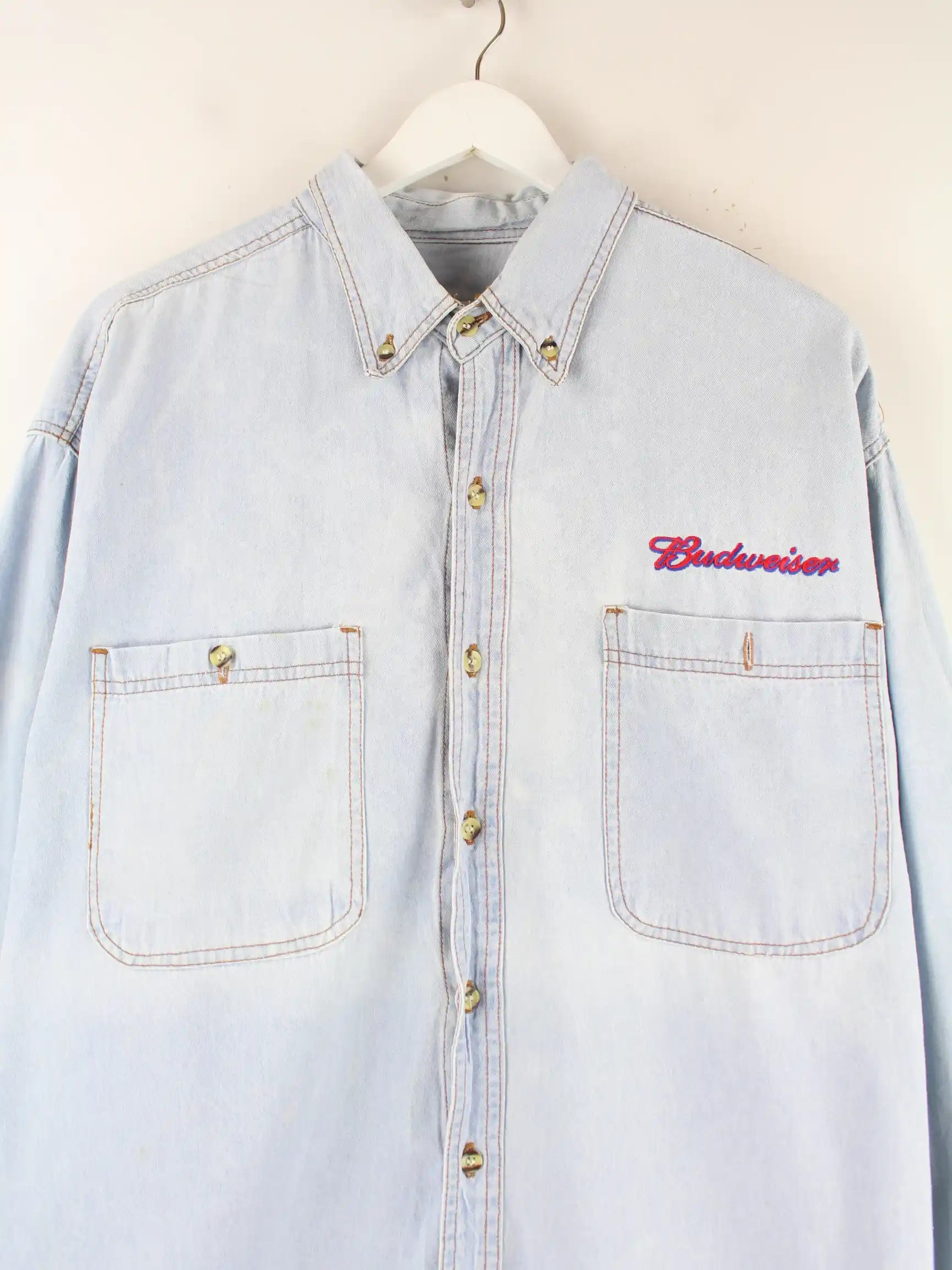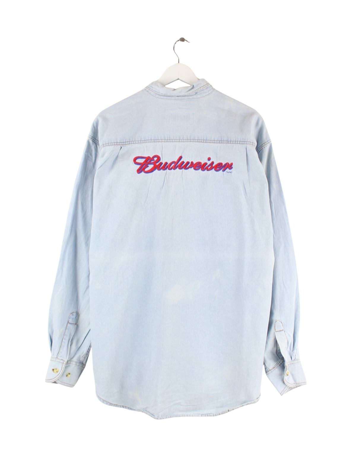 Vintage 90s Budweiser Embroidered Jeans Hemd Blau L