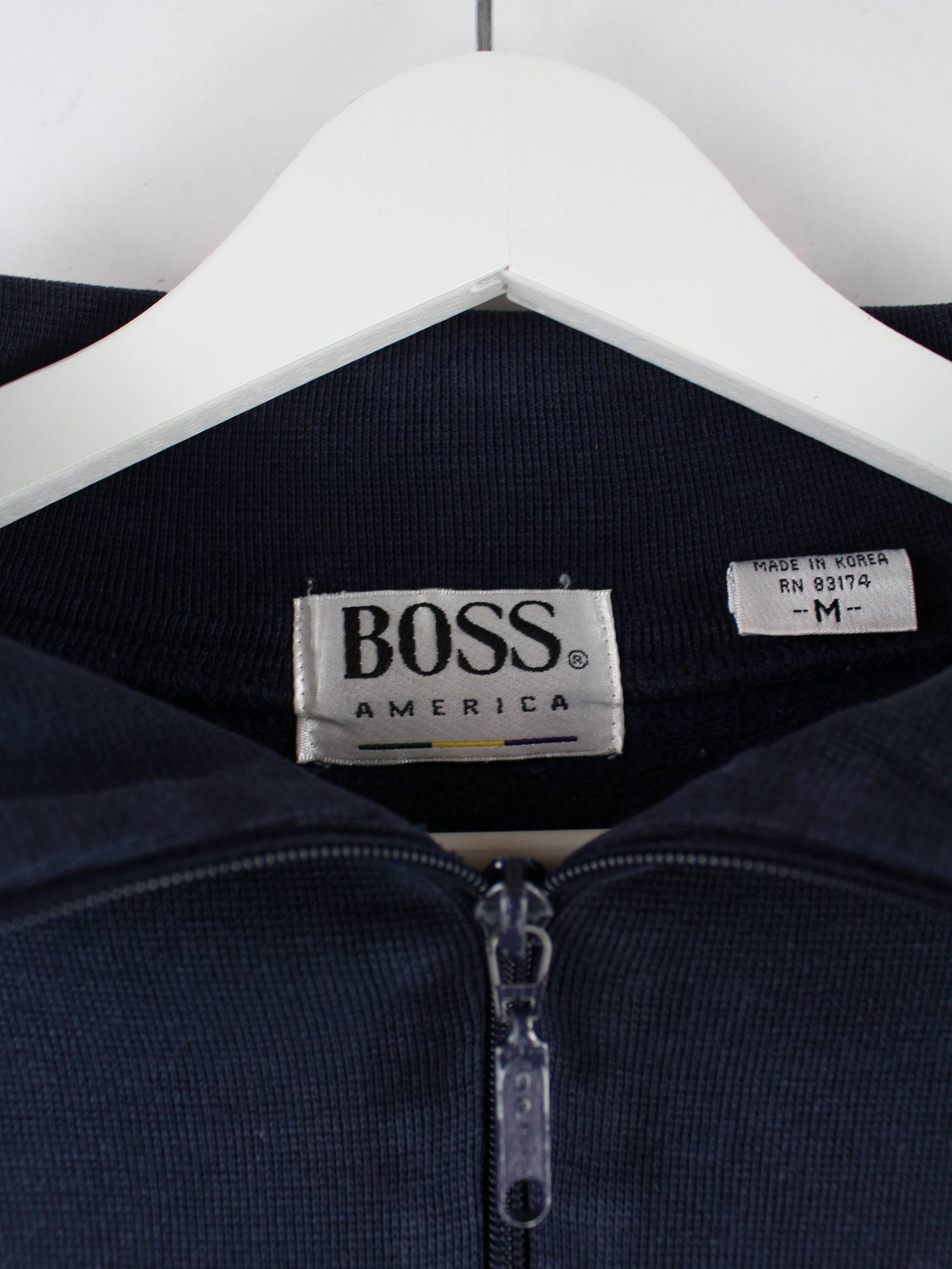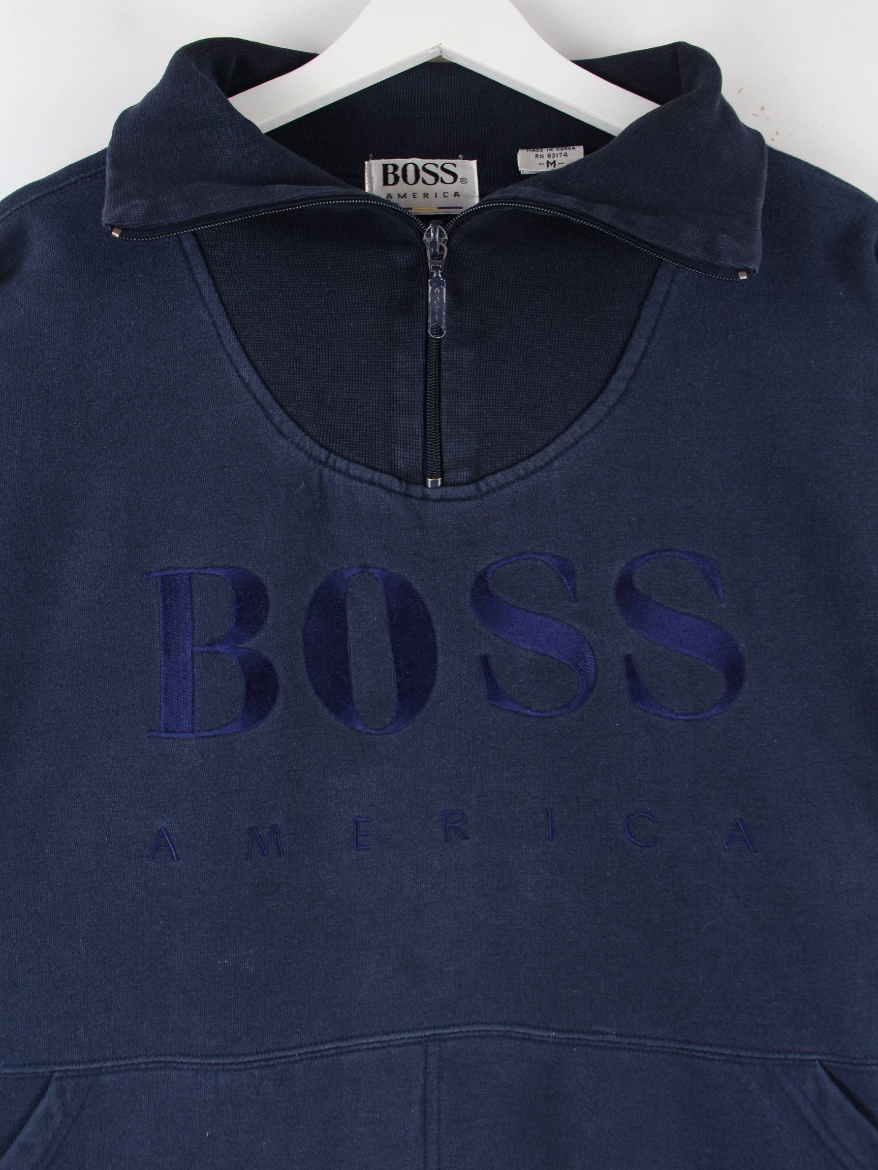 Vintage 90s Boss Embroidered Half Zip Sweater Blau M