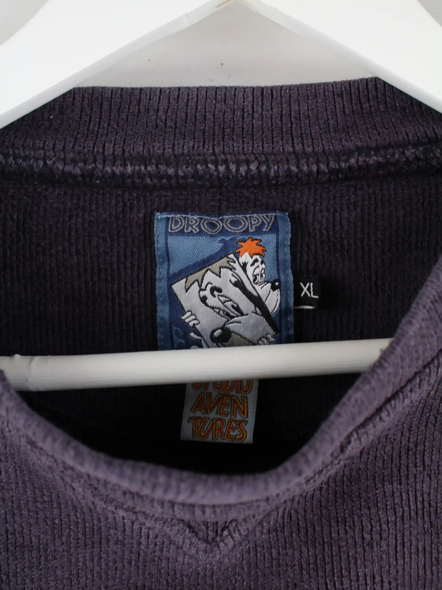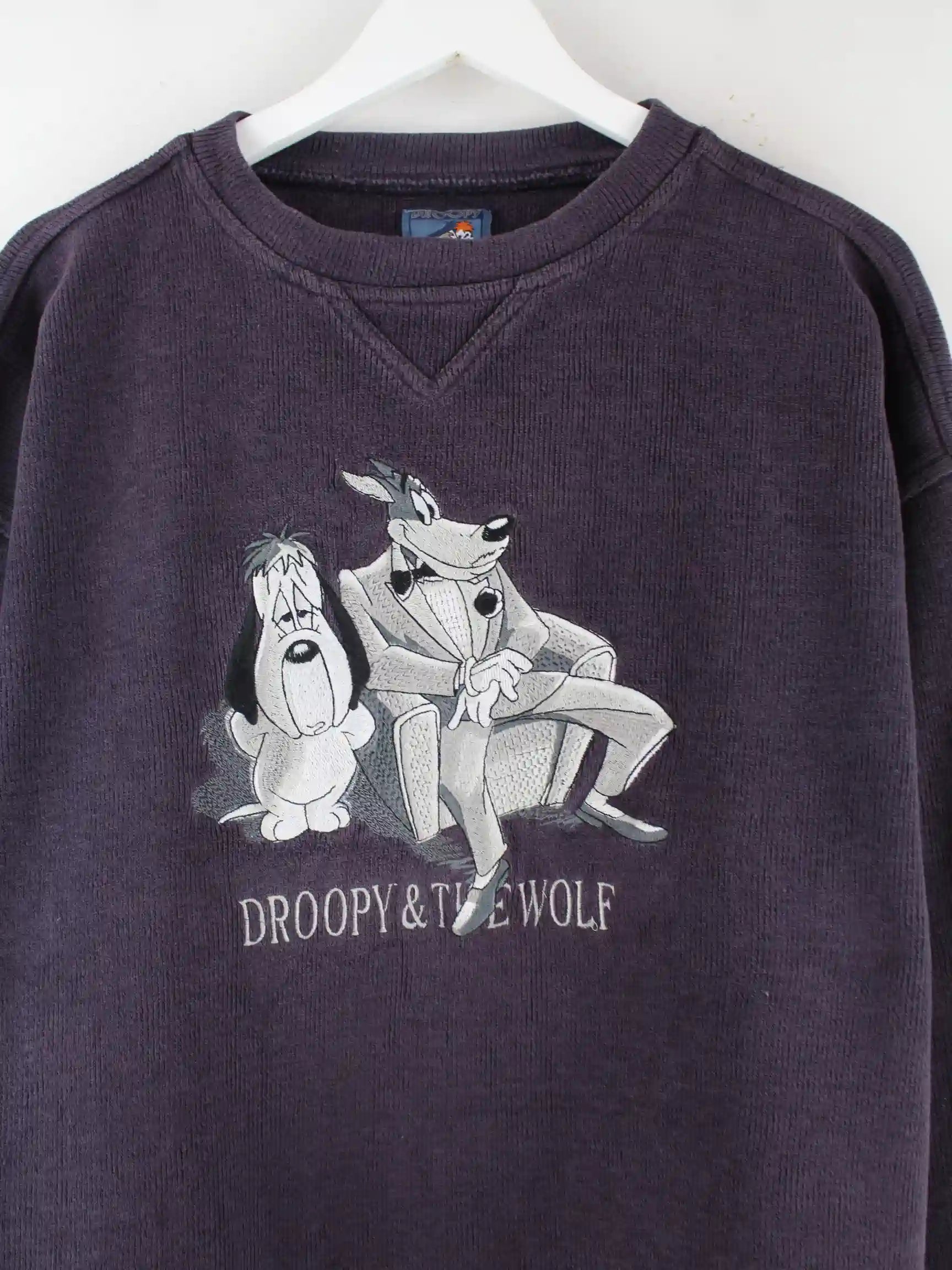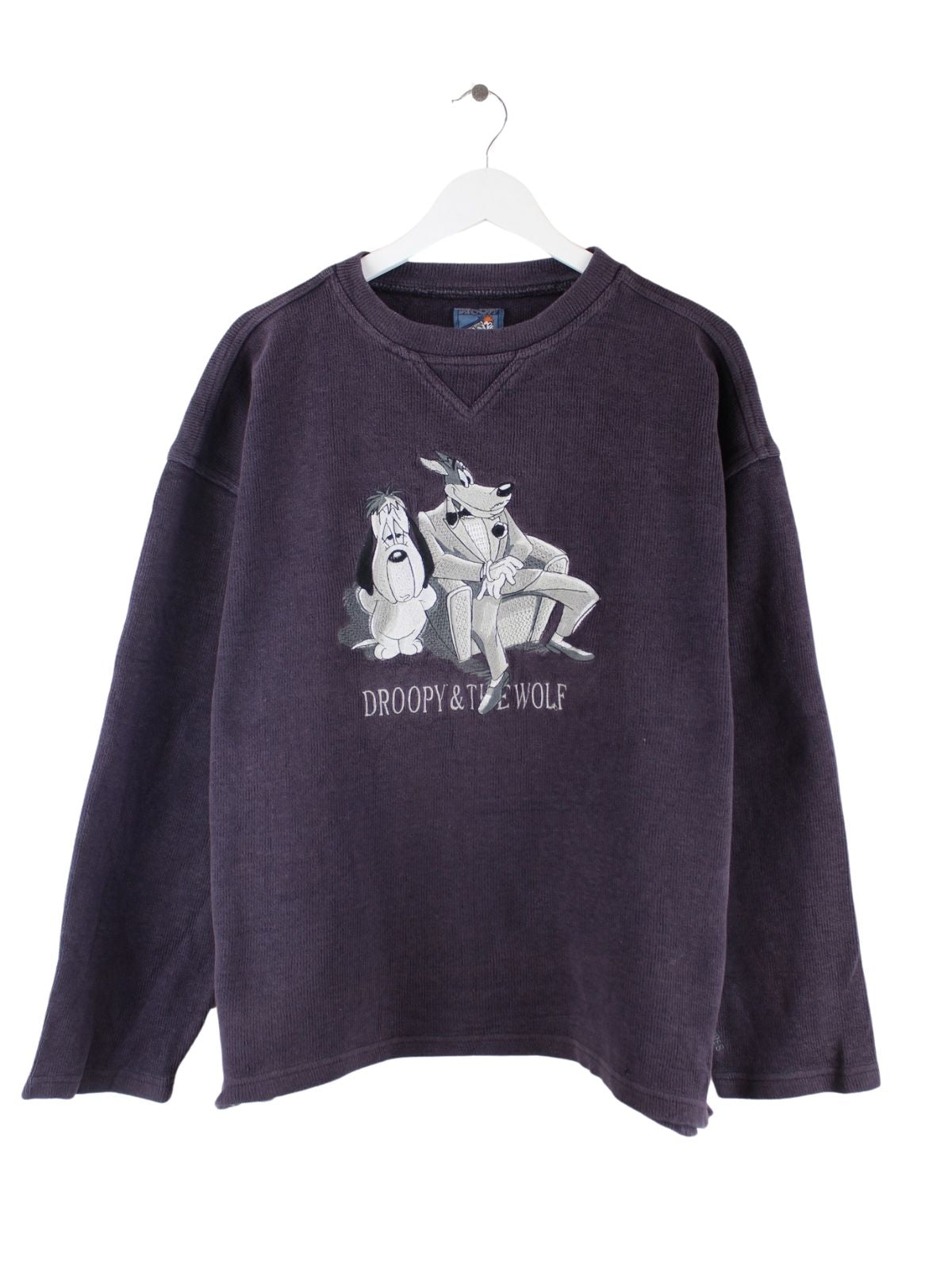 Vintage 90s Droopy & Wolf Embroidered Sweater Lila XL