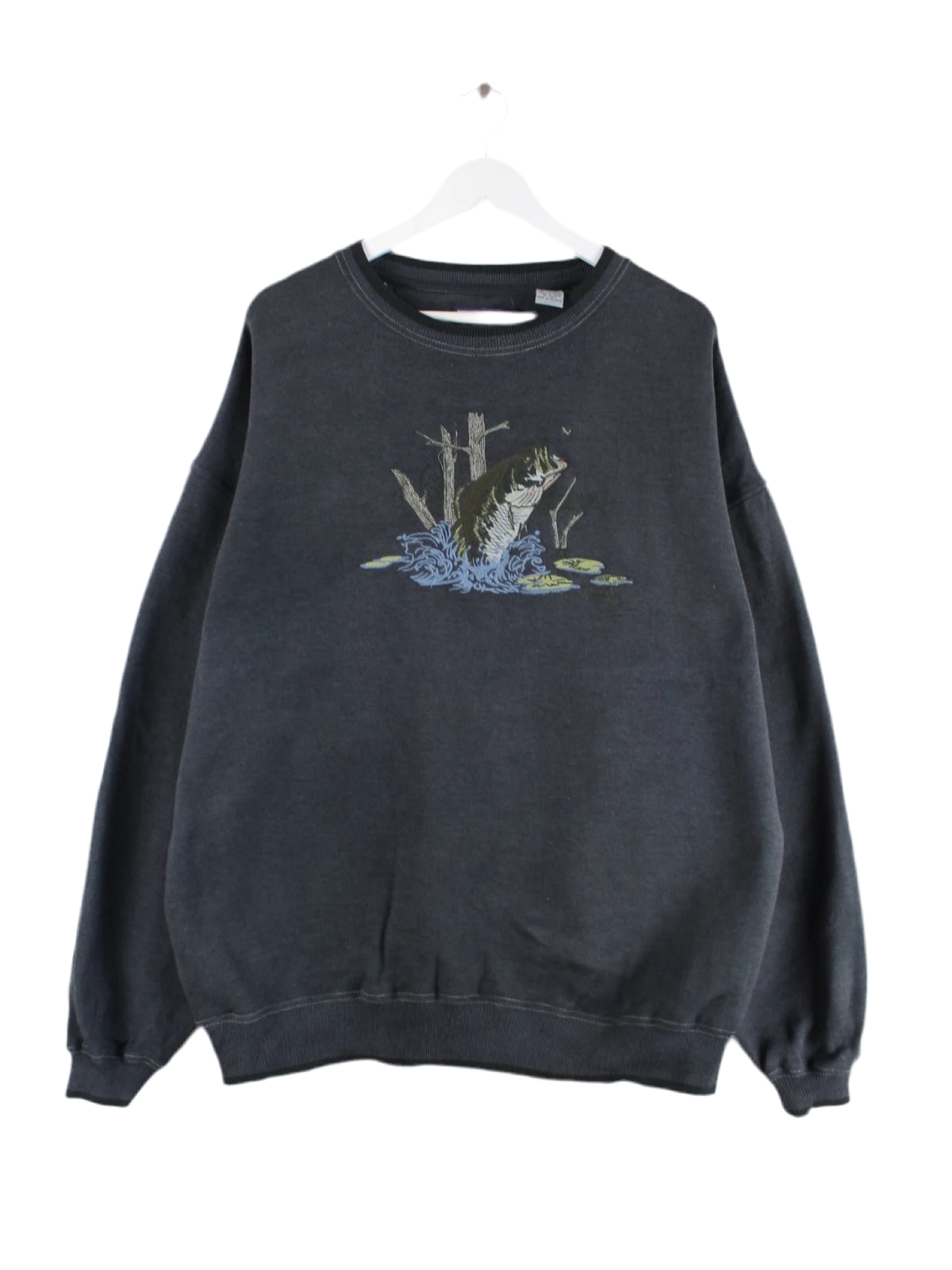 Vintage 90s Embroidered Fish Heavy Sweater Grau XXL