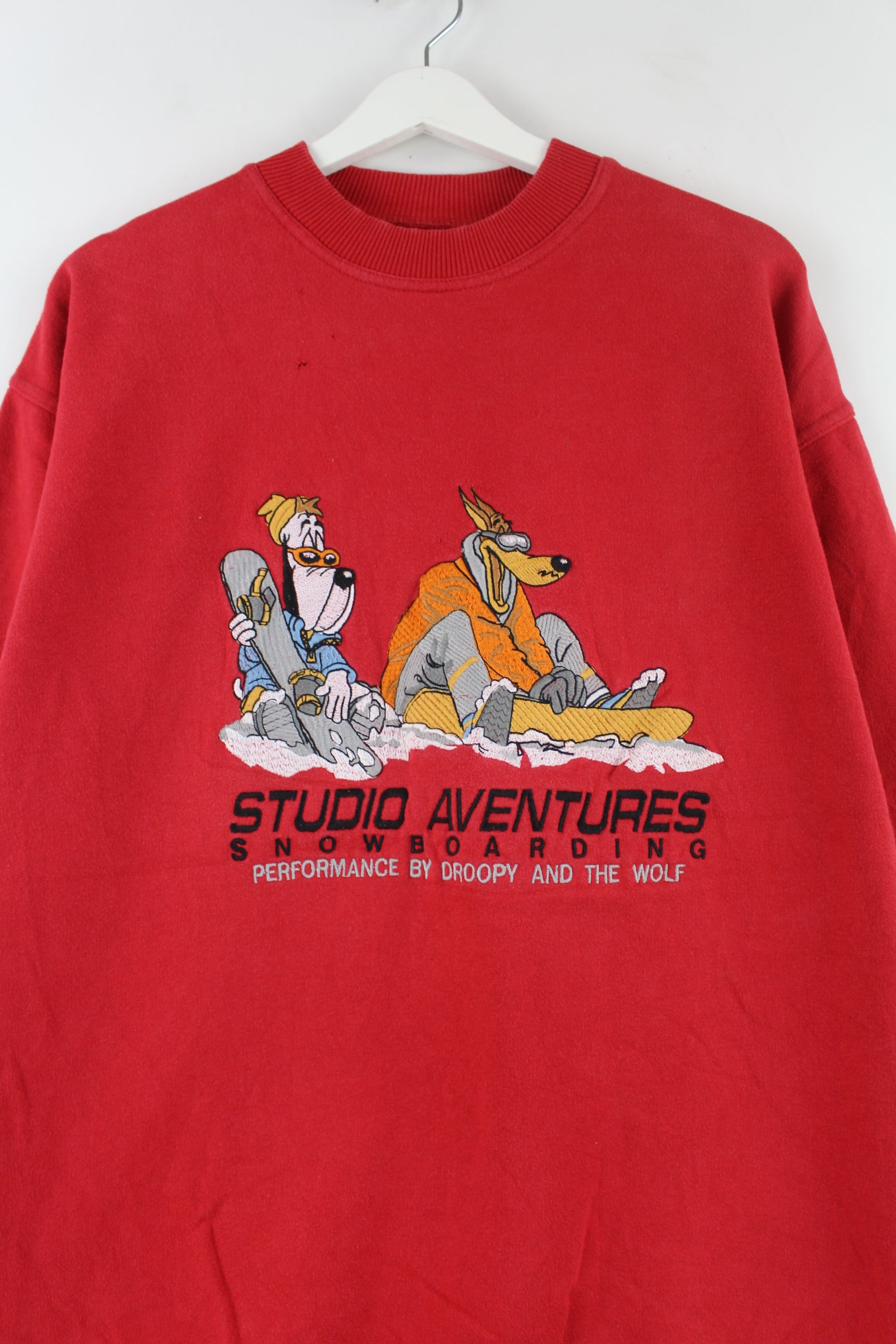 Vintage 90s Droopy Embroidered Sweater Rot L