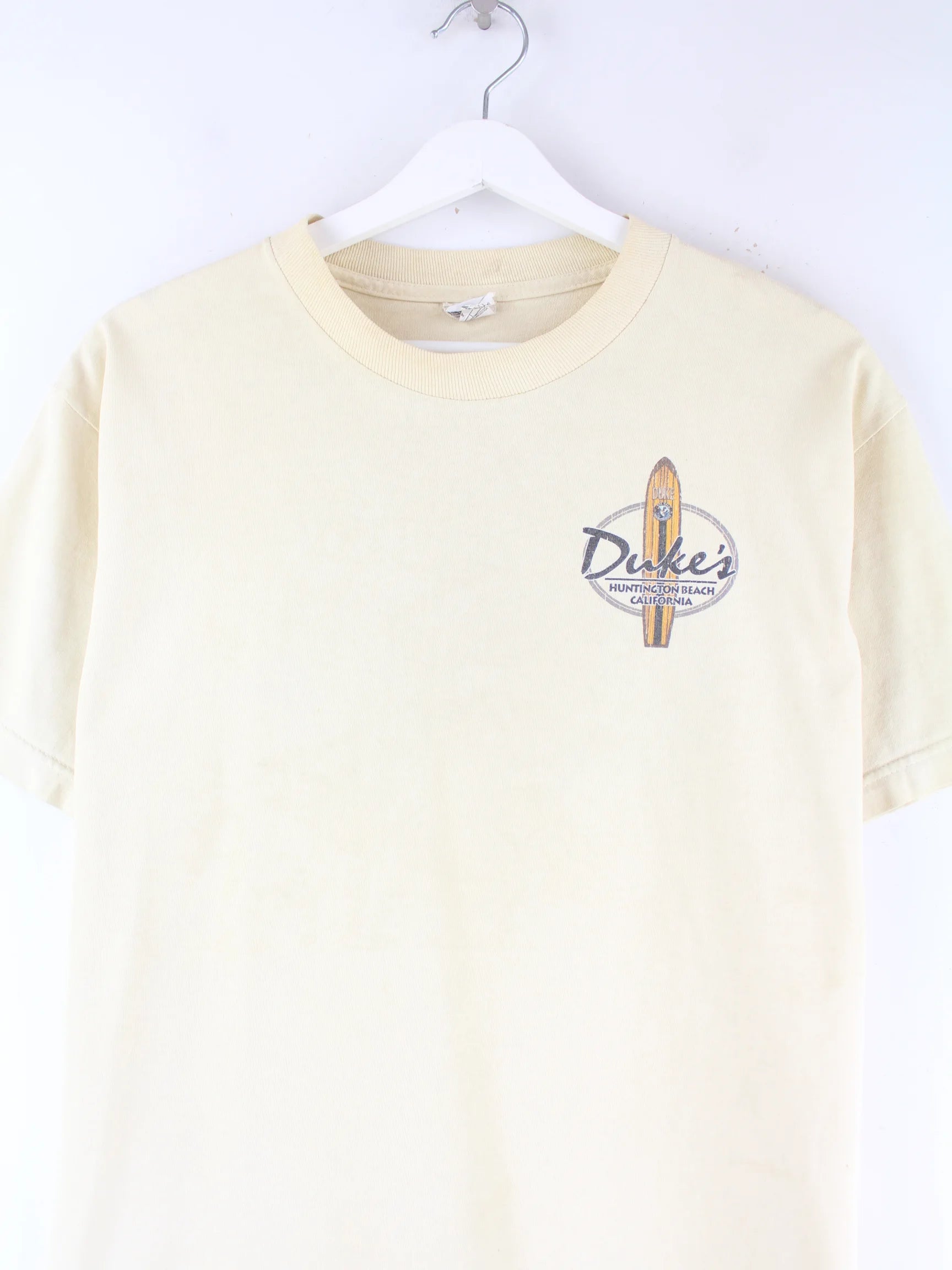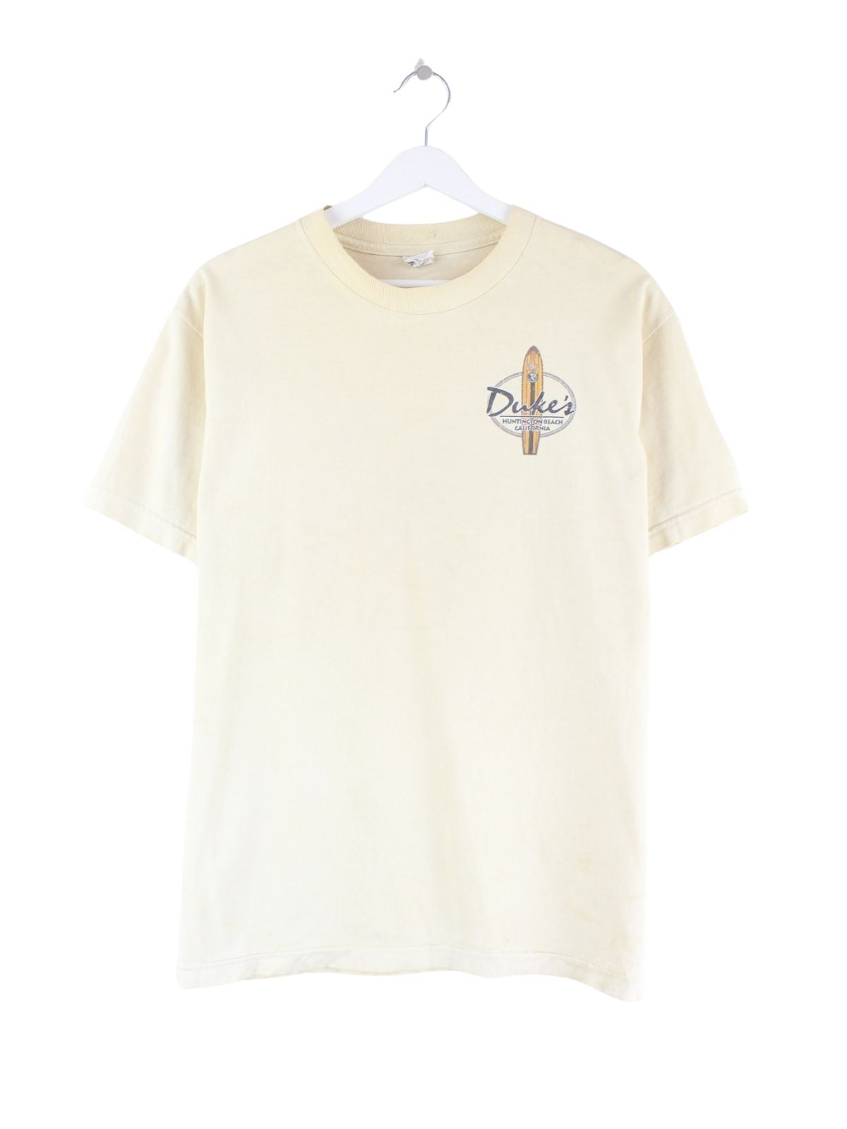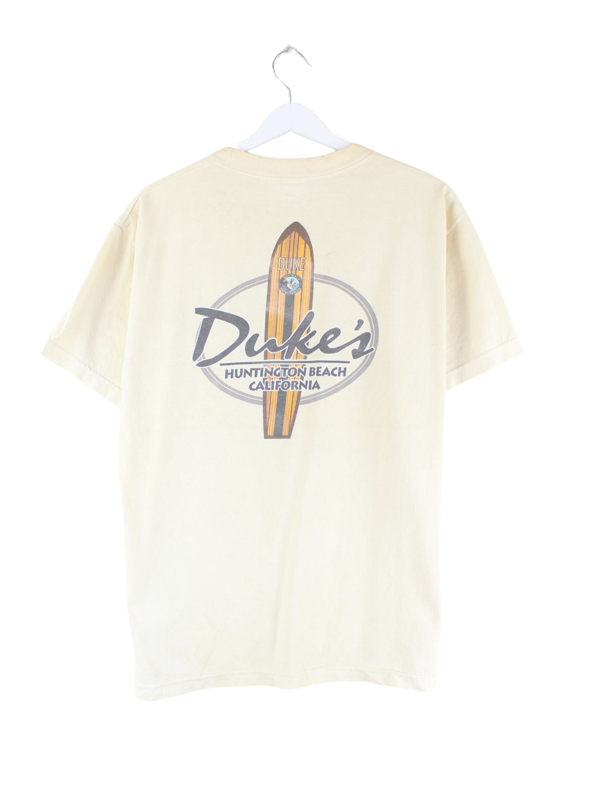 Vintage 00s California Surfing Duke Print T-Shirt Gelb M