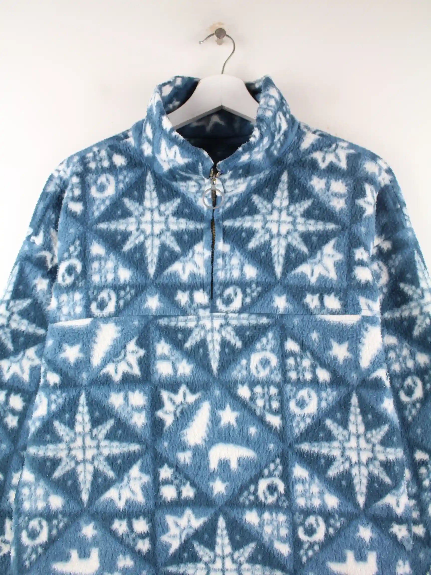 Vintage 00s Crazy Pattern Fleece Jacke Blau XXL