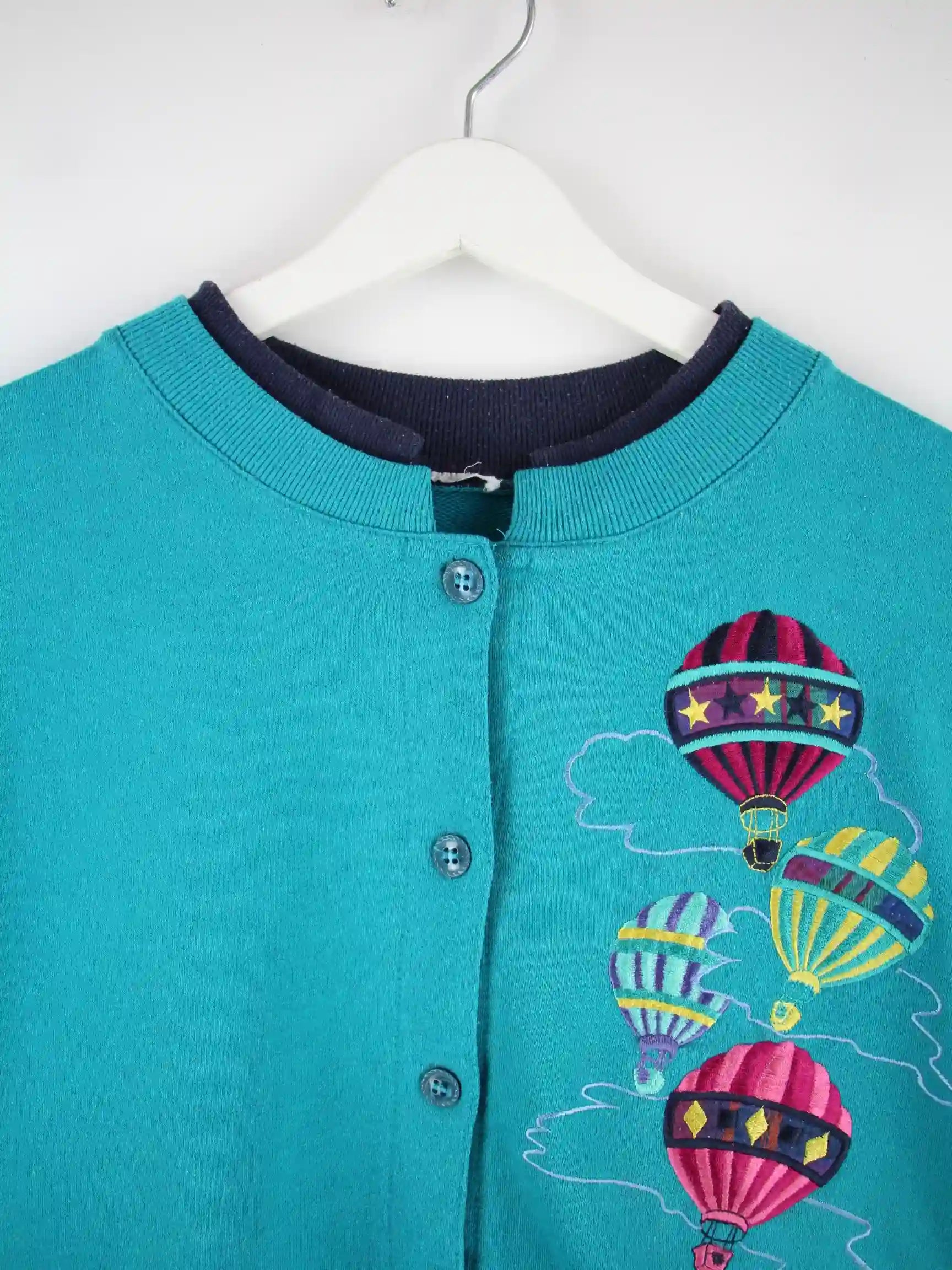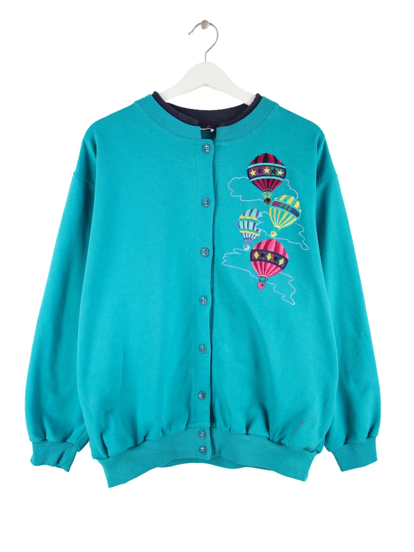Vintage 80s Balloon Sweatjacke Türkis M