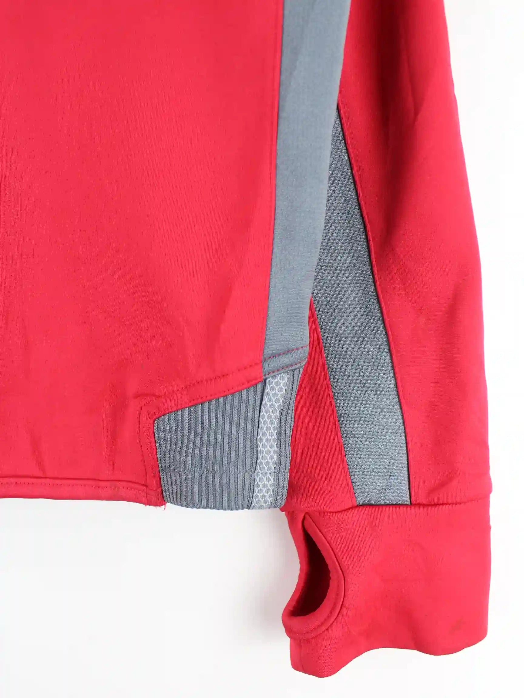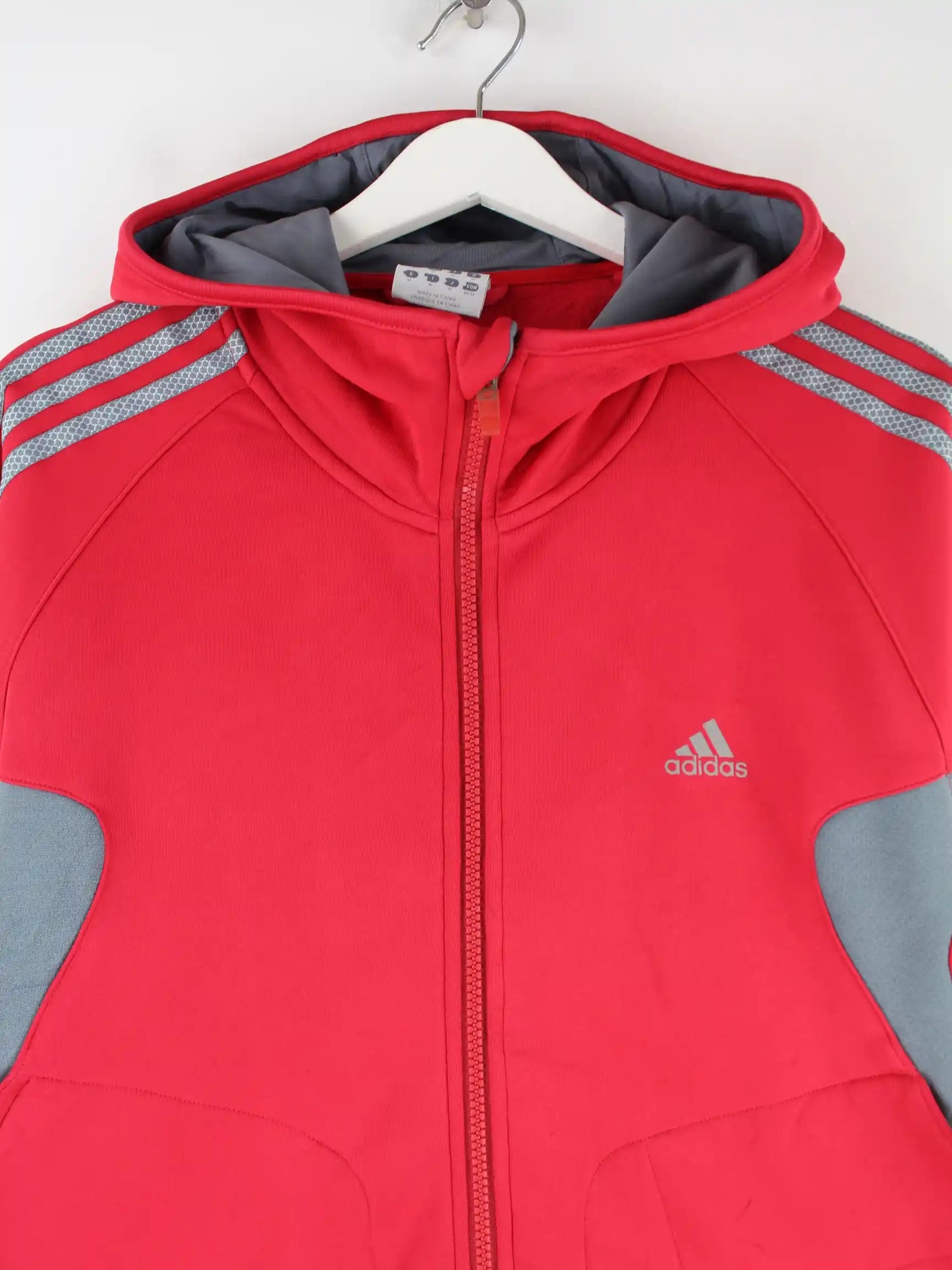 Trainingsjacke aus dem Hause Adidas in Größe M. Sie ist aus Synthetik angefertigt und in Rot im Bestand.