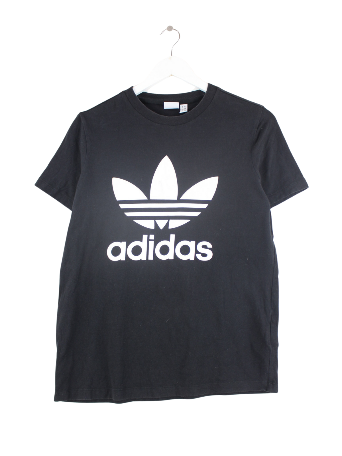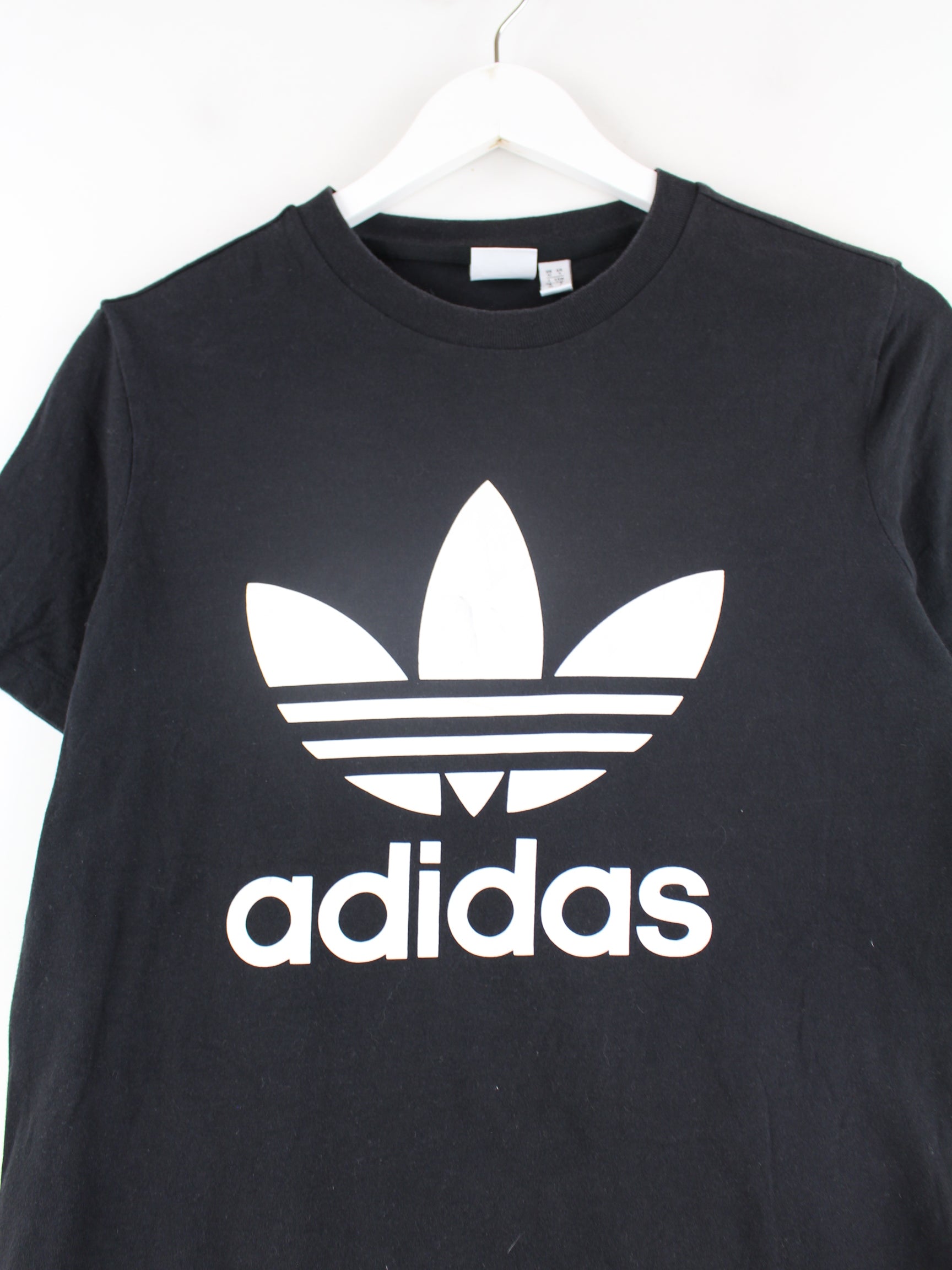T-Shirt aus dem Hause Adidas in Größe S. Es ist aus Baumwolle angefertigt und in Schwarz bei uns vorrätig.