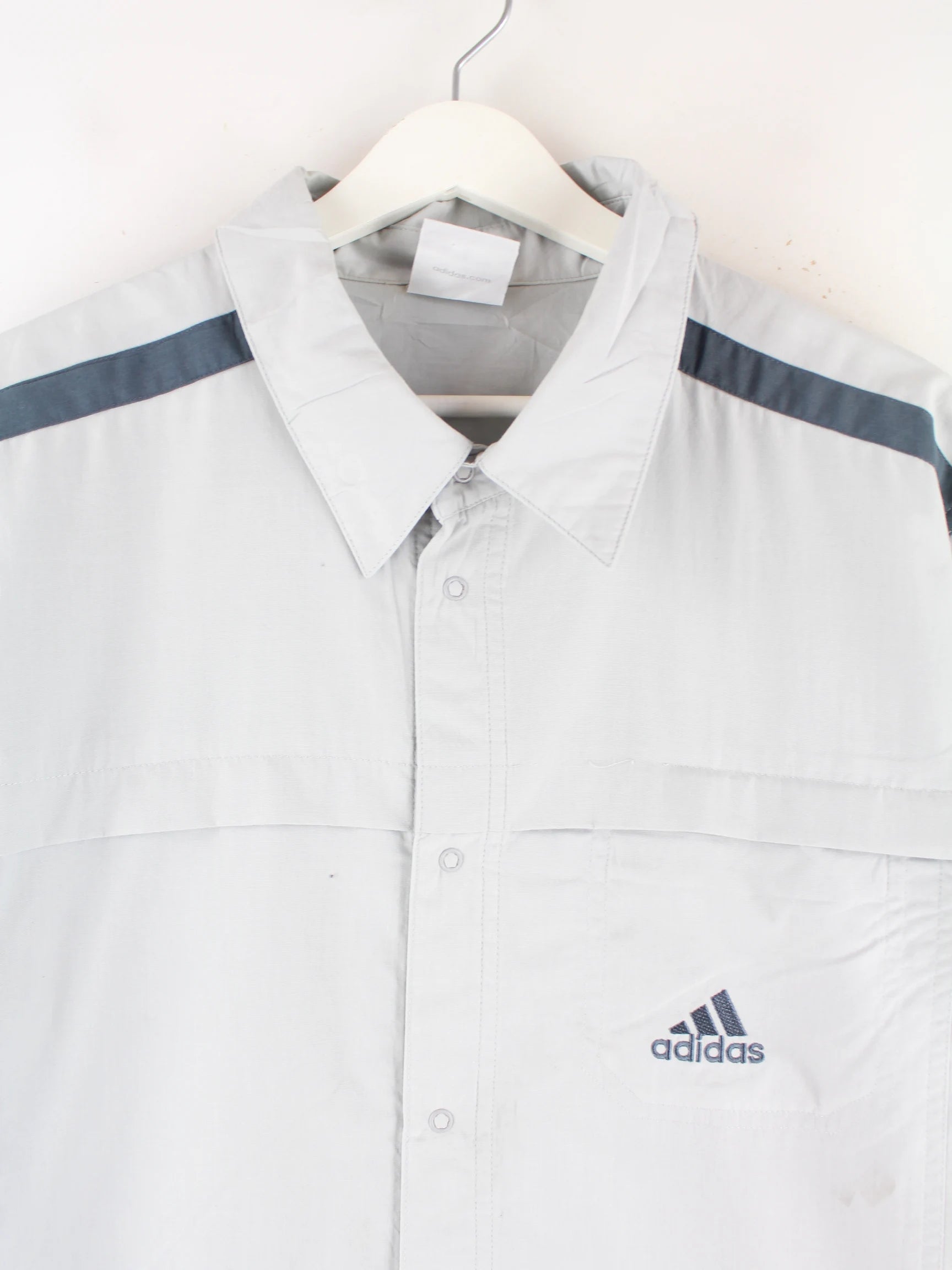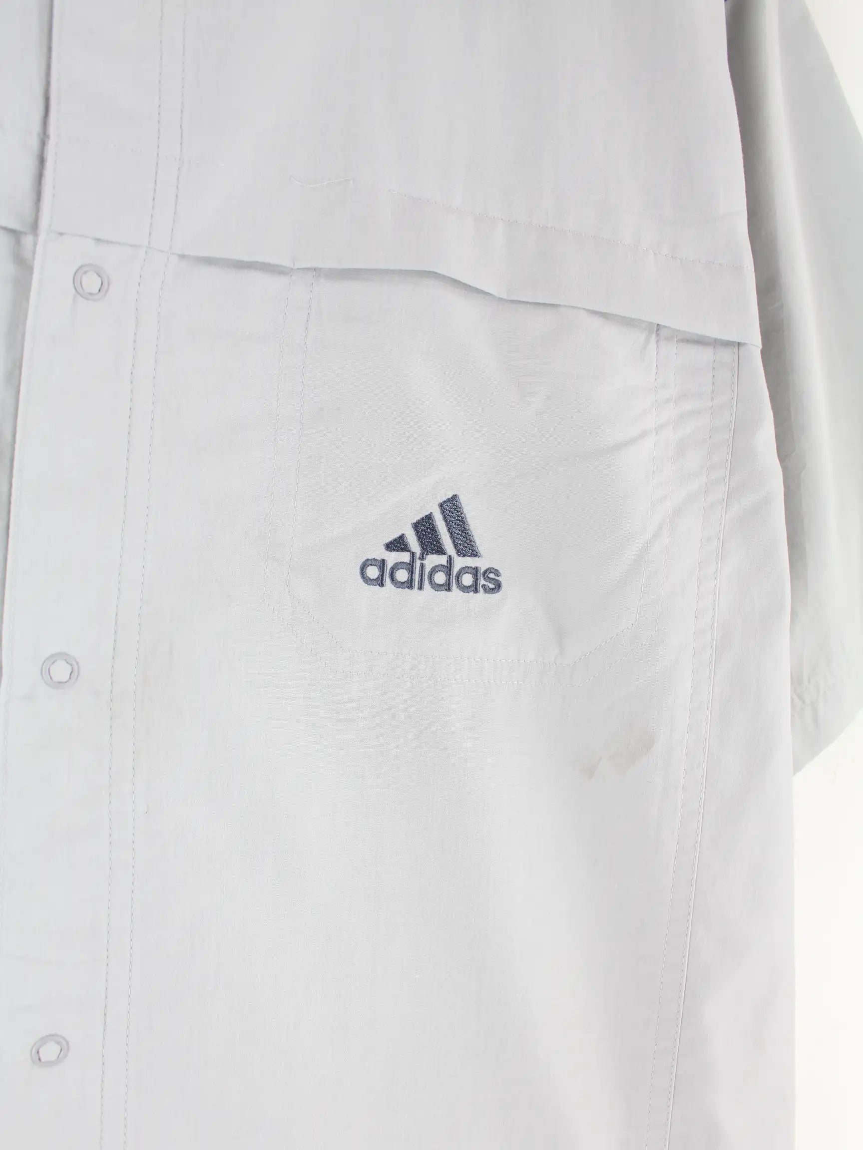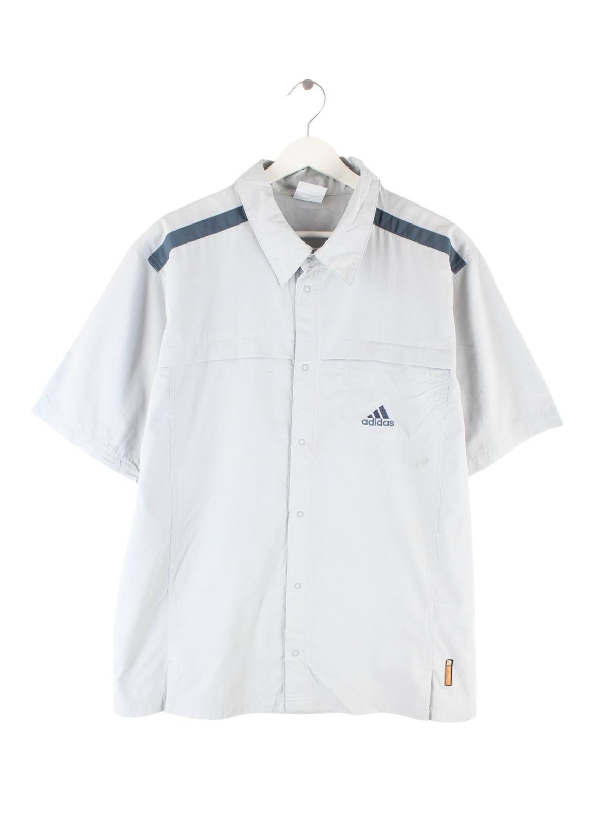 Freizeit Hemd der Marke Adidas in Größe L aus Anfang der 2000'er. Es ist aus Synthetik angefertigt und in Grau zu haben.