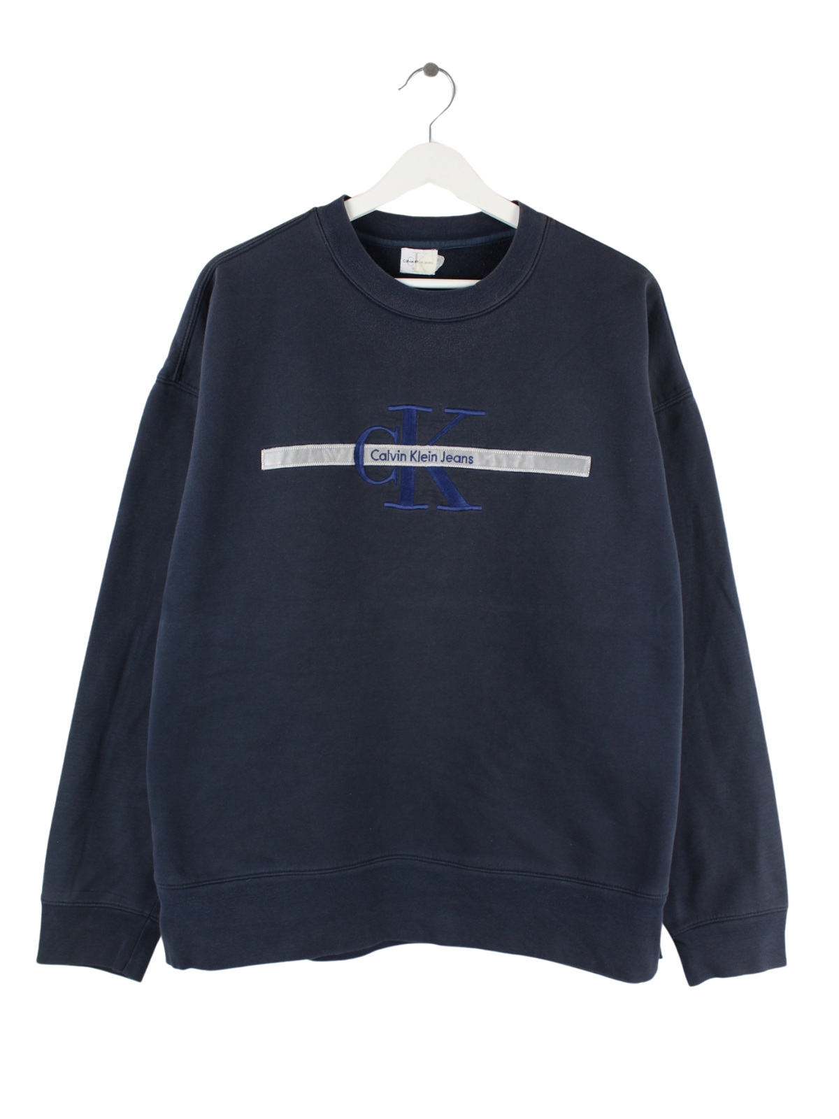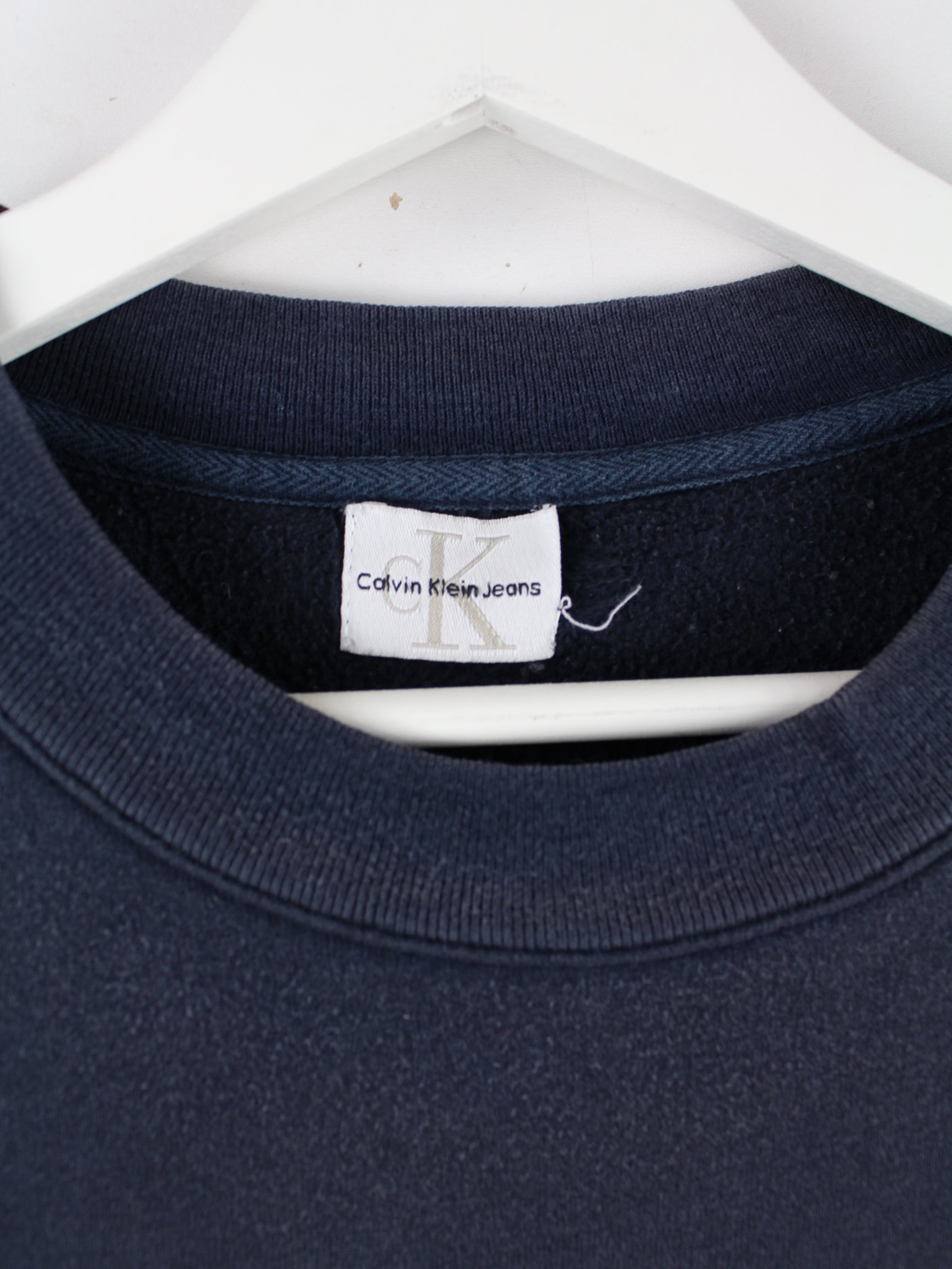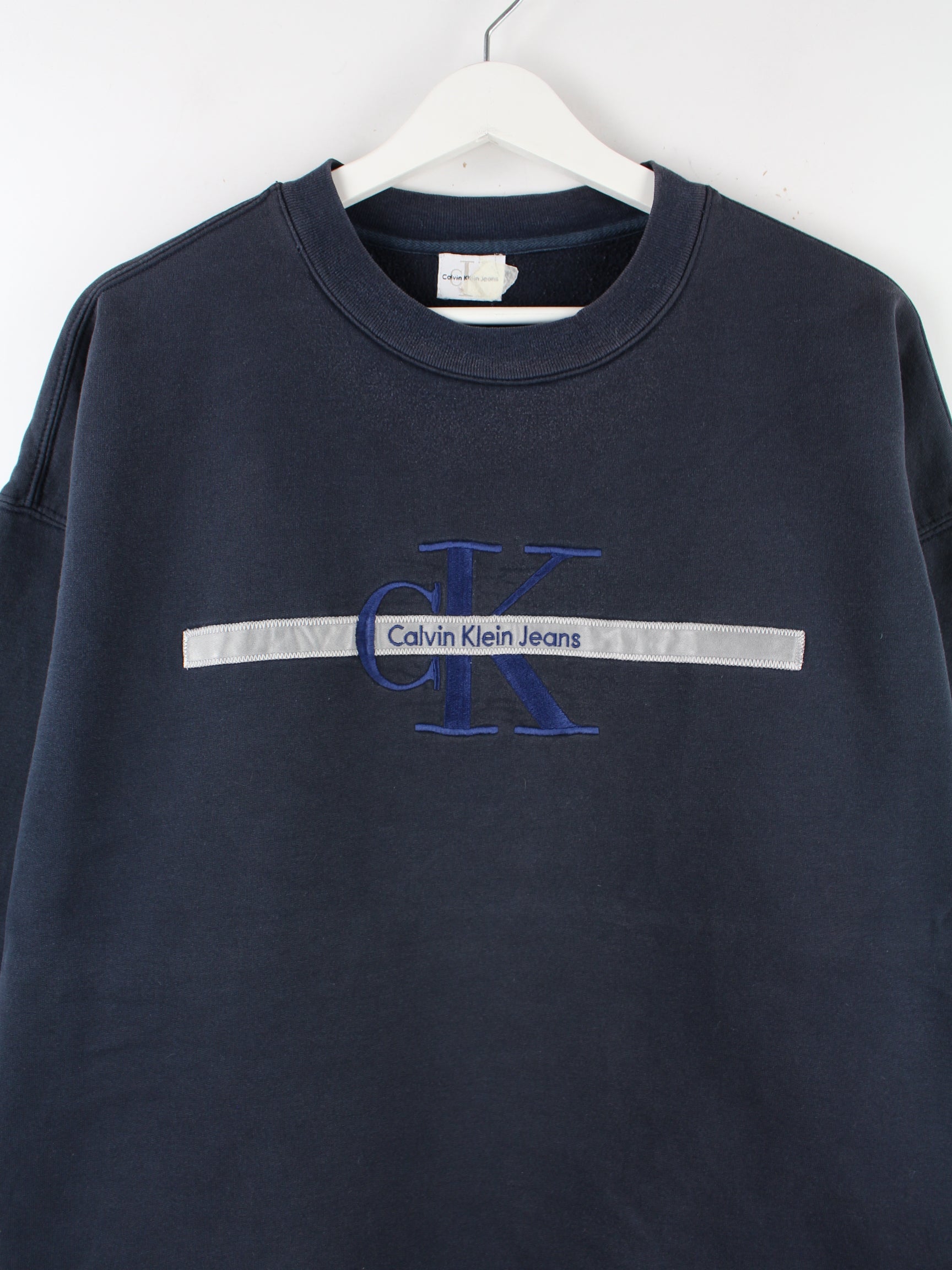 Sweater vom Label Calvin Klein mit Stickereien in Größe XL aus den 90'ern. Er ist aus einer Baumwollmischung gefertigt und in Schwarz im Angebot.
