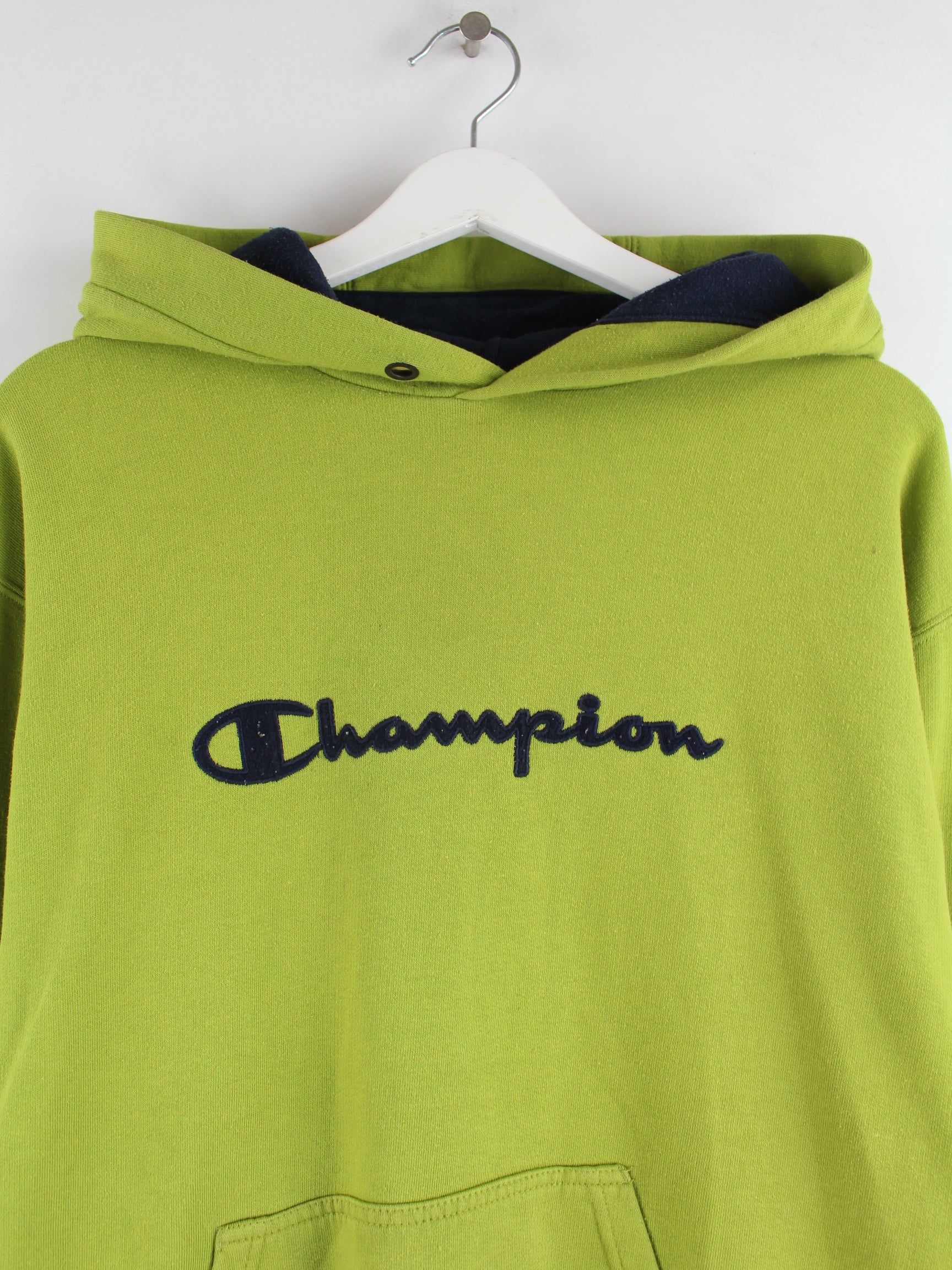 Hoodie vom Brand Champion in Größe XL. Er ist aus einer Baumwollmischung produziert und in Grün lieferbar.