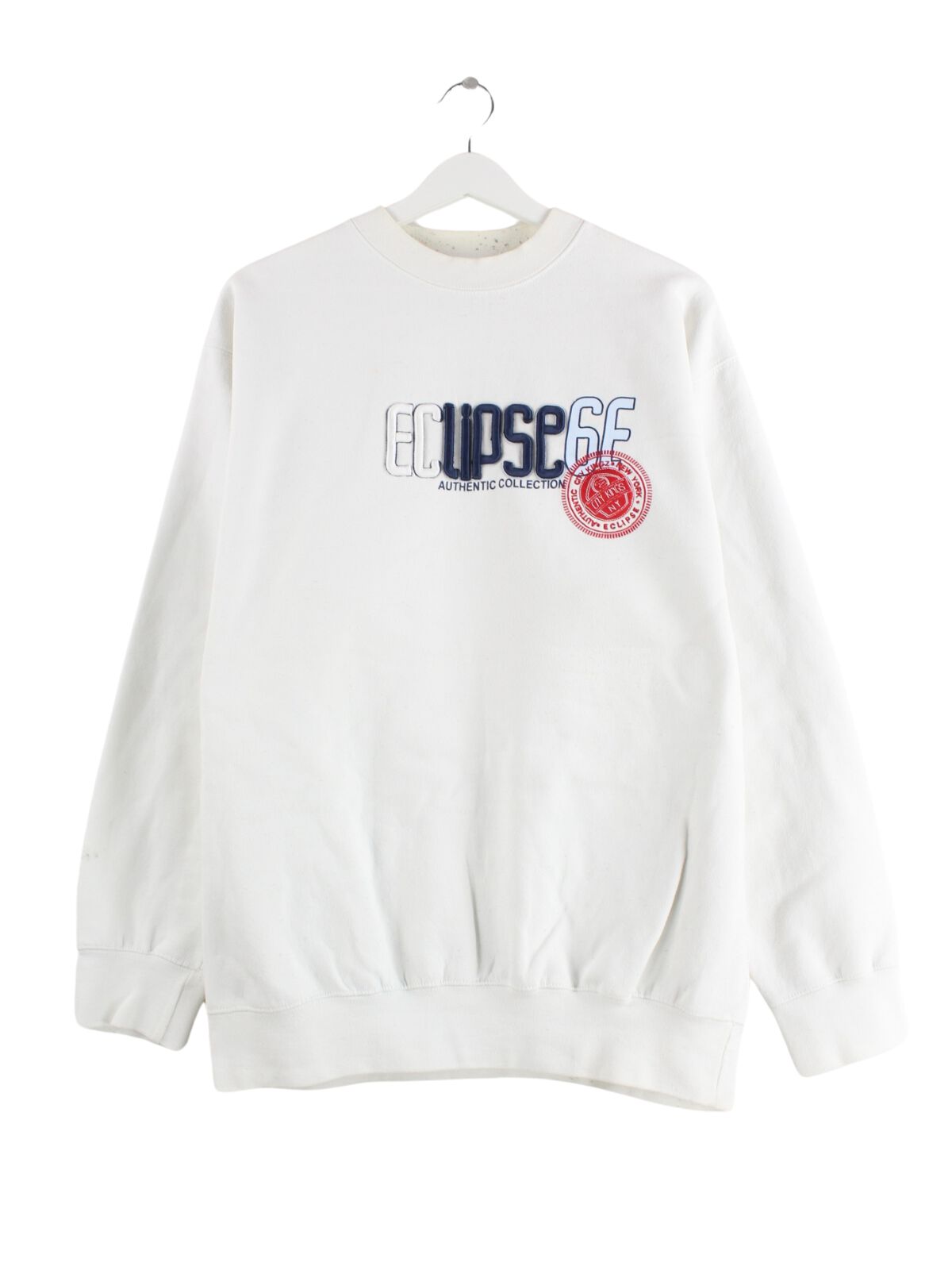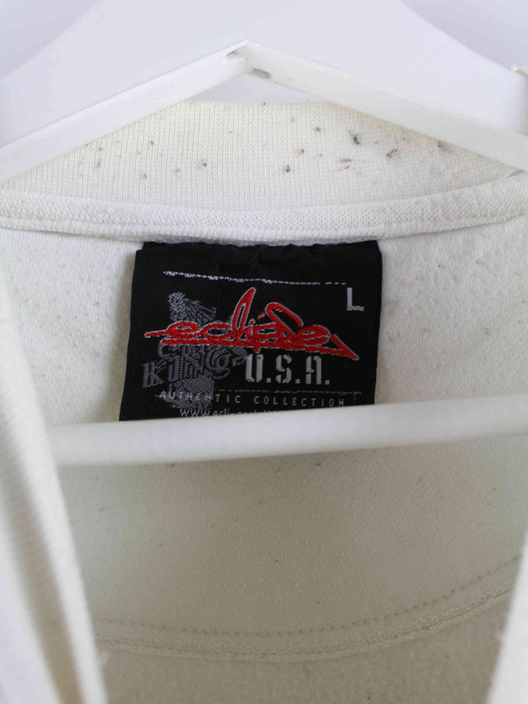 Sweater aus dem Hause Eclipse mit Stick in Größe L aus Anfang der 2000'er. Er ist aus einer Baumwollmischung hergestellt und in Weiß im Bestand.