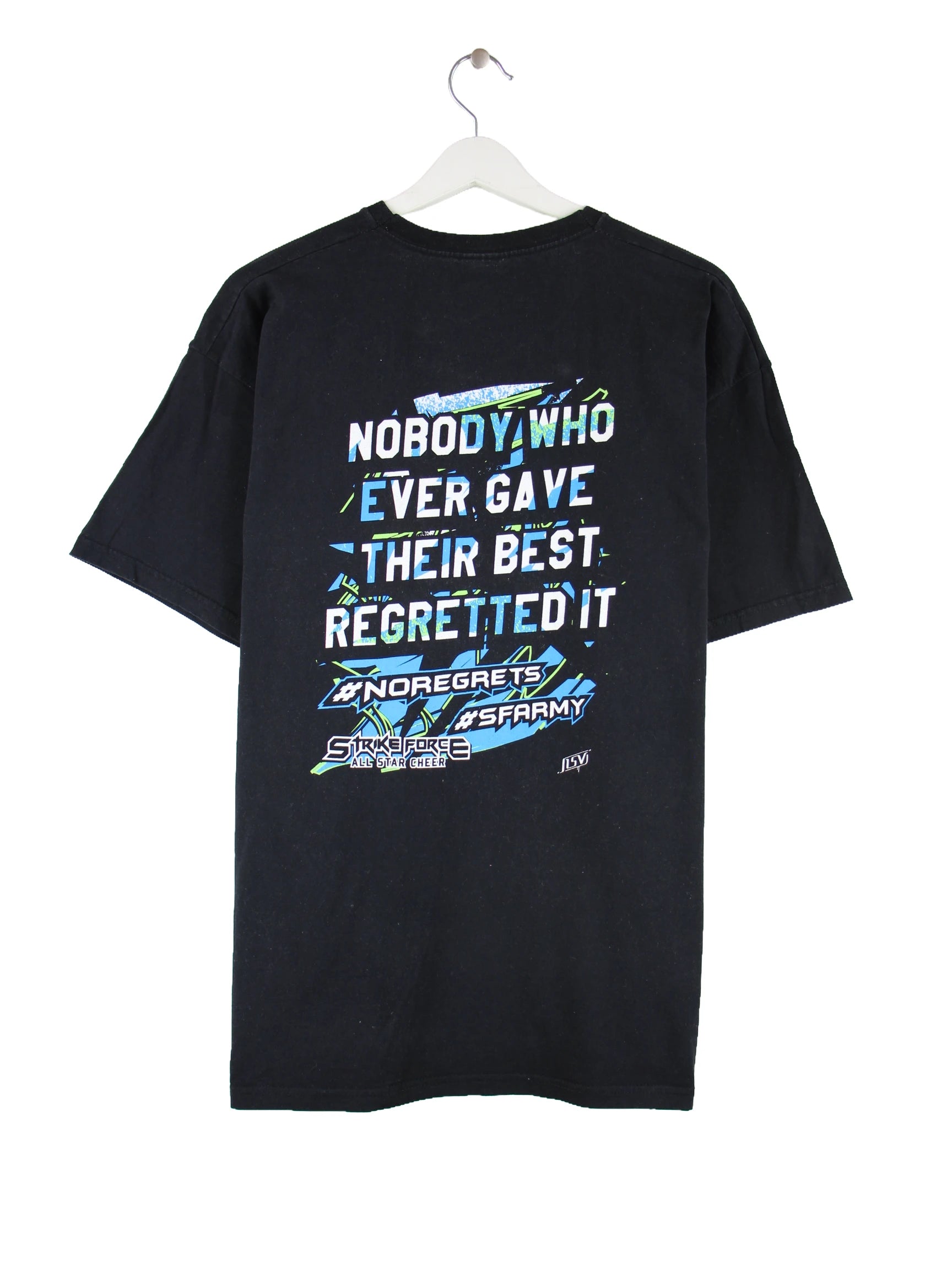 Schwarzes T-Shirt vom Brand Fruit of the Loom in Größe XL. Es ist aus Baumwolle hergestellt und in gutem Zustand auf Lager. Mit schickem Force Print.