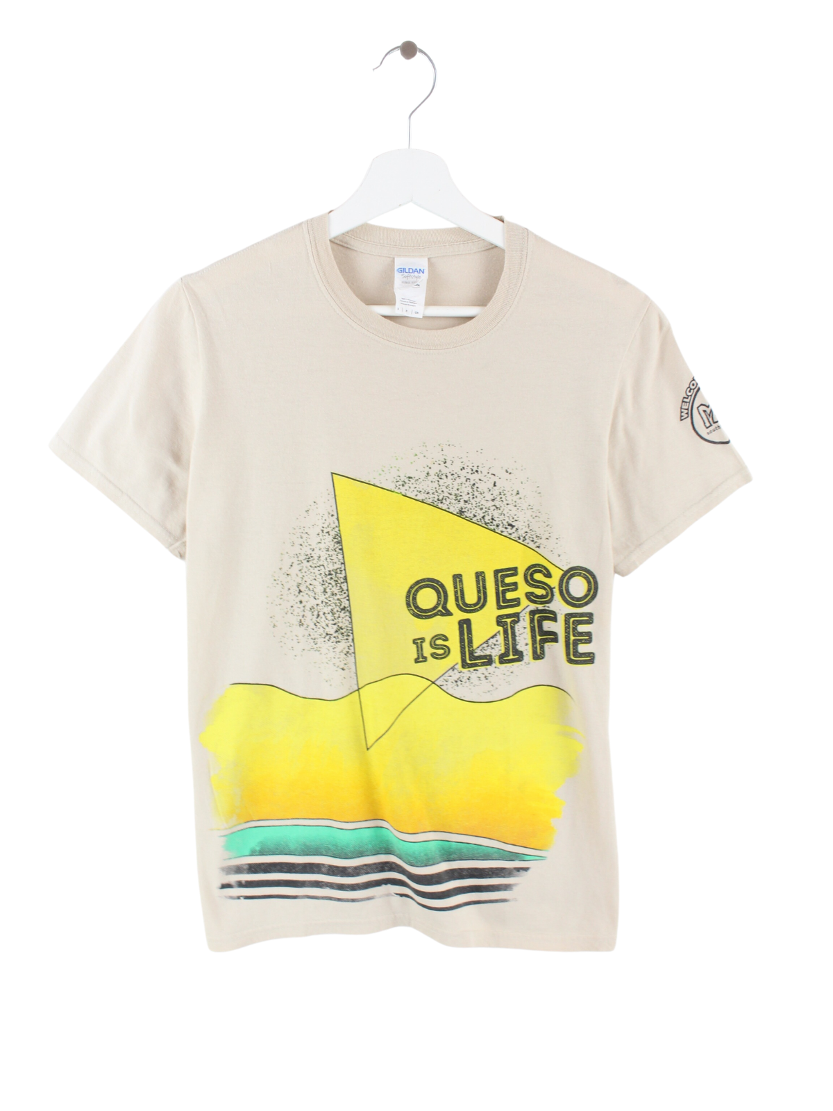 Beiges Print T-Shirt der Marke Gildan.