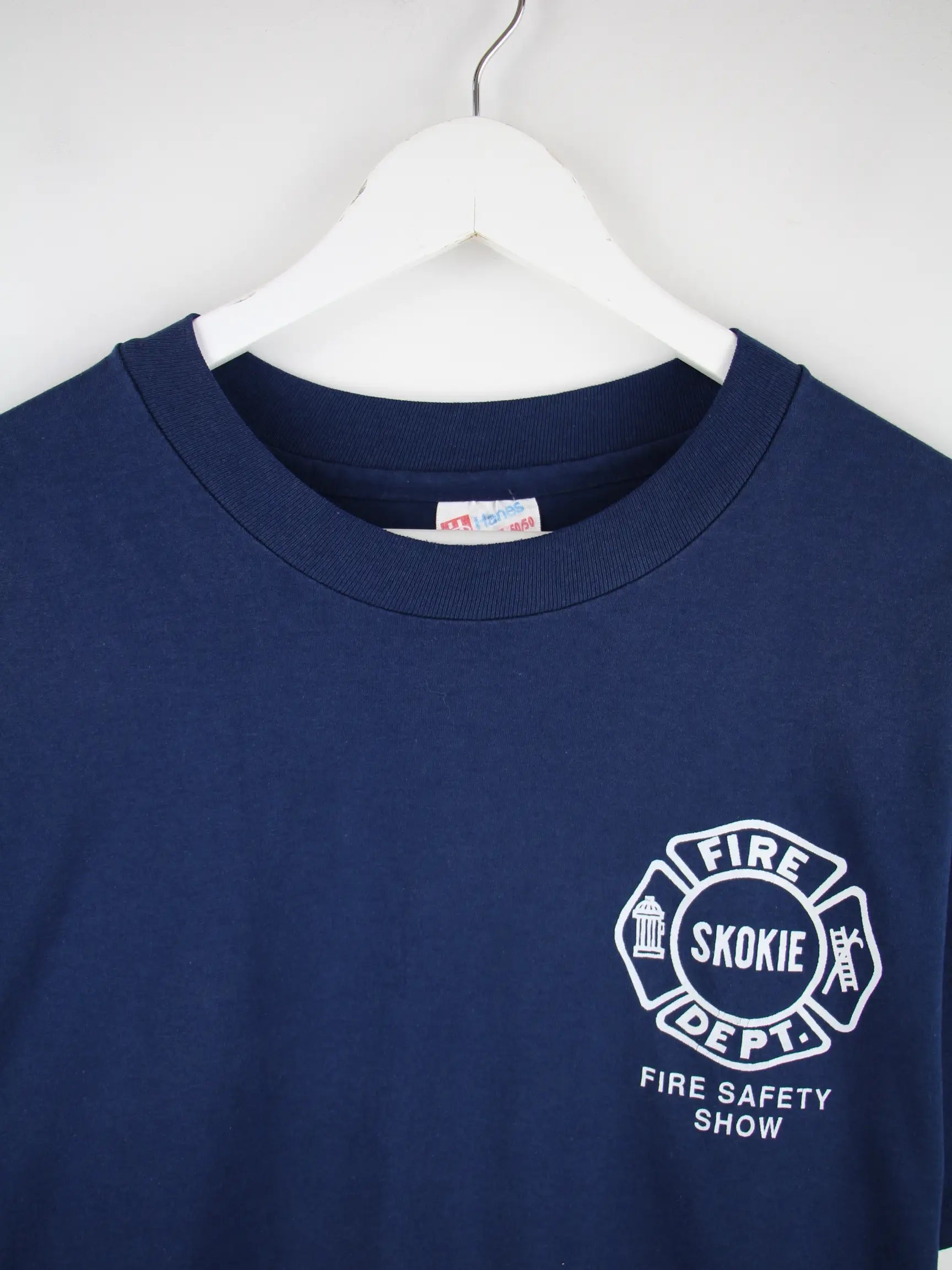 Hanes 00s Fire Department Print Single Stitch T-Shirt Blau XL