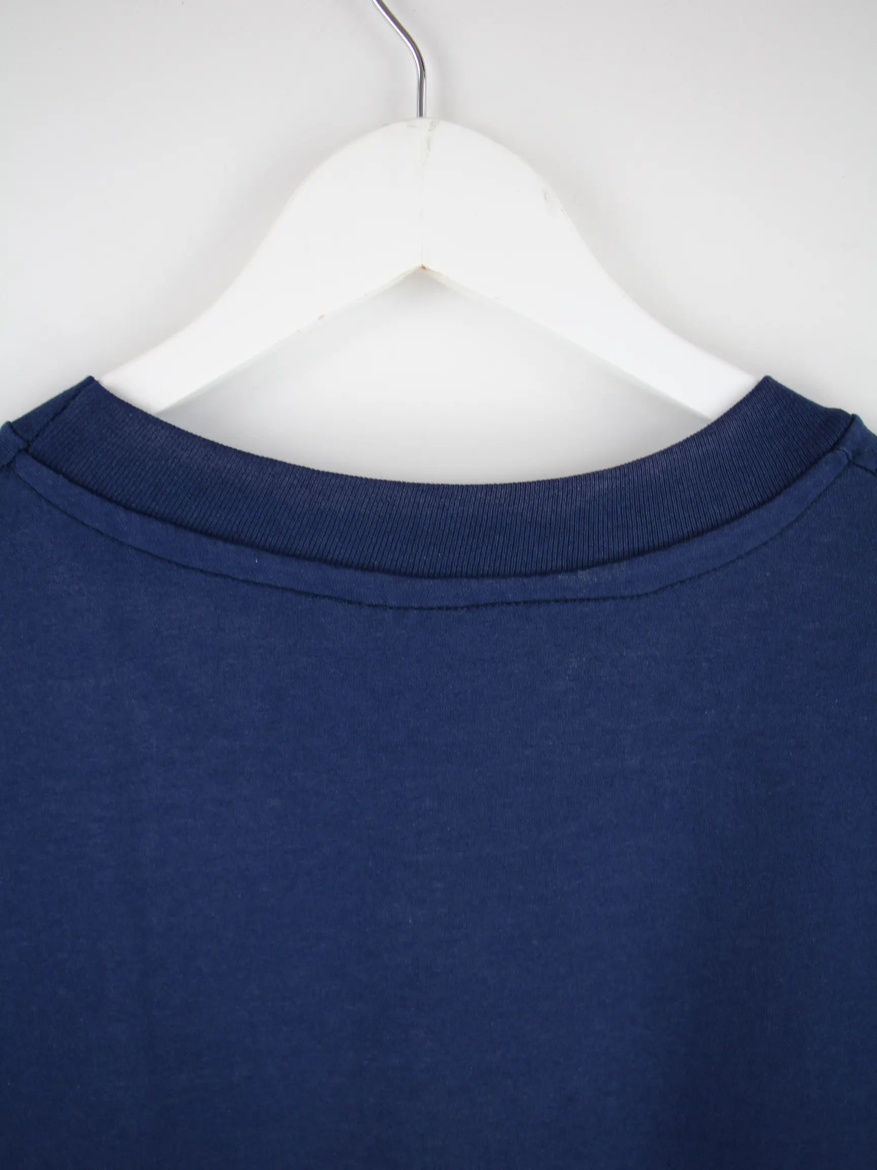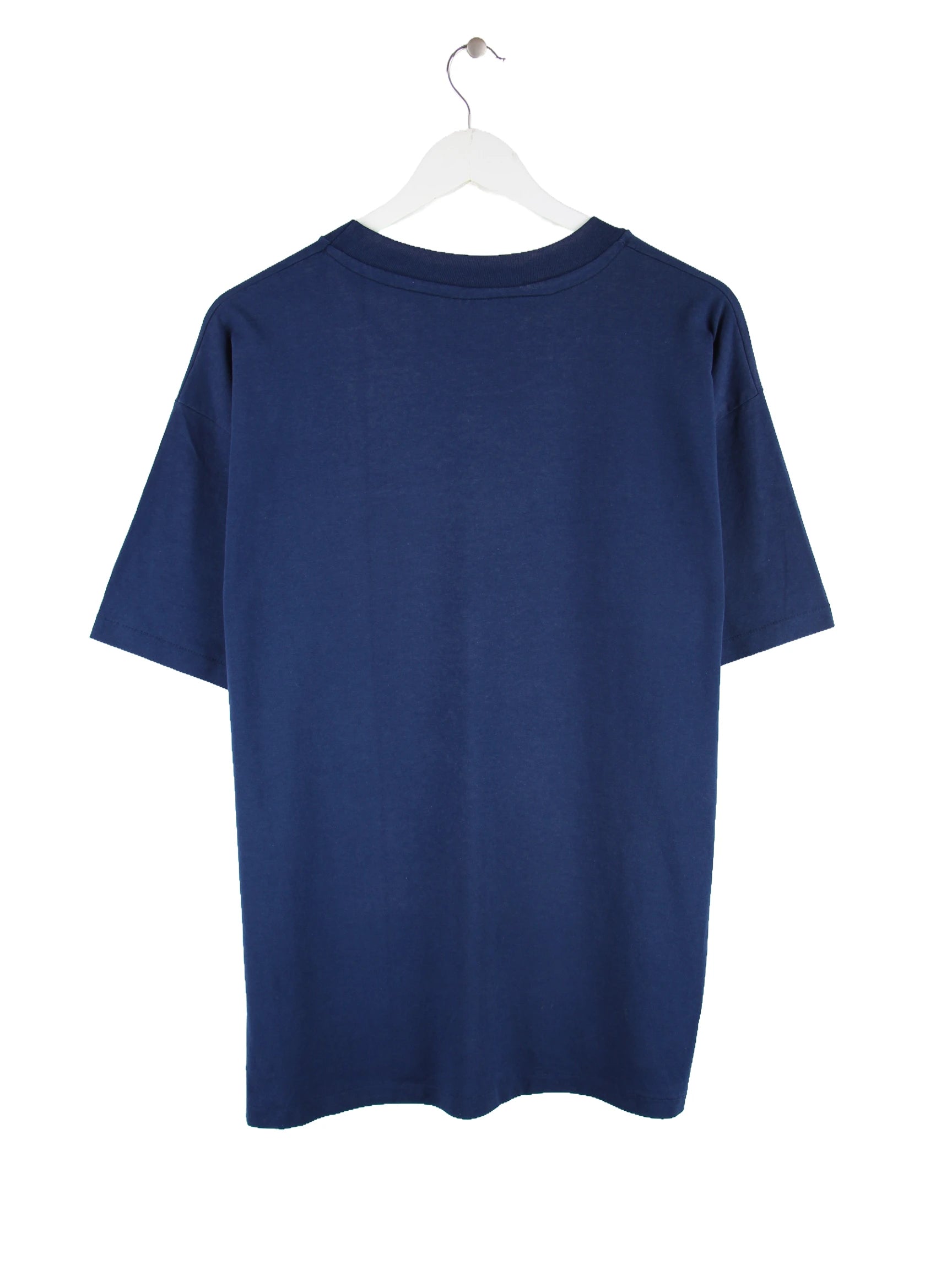 Blaues T-Shirt der Brand Hanes in Größe XL. Es ist aus Baumwolle und in gutem Zustand lieferbar. Mit schönem Department Print.